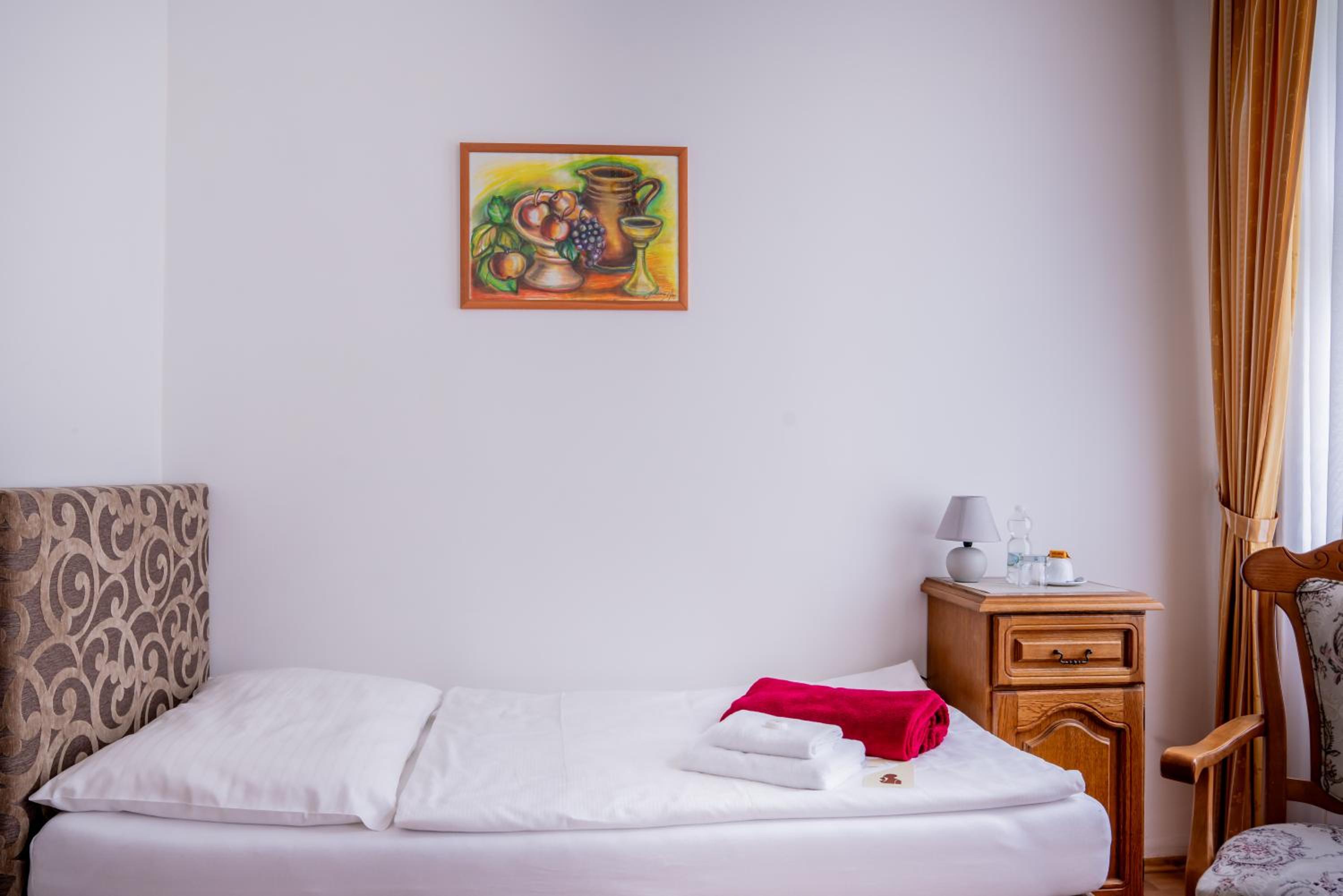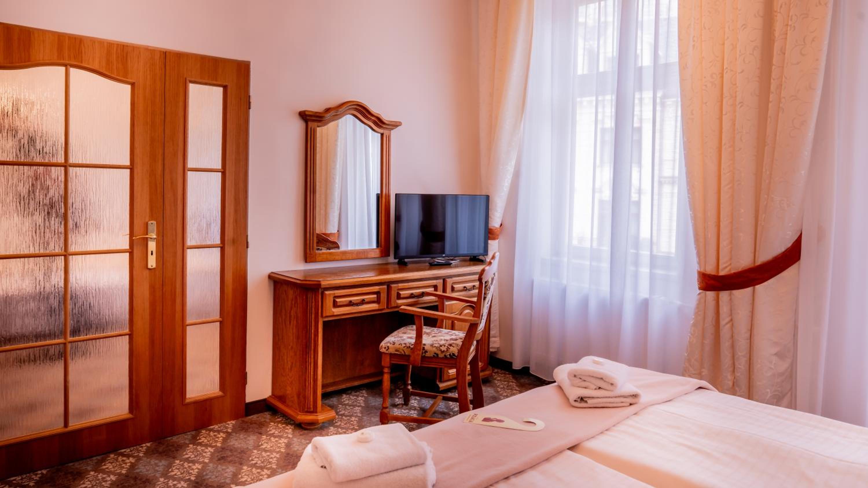Velmi fajn hotelik za výhodnú cenu. 5 minút od kolonady, a s parkoviskom, ktore však doporučujem zarezervovat dopredu. Raňajky zodpovedali cene. Mila pani recepčna.