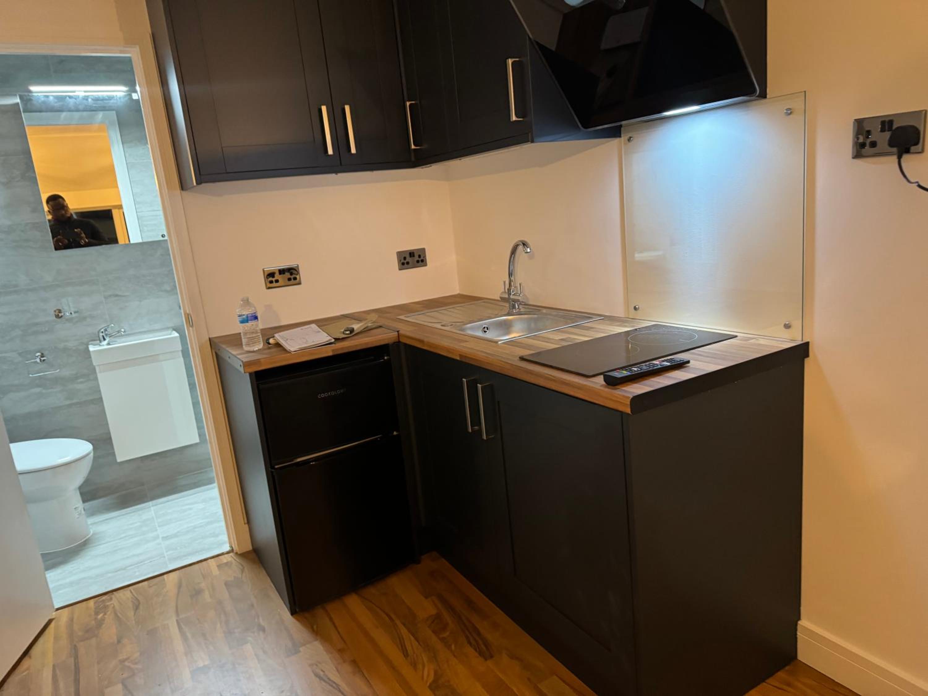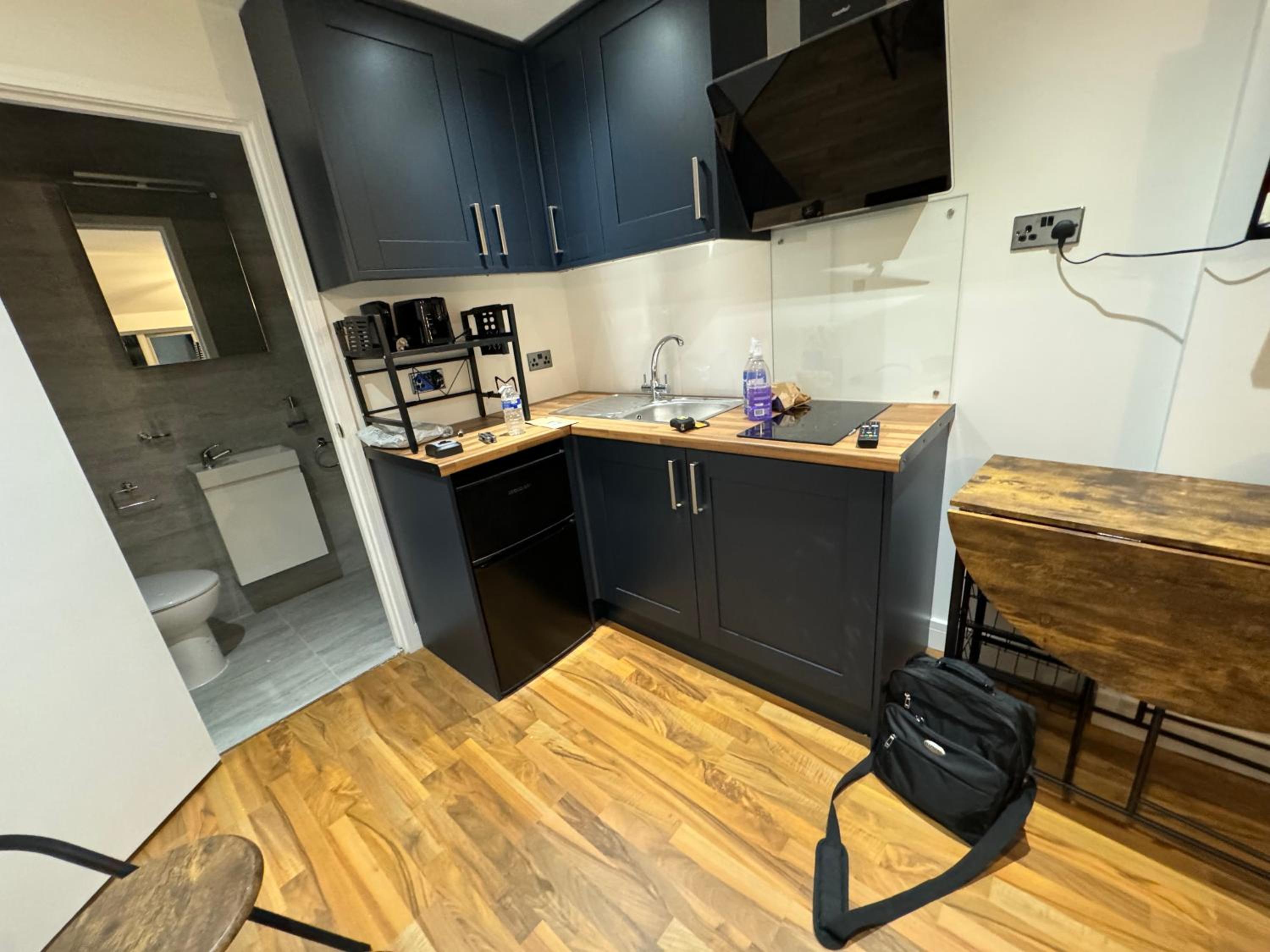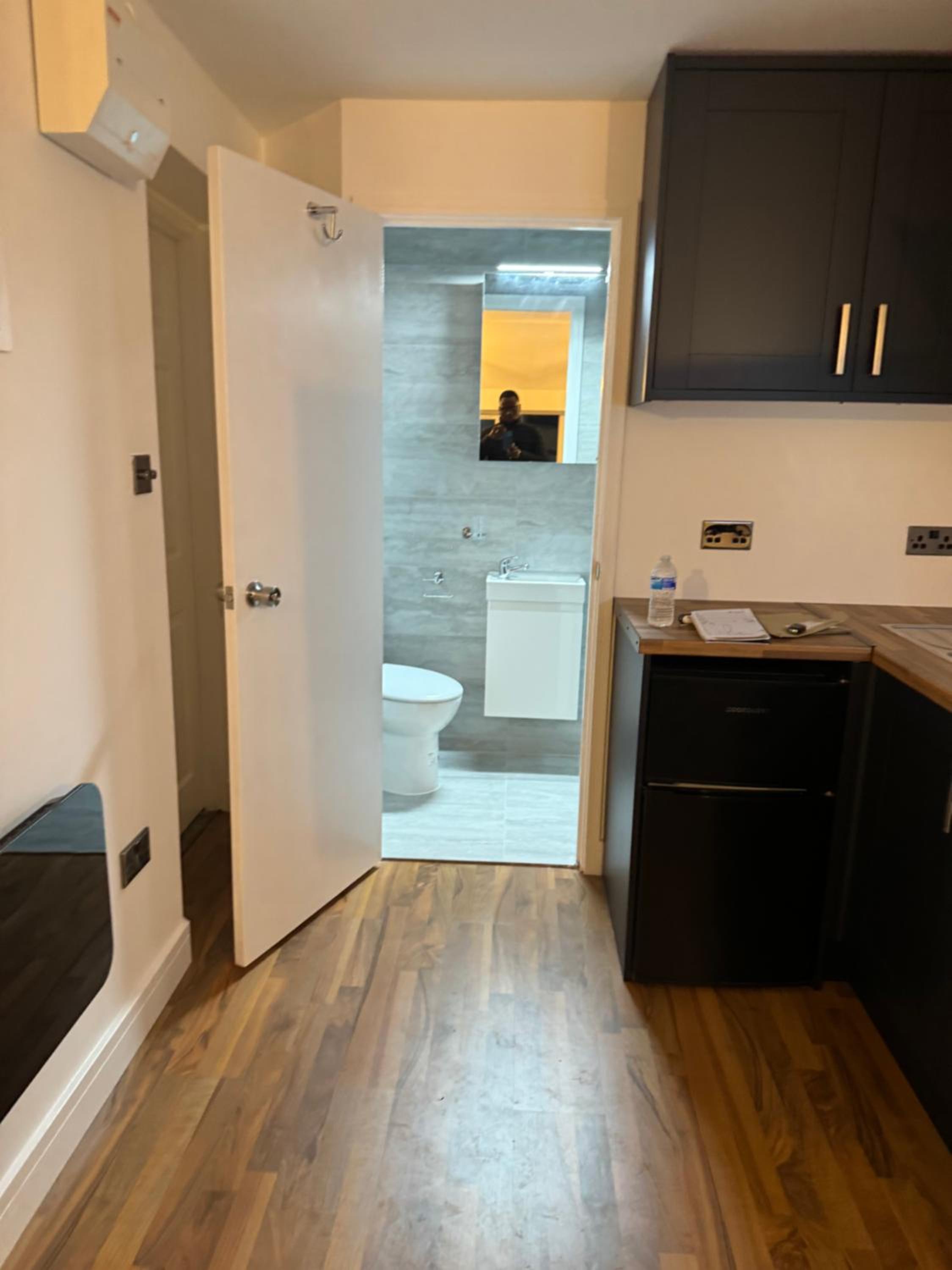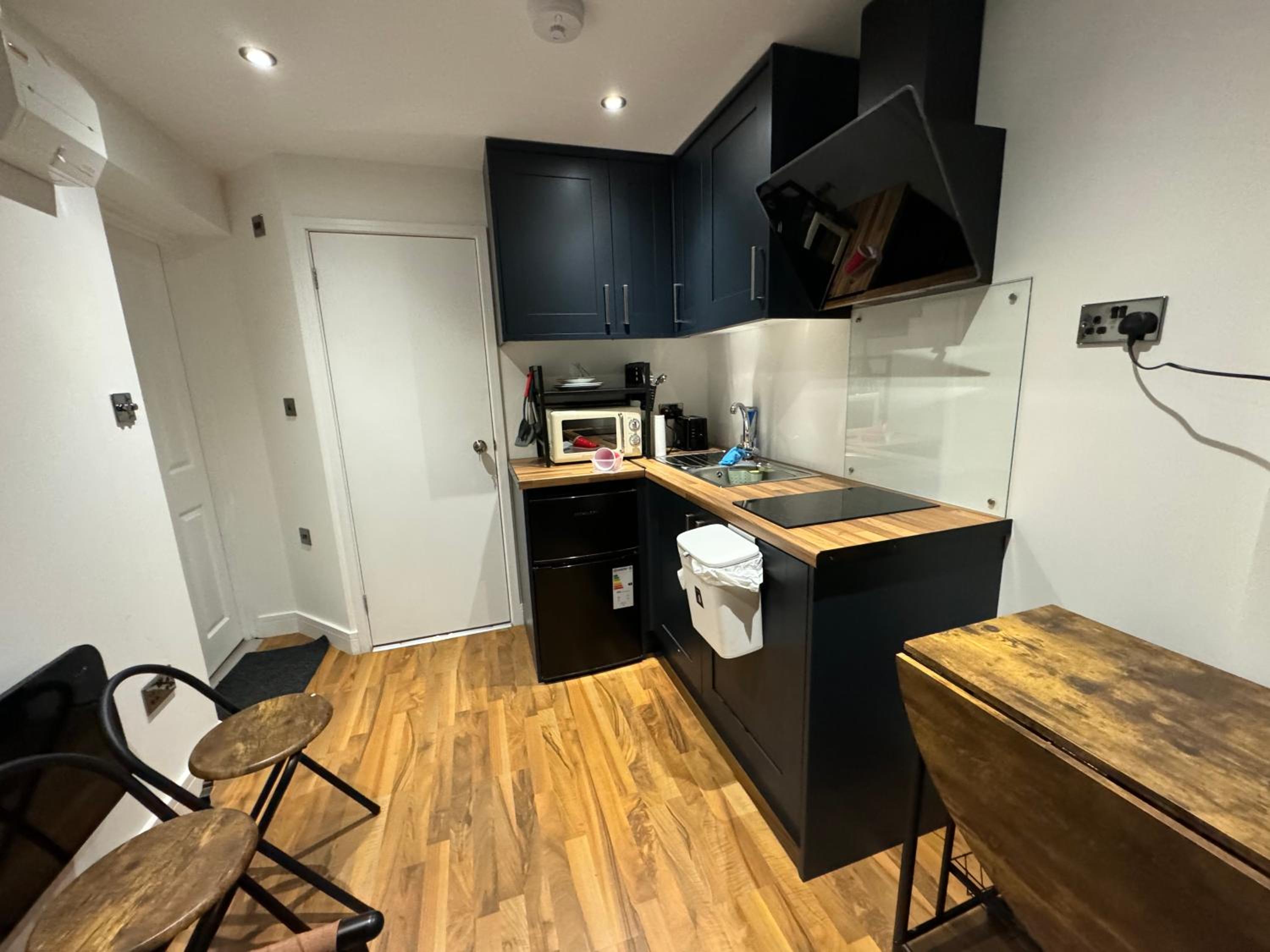 The so called “studio room is an old kitchen turned in to a double room with a toilet just by the door way.