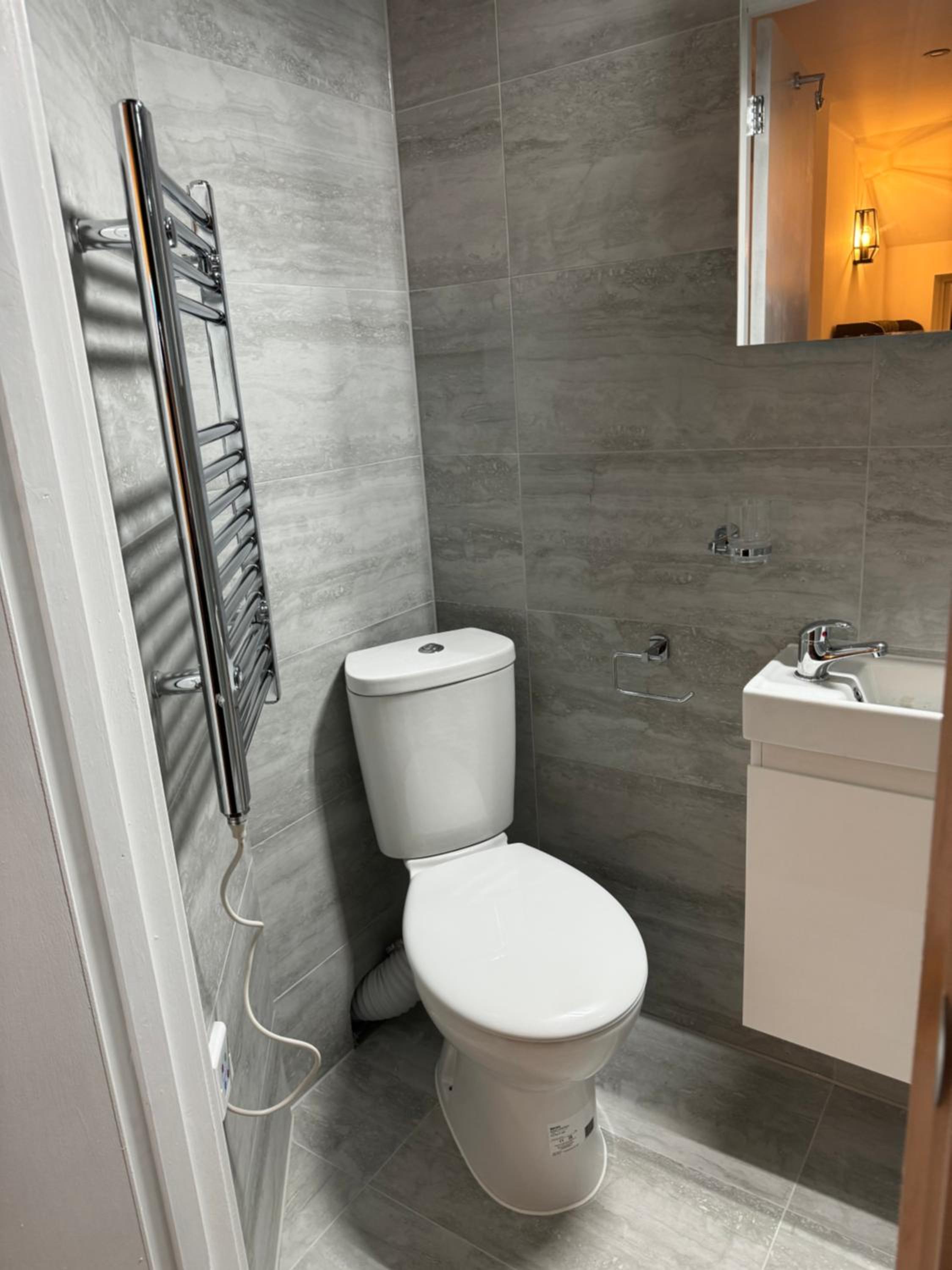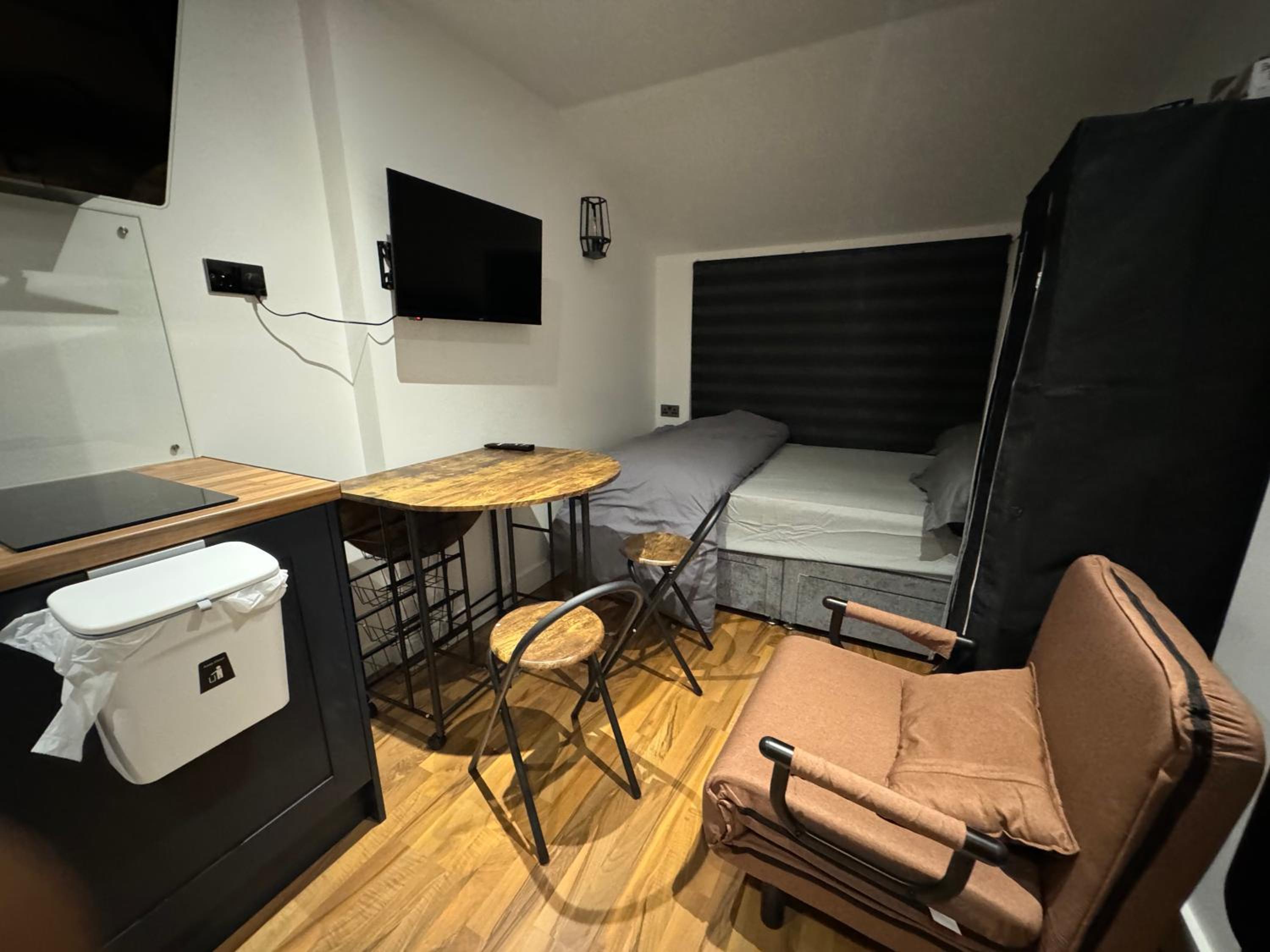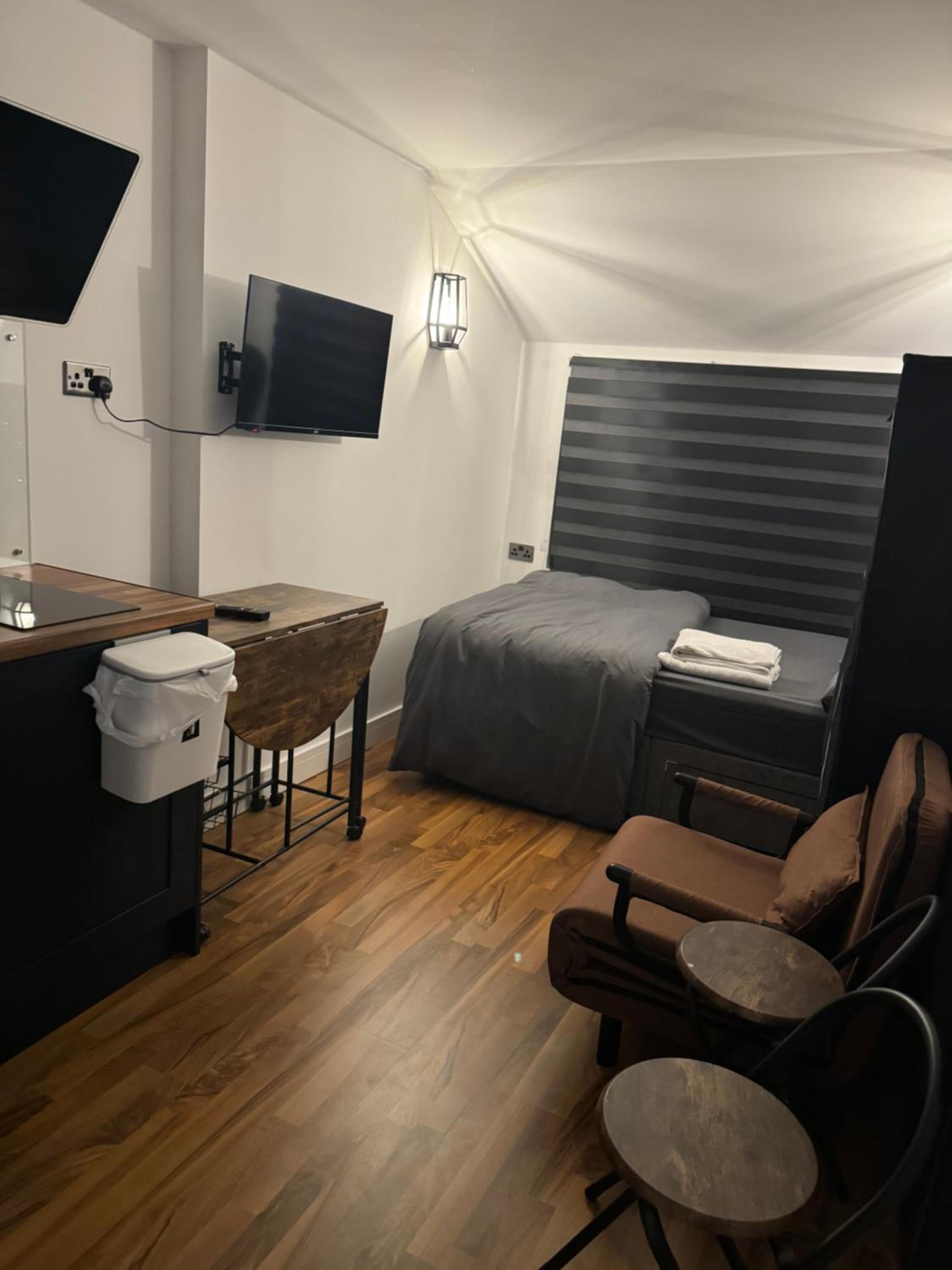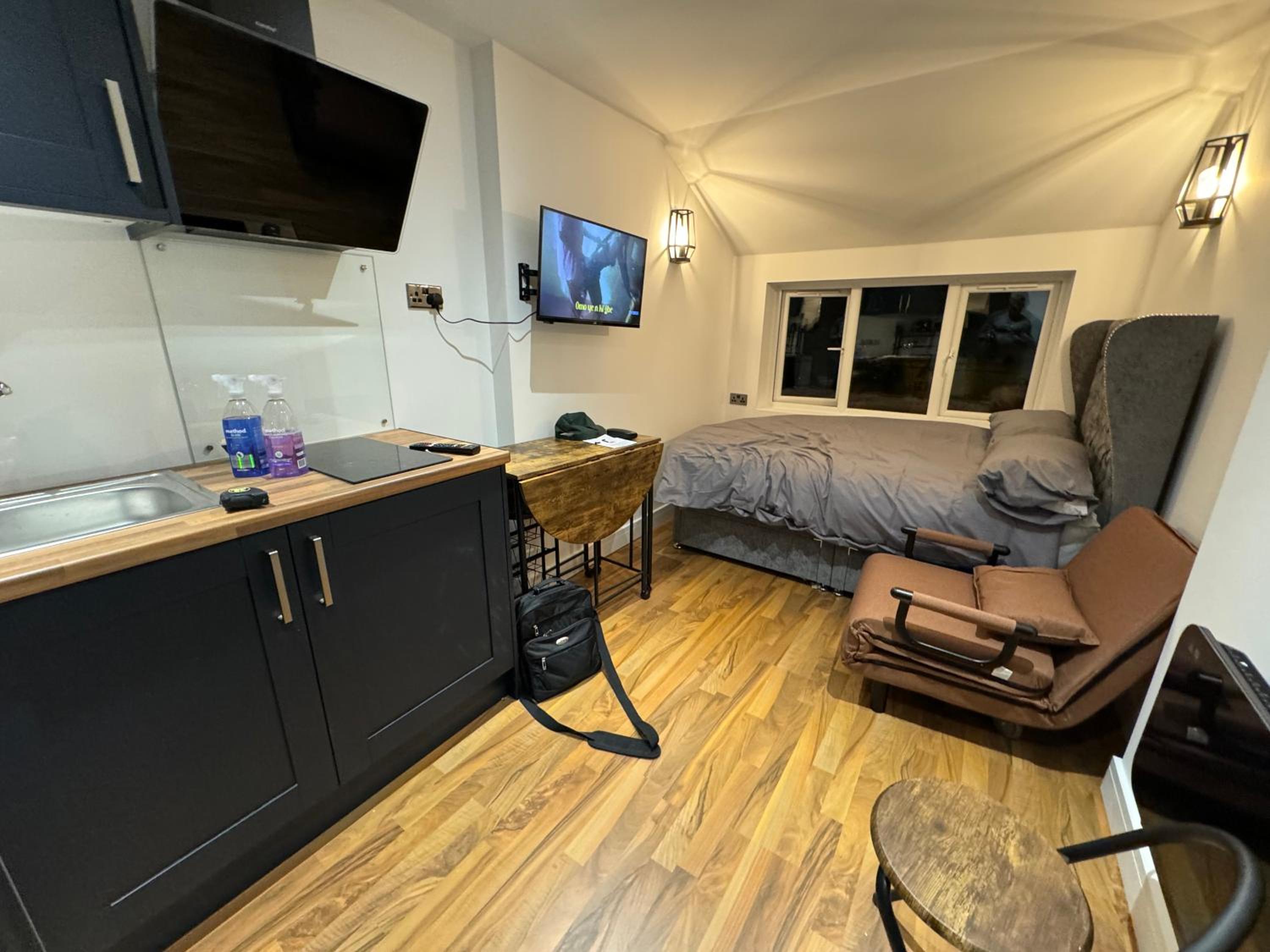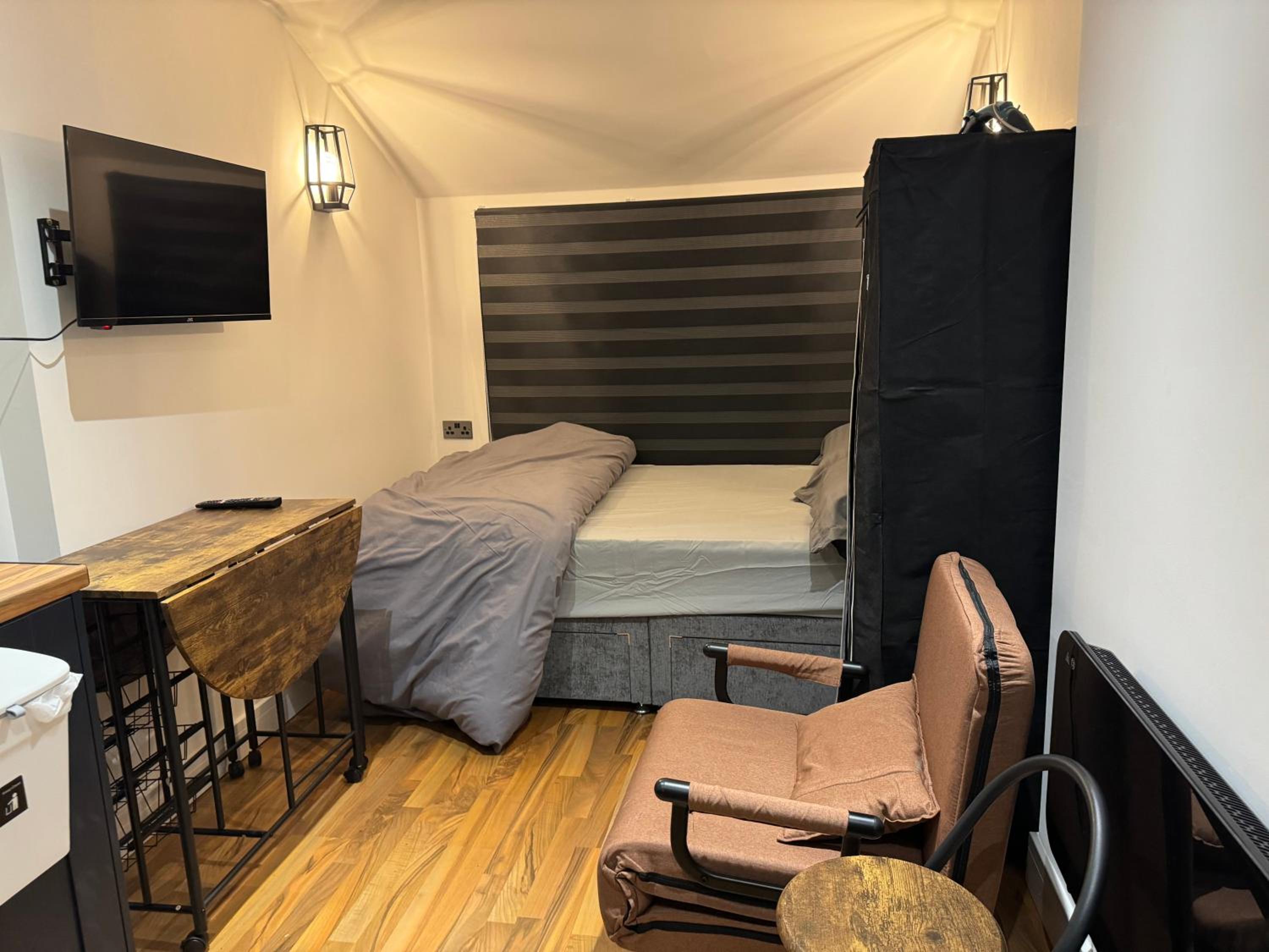 The so called “studio room is an old kitchen turned in to a double room with a toilet just by the door way.