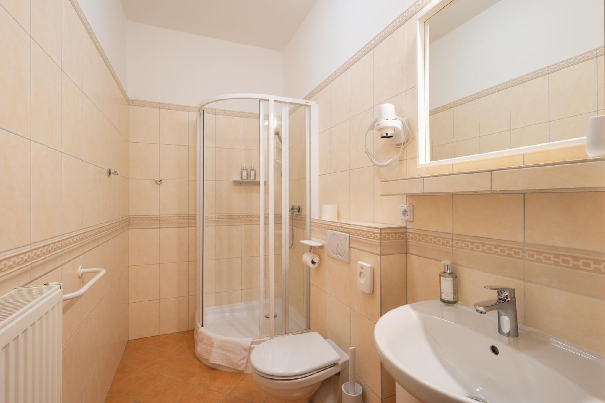 Each room at Hotel Tanzberg Mikulov features a flat-screen TV, free WiFi, and a private bathroom with complimentary toiletries, ensuring a cozy stay for guests.