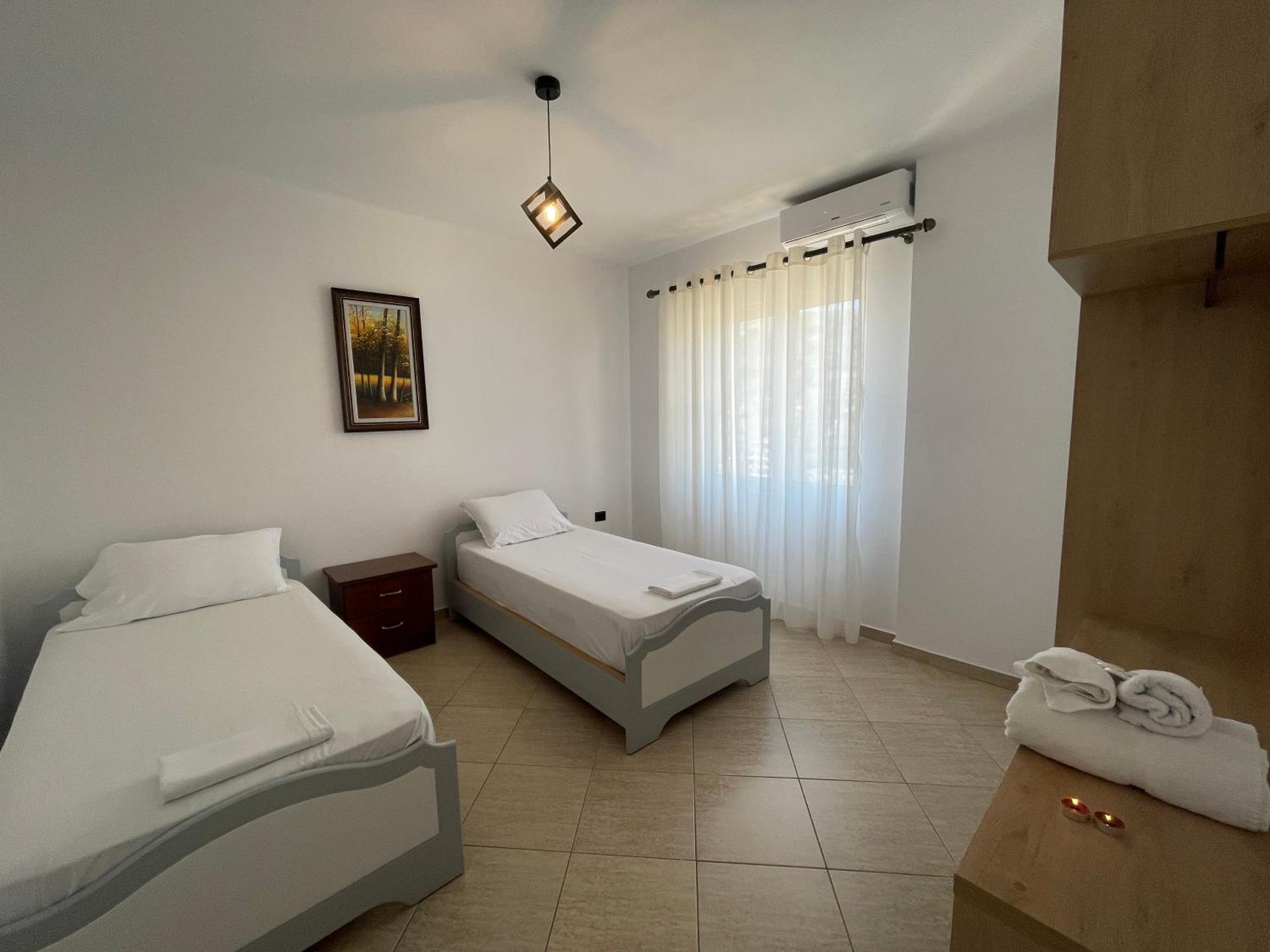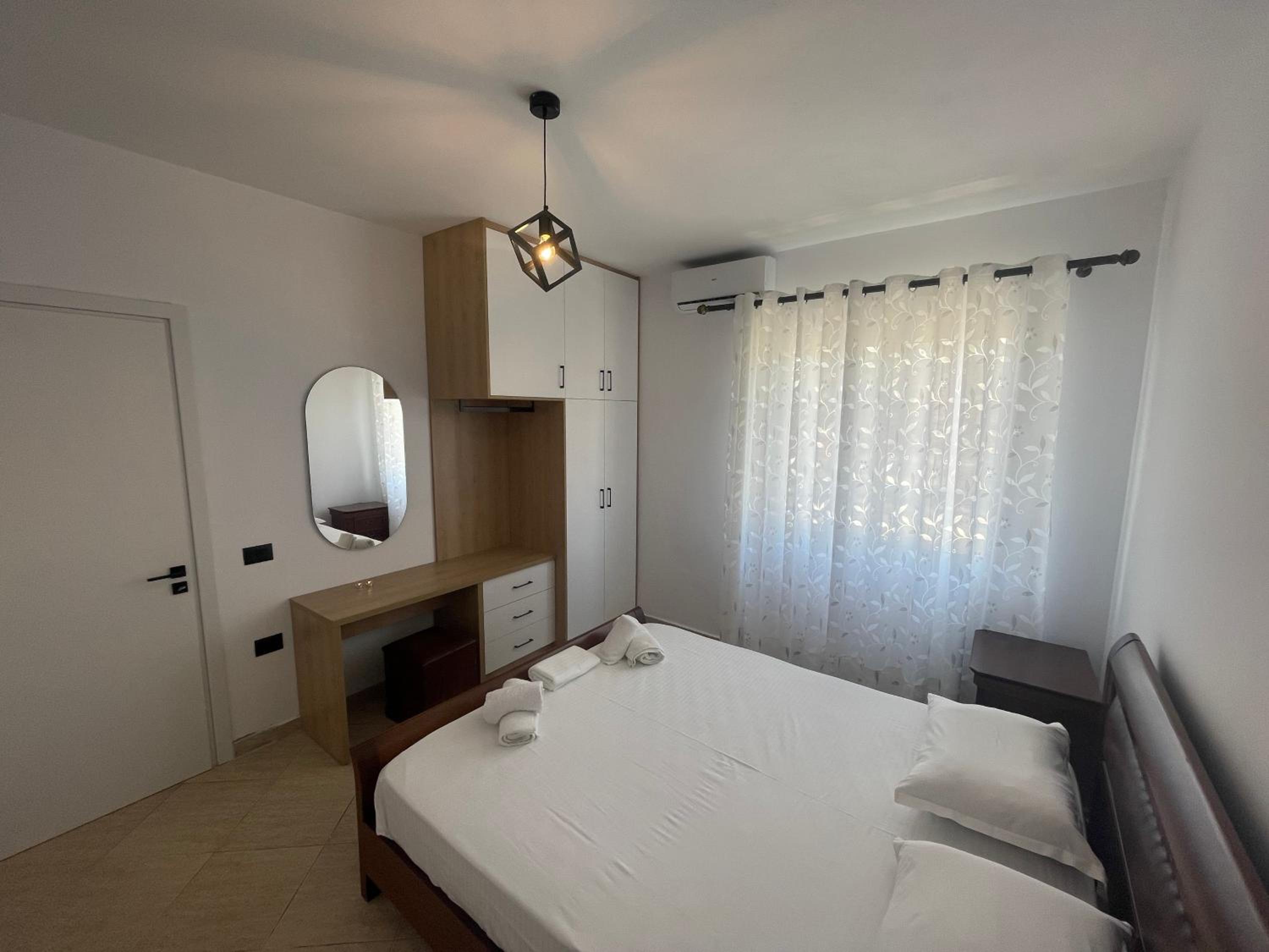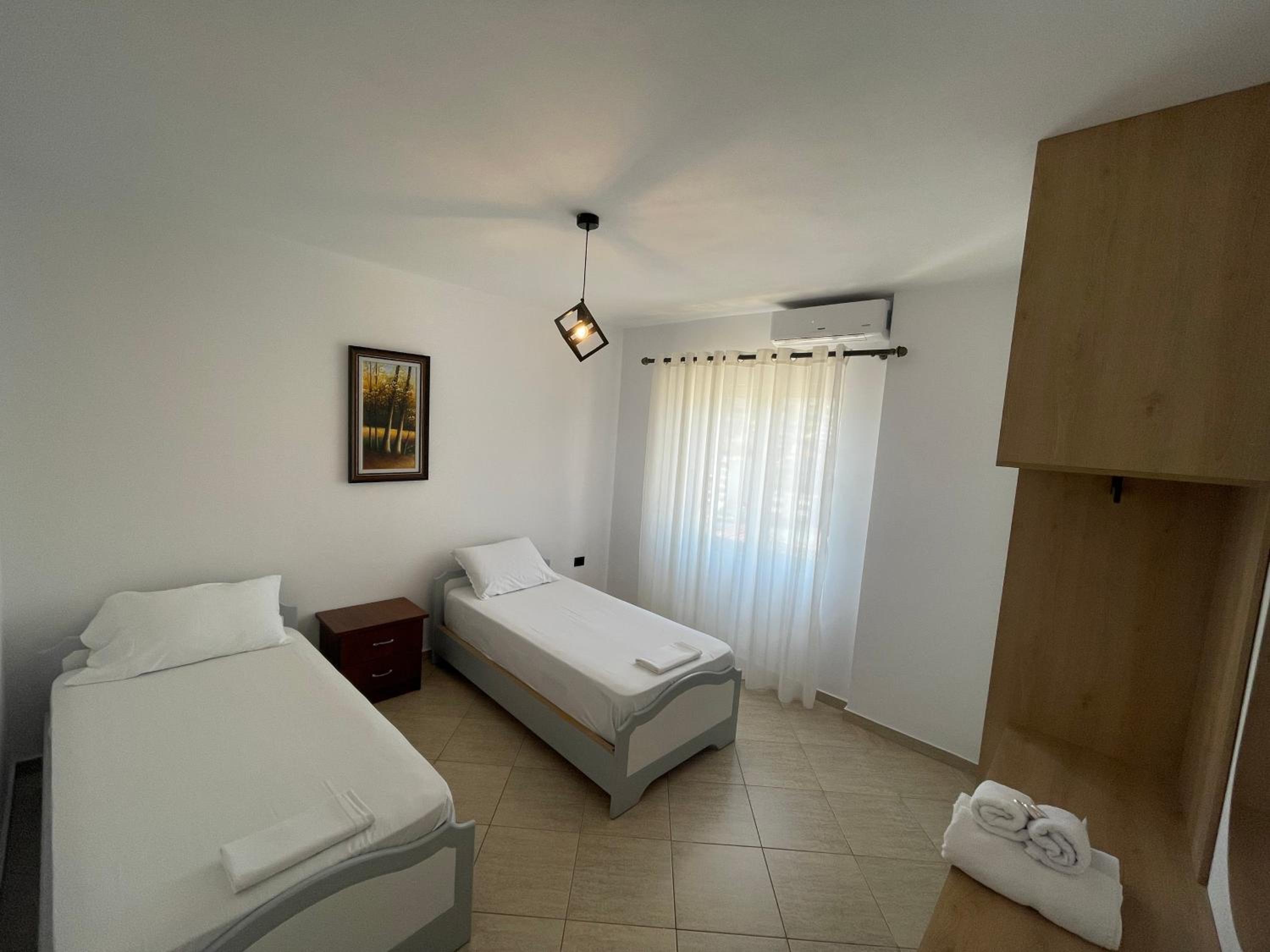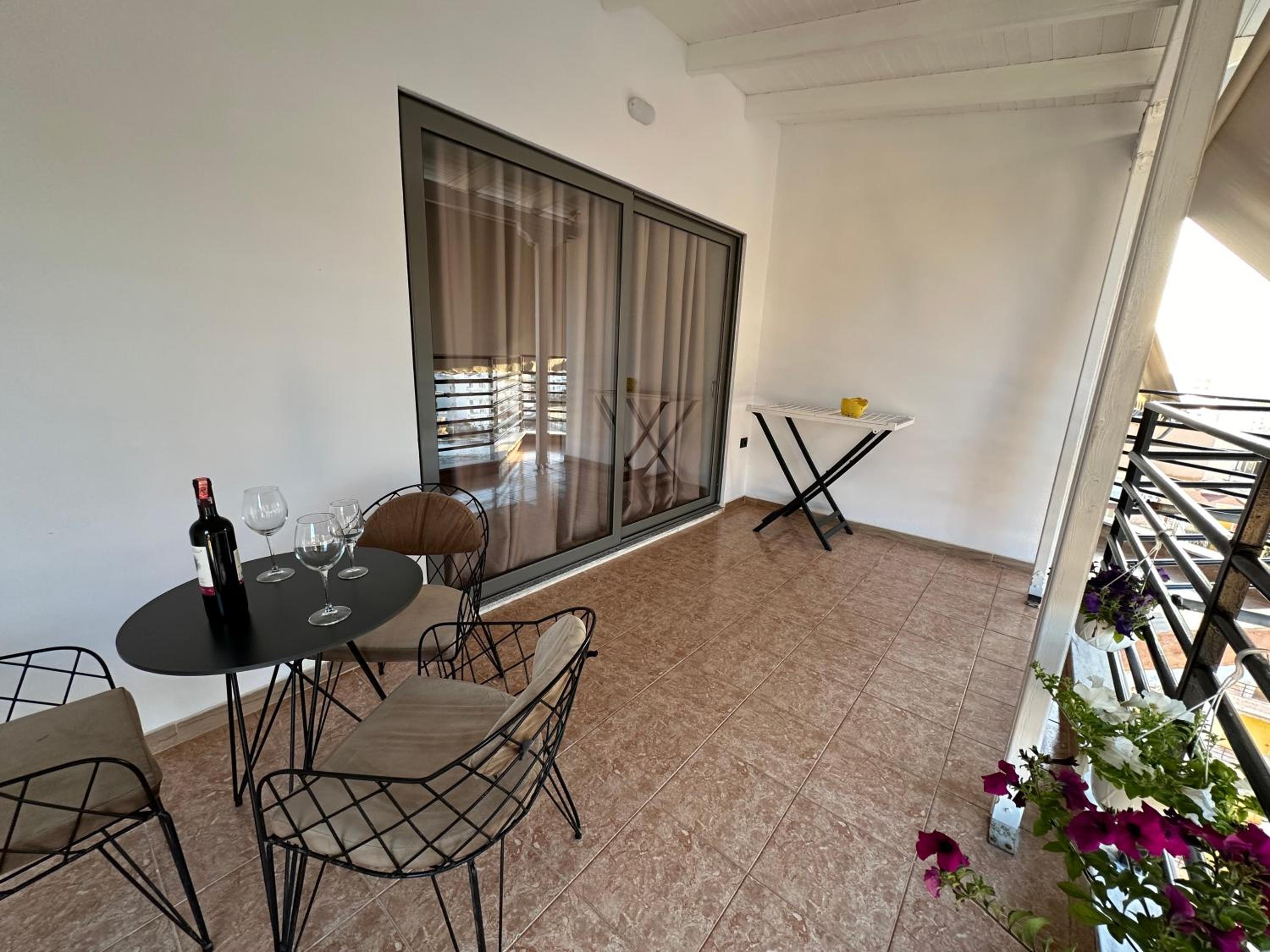 We stayed here for three nights and we had a perfect experience. The owners were very helpful with our requests and questions. Downstairs is the Kozi bistro from the same owners, where we had breakfast all three mornings because it was close by, very nice and not expensive. Because we took a late night bus back to Tirana we were able to leave our luggage at the bistro after checkout. We didn’t have towels, but we could borrow some for the last day so we could go to the beach and then brought them back when picking up the luggage. The appartement is 10-15 minutes walking from the center of sarande which was nice to get away from the crazy busy port at night.