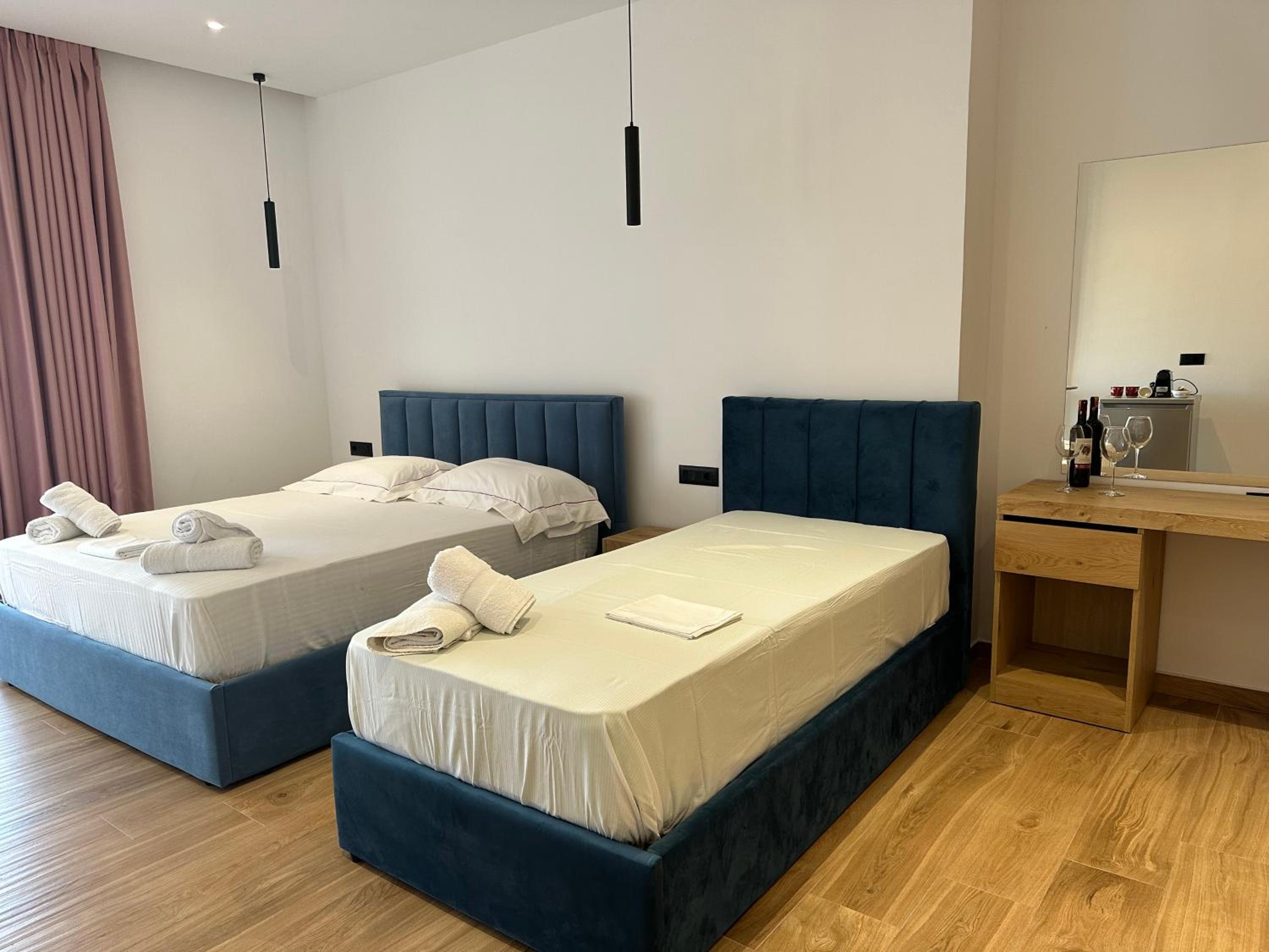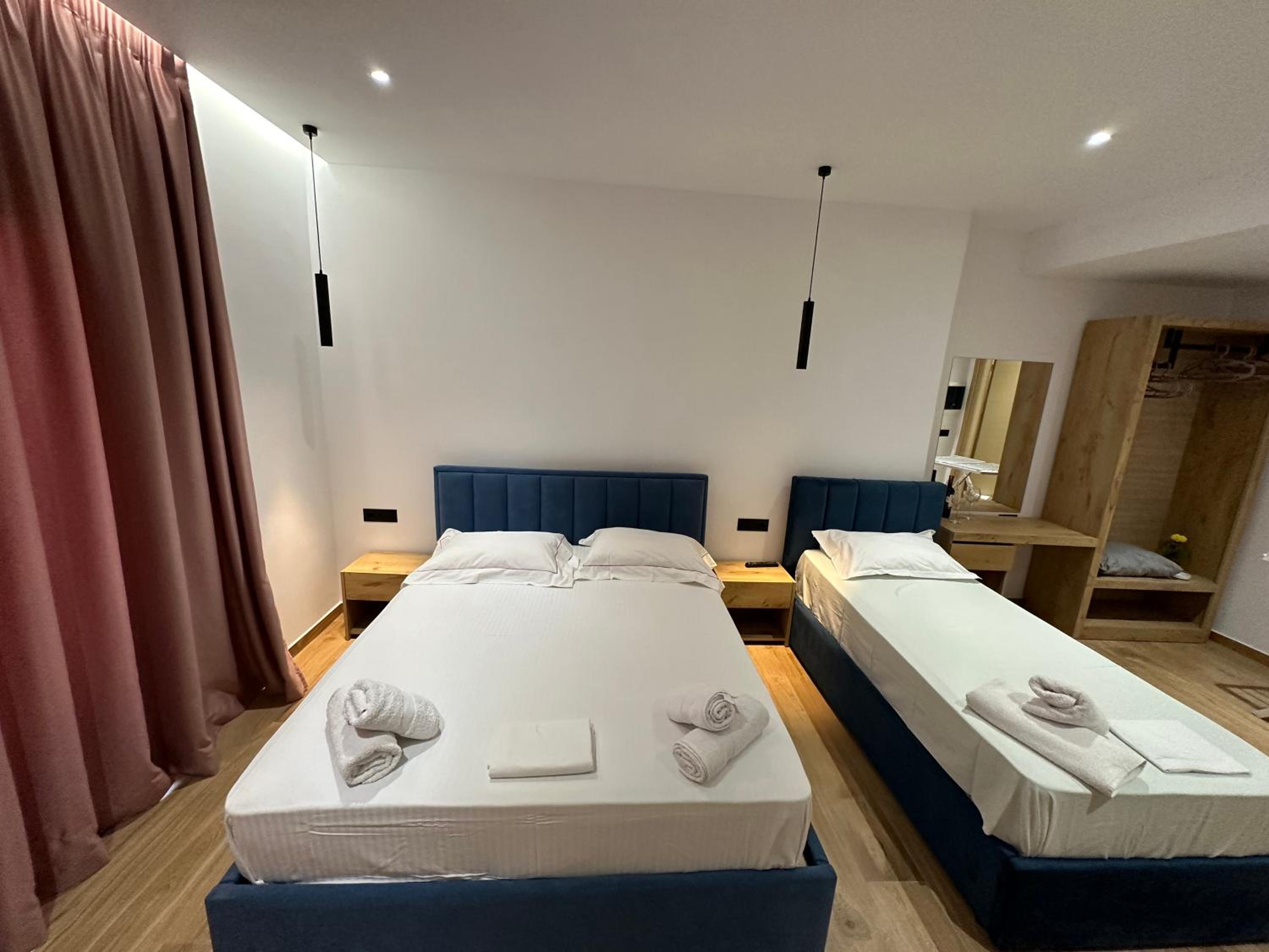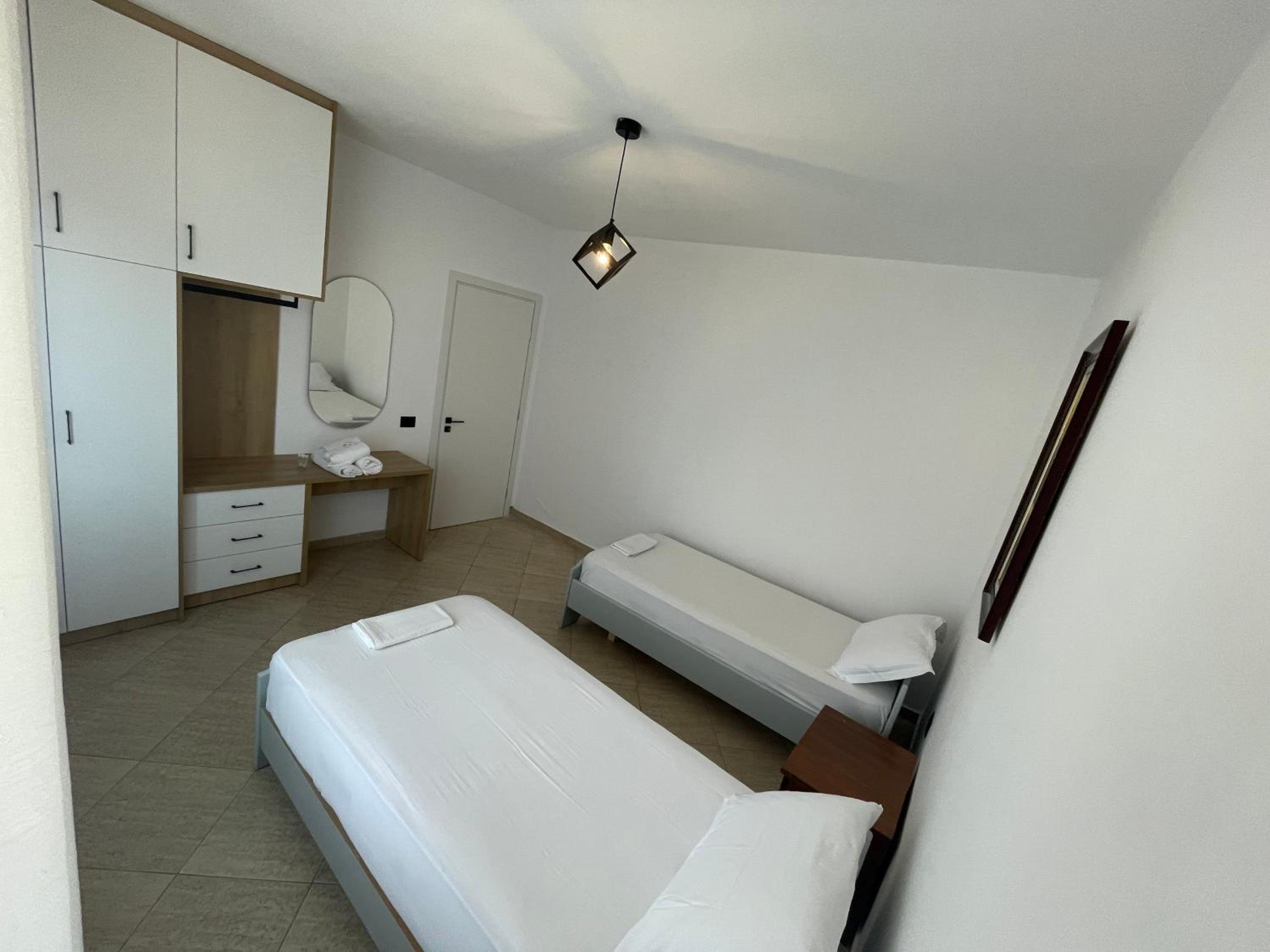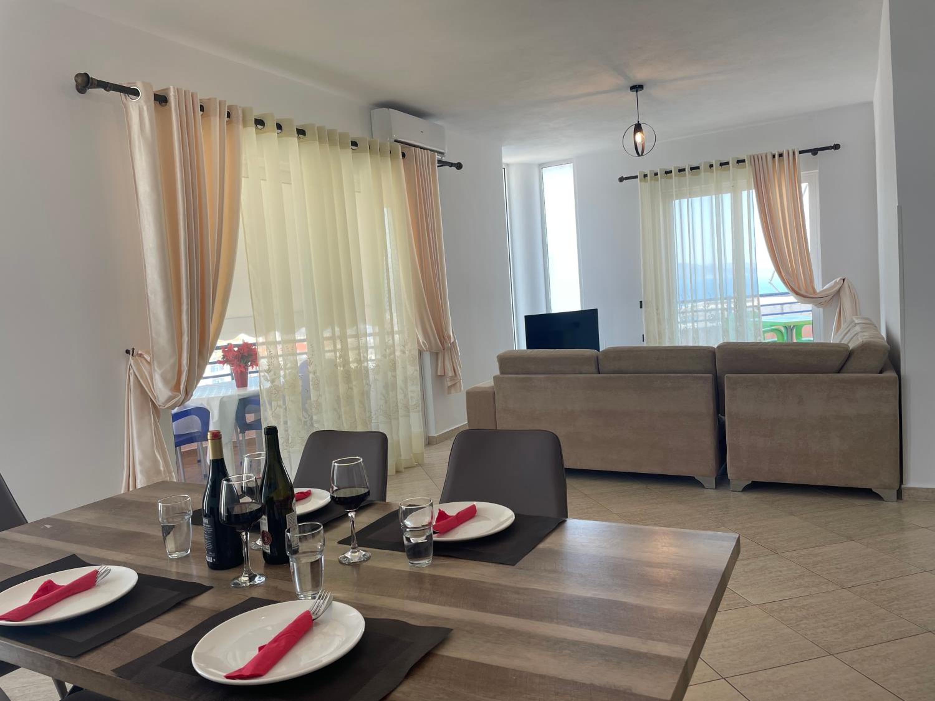 We stayed here for three nights and we had a perfect experience. The owners were very helpful with our requests and questions. Downstairs is the Kozi bistro from the same owners, where we had breakfast all three mornings because it was close by, very nice and not expensive. Because we took a late night bus back to Tirana we were able to leave our luggage at the bistro after checkout. We didn’t have towels, but we could borrow some for the last day so we could go to the beach and then brought them back when picking up the luggage. The appartement is 10-15 minutes walking from the center of sarande which was nice to get away from the crazy busy port at night.
