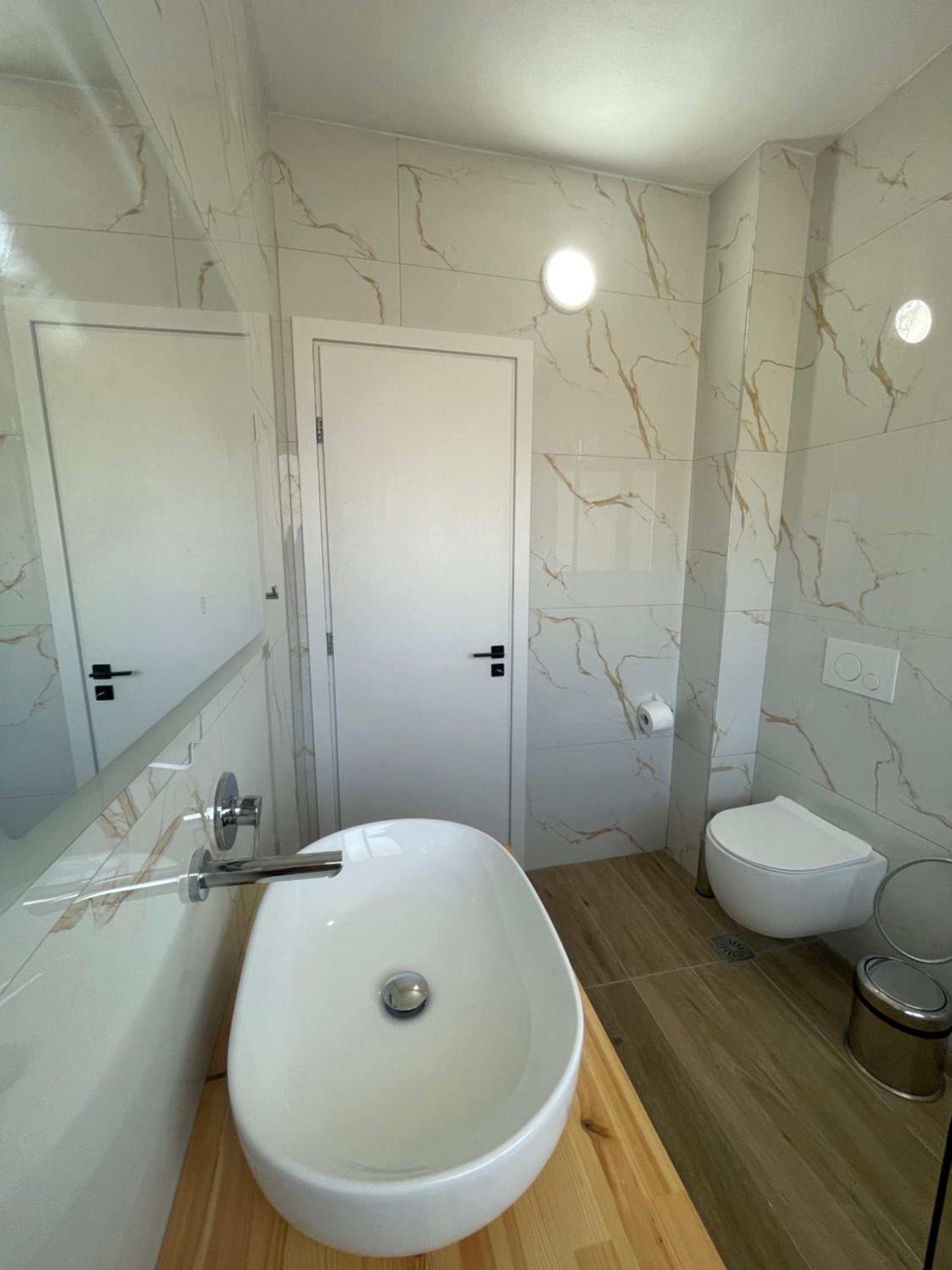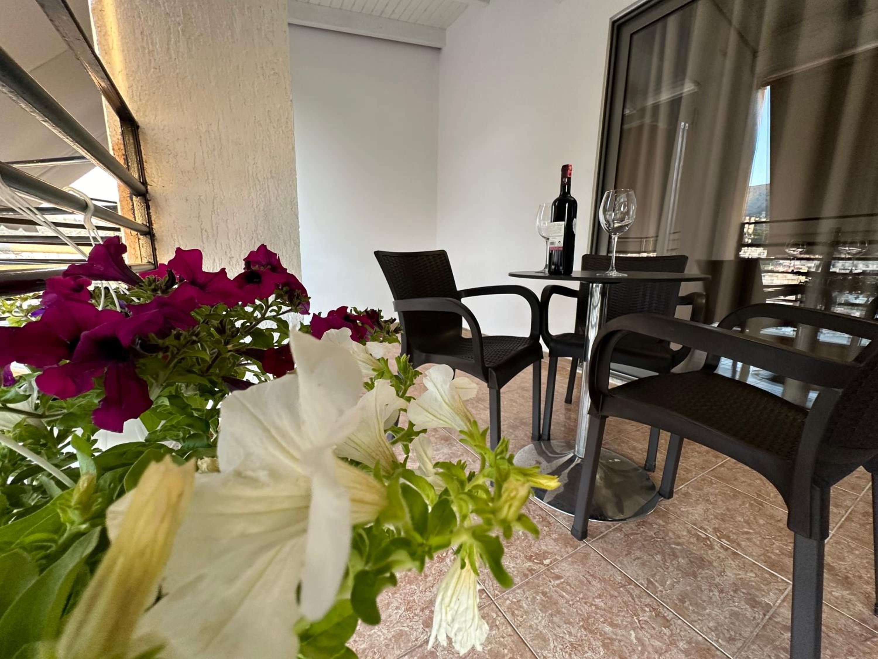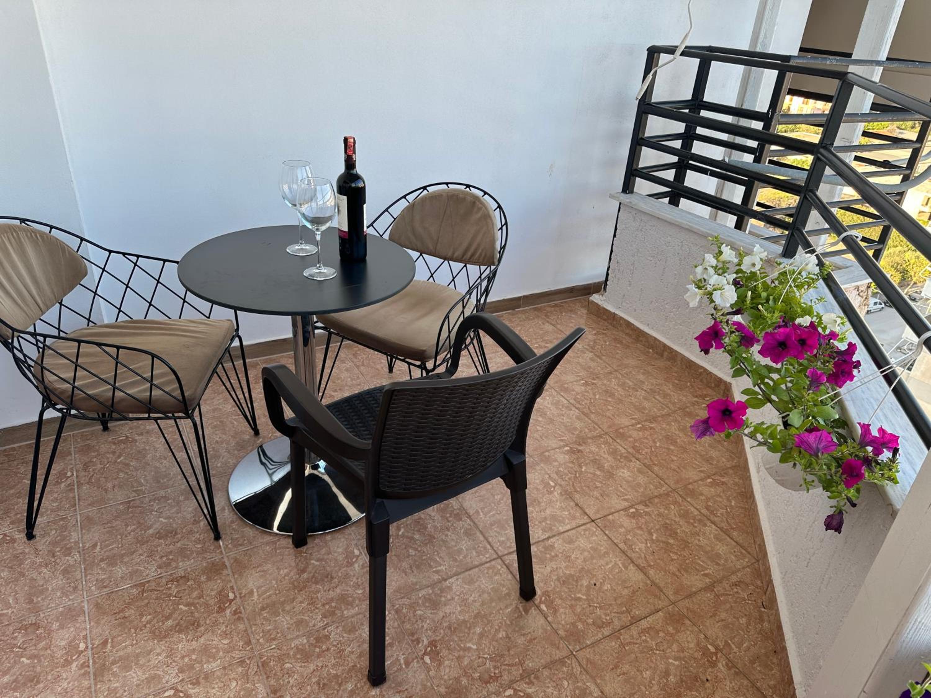 The apartment was very spacious and full of natural light. The beds were comfortable, and each room had air conditioning, which made our stay even more pleasant. There was also a washing machine, and the kitchen was fully equipped with everything we needed. The apartment has three balconies: one next to the bathroom with a beautiful view of the sunset, and the other two with a sea view. We enjoyed the stunning views with our friends every evening.