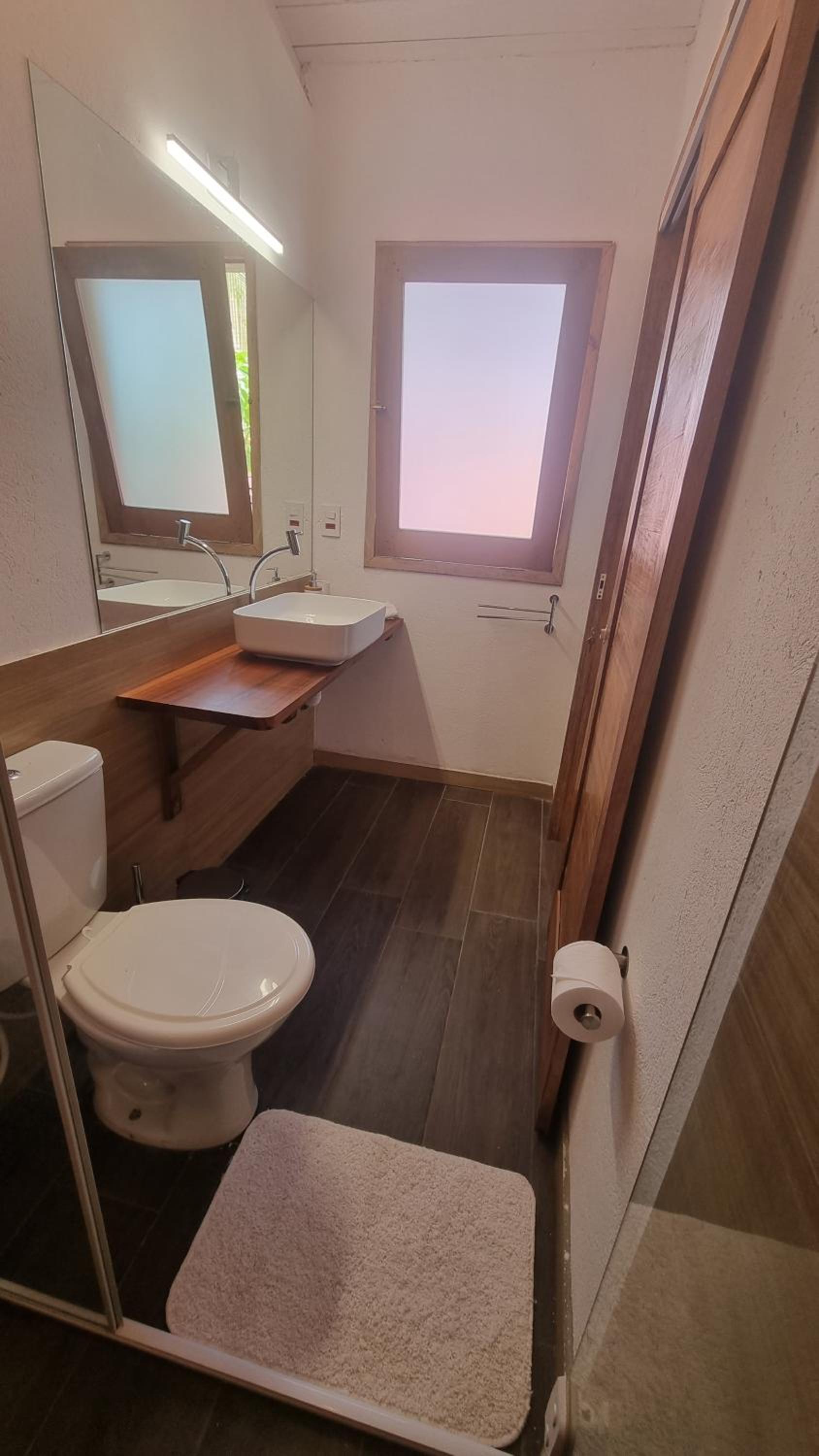 O funcionário é atencioso e prestativo, e também prepara o café da manhã, que é bem saboroso. A localização é excelente, a poucos metros da praia e de ótimos restaurantes. O quarto é arejado, conta com ar-condicionado e ventilador, e o chuveiro quente funciona perfeitamente. O banheiro é bem decorado e há garagem disponível, embora com vaga para apenas um carro para todos os hóspedes.