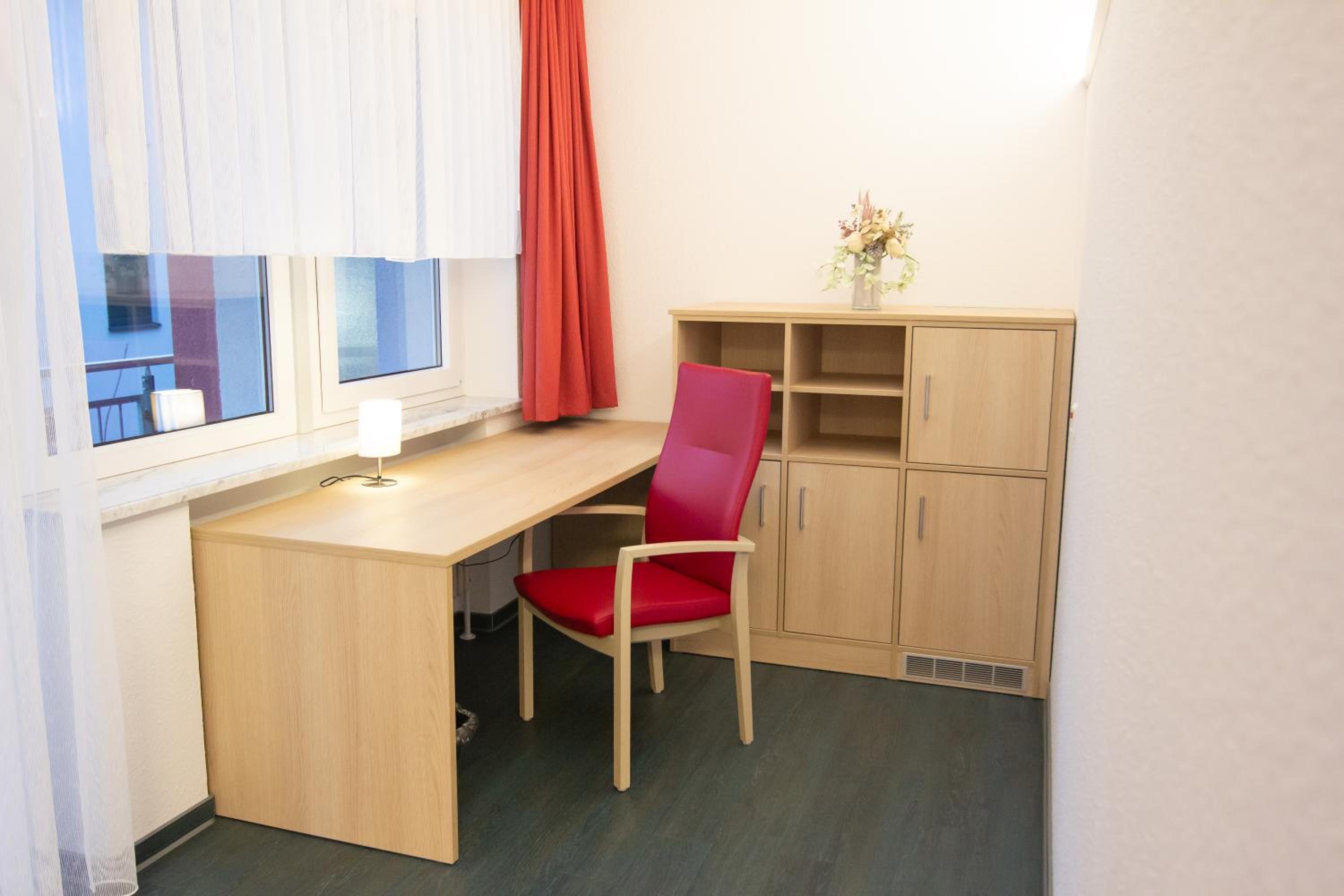 In dem Gebäude sind mehrere Arztpraxen. Um zu unserem Zimmer zu kommen, mussten wir durch den Wartebereich einer Arztpraxis. Am Wochenende kein Problem, aber unter der Woche wäre es schon merkwürdig.