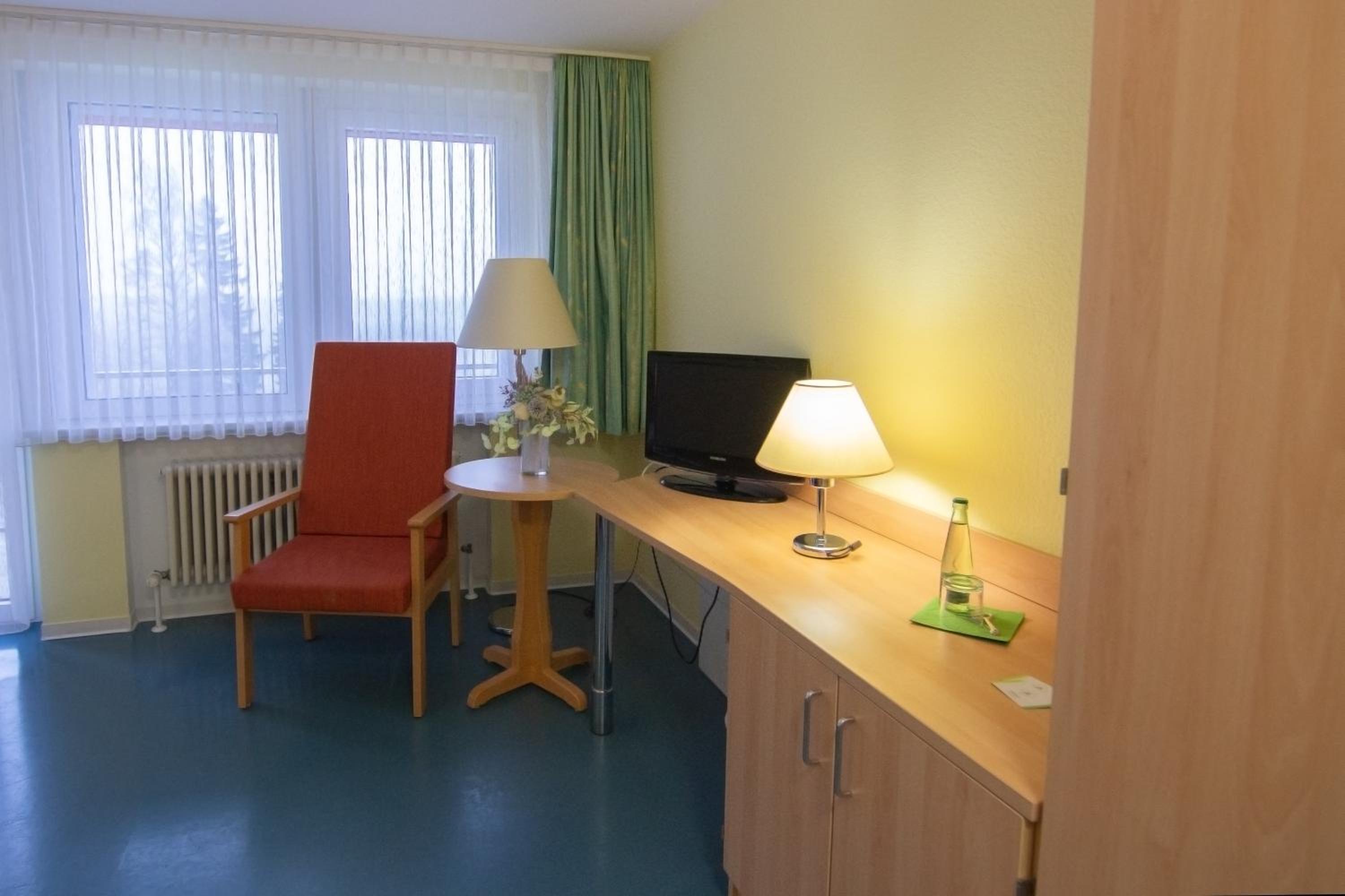 Frühstück überschaubar, ehemals BG Klinik, alles riesig u weitläufig. Kein Rasierspiegel u. Fön im Bad.