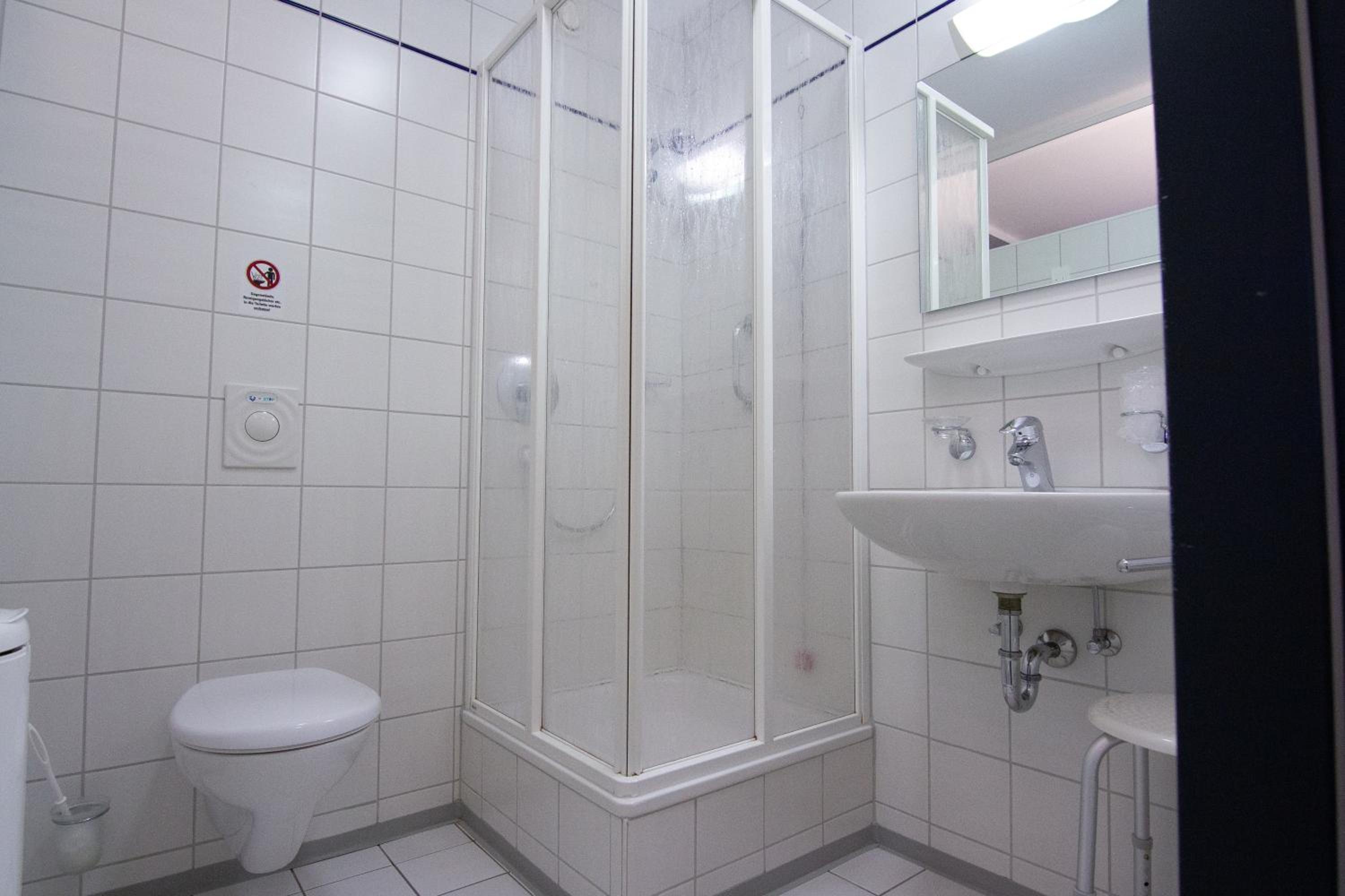 Hellhörige Zimmer ( man ist wach sobald auf Flur jemand ist) Kein Föhn auf Zimmer. Ablage in Dusche fehlt