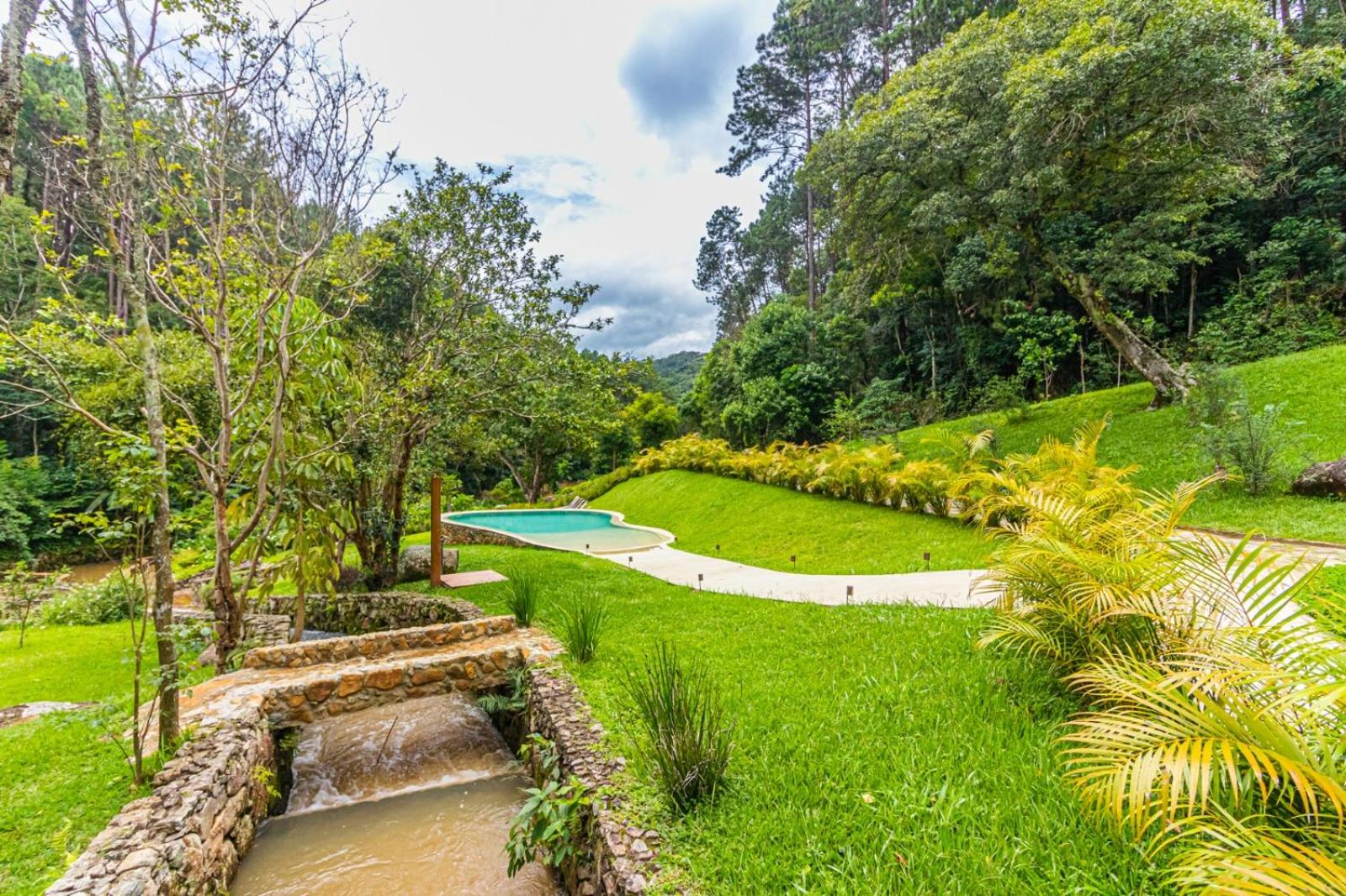 Chalés, comida, natureza, paisagismo, etc