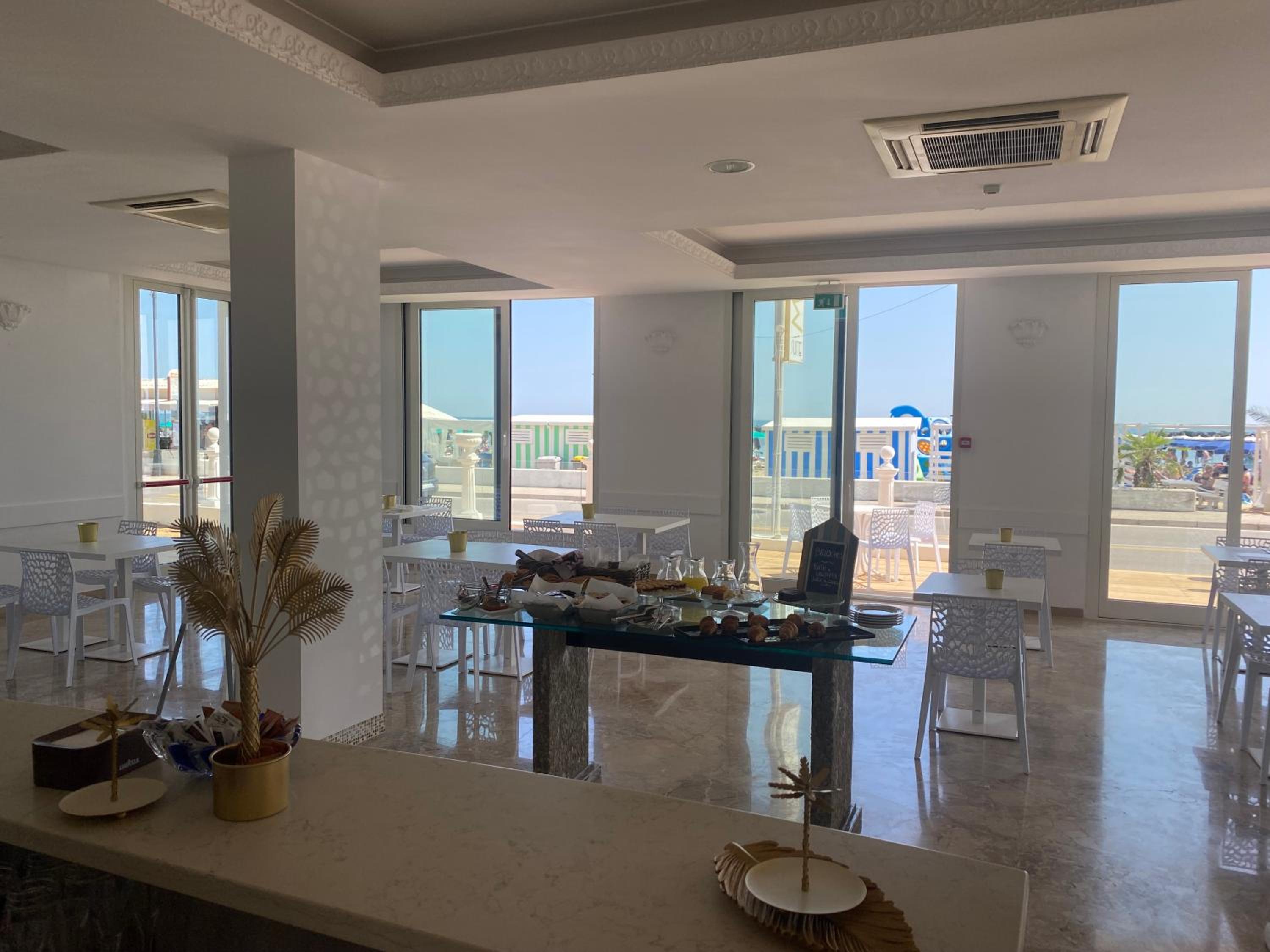 Hotel fronte mare con parcheggio privato (a pagamento). Colazione ottima e abbondante, sia dolce che salato, uova e bacon fatte sul momento, prodotti di qualità. Ottima la pulizia. Letto matrimoniale comodo. Macchina per caffè con kit cialde e kit cucina omaggio. Cambio giornaliero degli asciugamani.