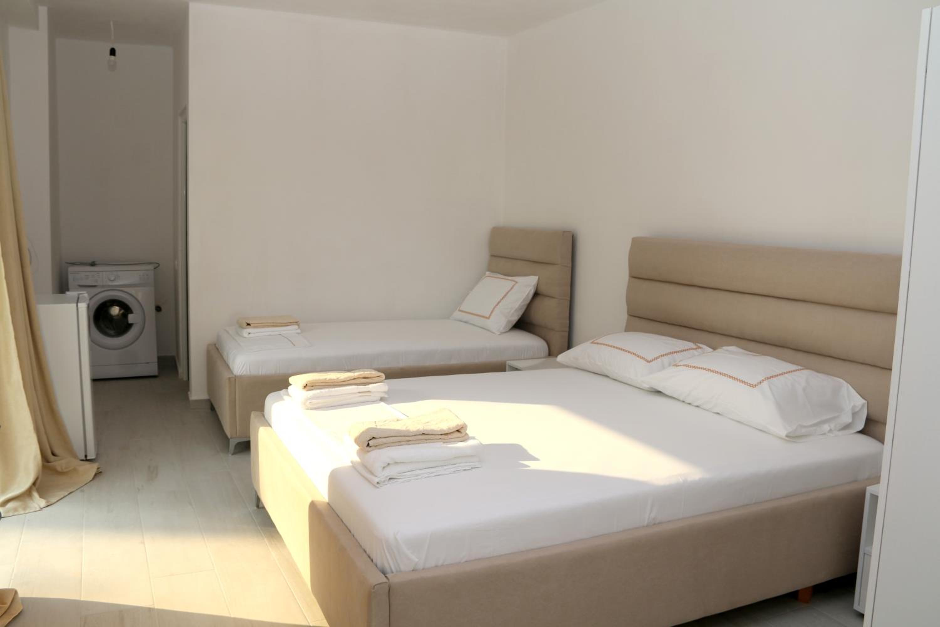 Locația excelentă, la 5 min de mers pe jos de faleză, plajă, centrul de distractii, restaurante, terase, baruri. La 10 min de feriboturile care pleaca in Corfu. Camera e situată într-o vilă cu mai multe apartamente, e mare, curata, cu tot ce e nevoie, inclusiv balcon.