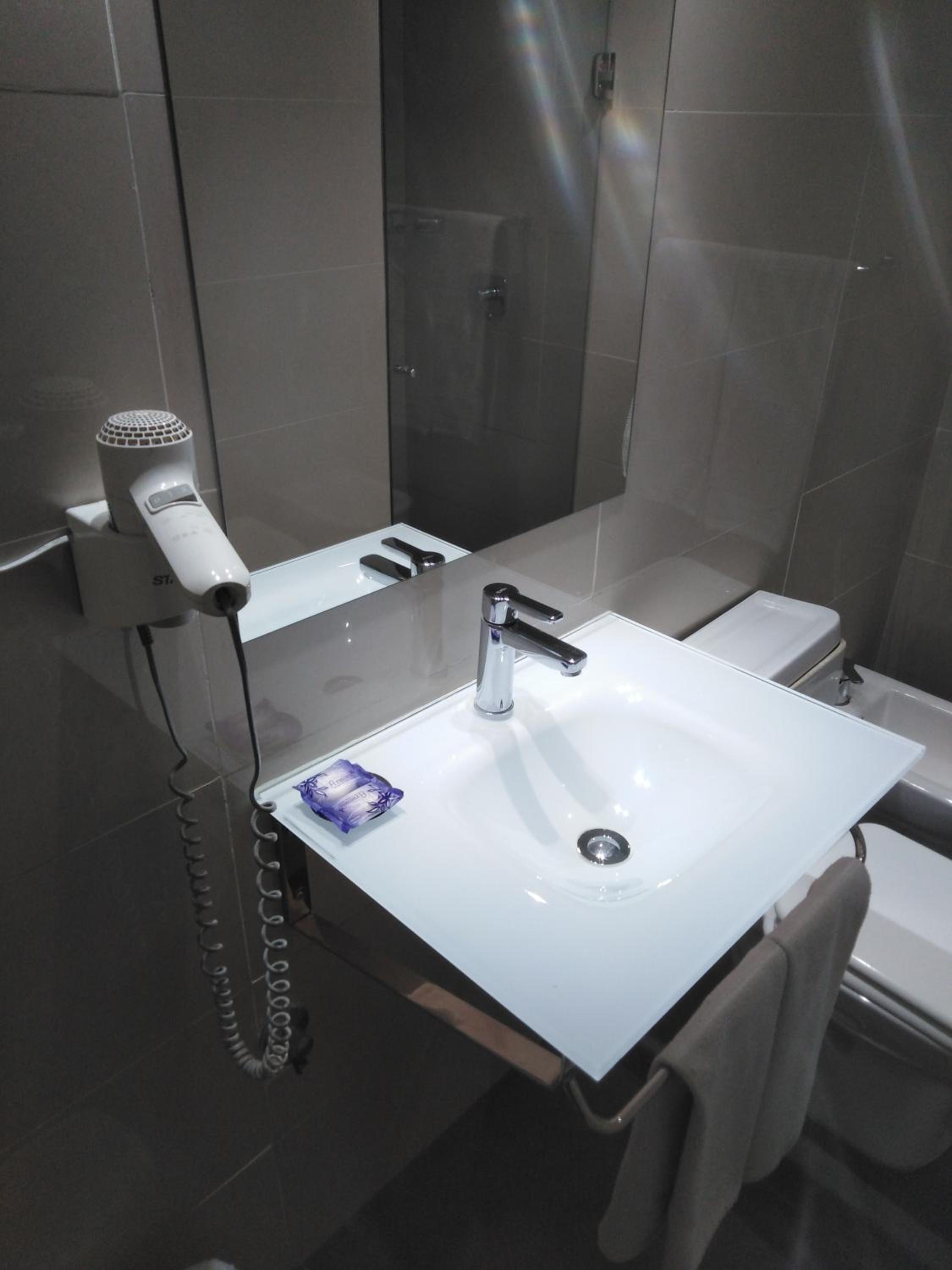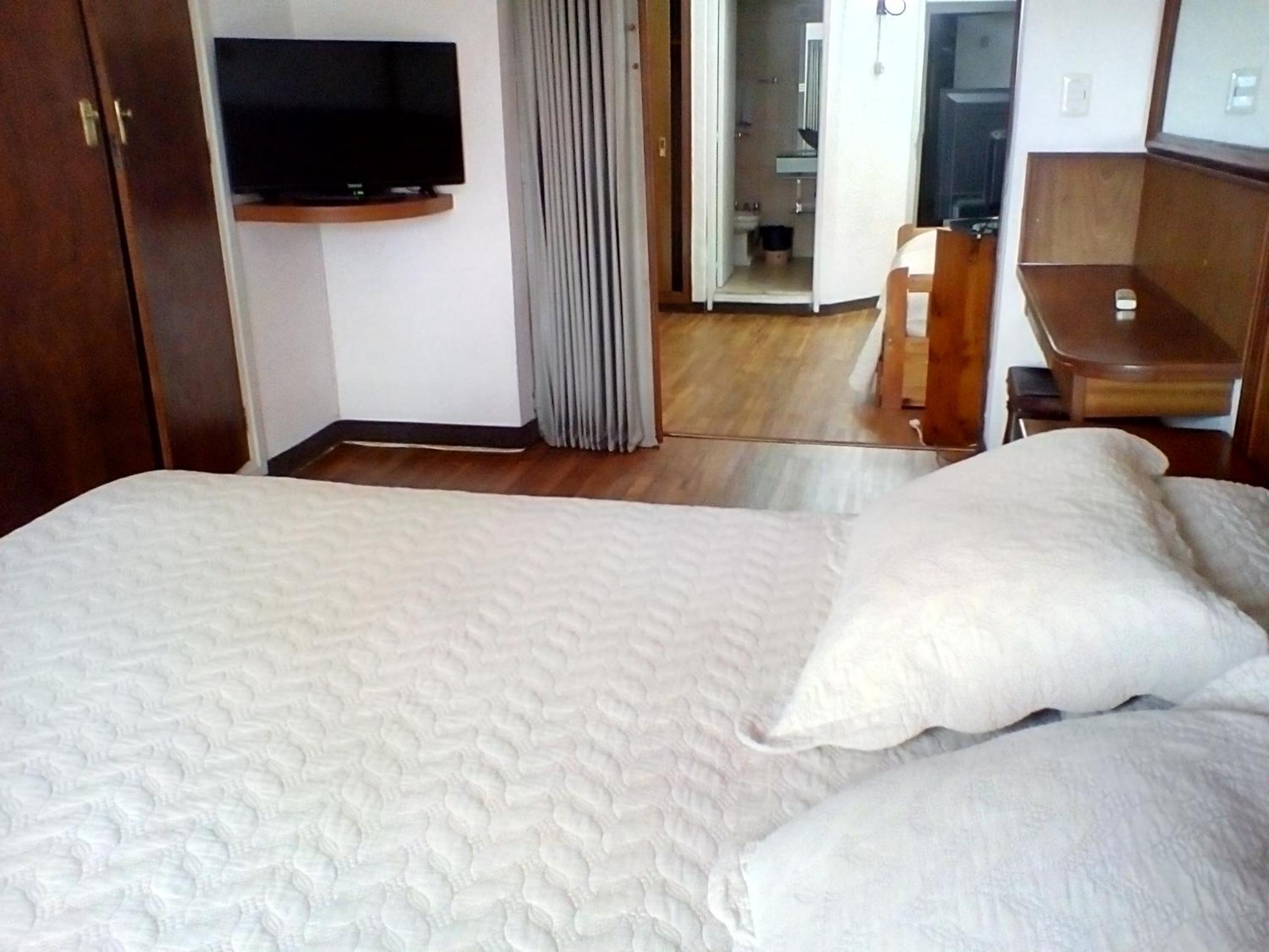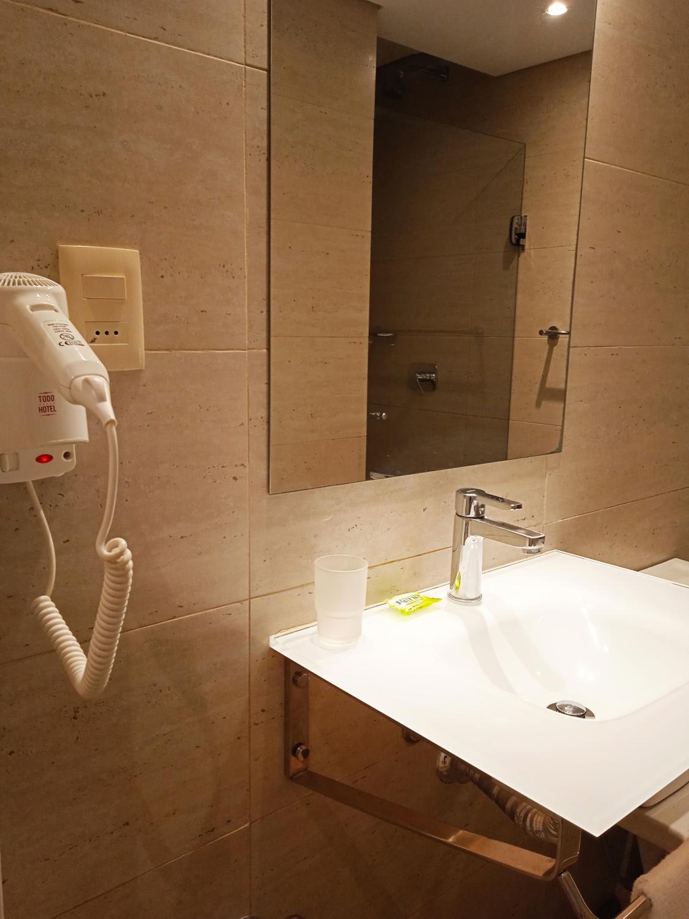 La habitación no estaba limpia, tenía un frigobar oxidado, no tenía toallas de mano, la cortina del baño se descolgó, no había vasos en la habitación, no pudimos conseguir agua para beber, no tenía disponibilidad de shampoo ni fueron repuestos los jabones en el baño, las lámparas de las mesas de luz solamente una estaba conectada, la otra no tenía posibilidad de ser conectada, no había perchas en el placard, cuando pedimos nos dieron dos perchas.