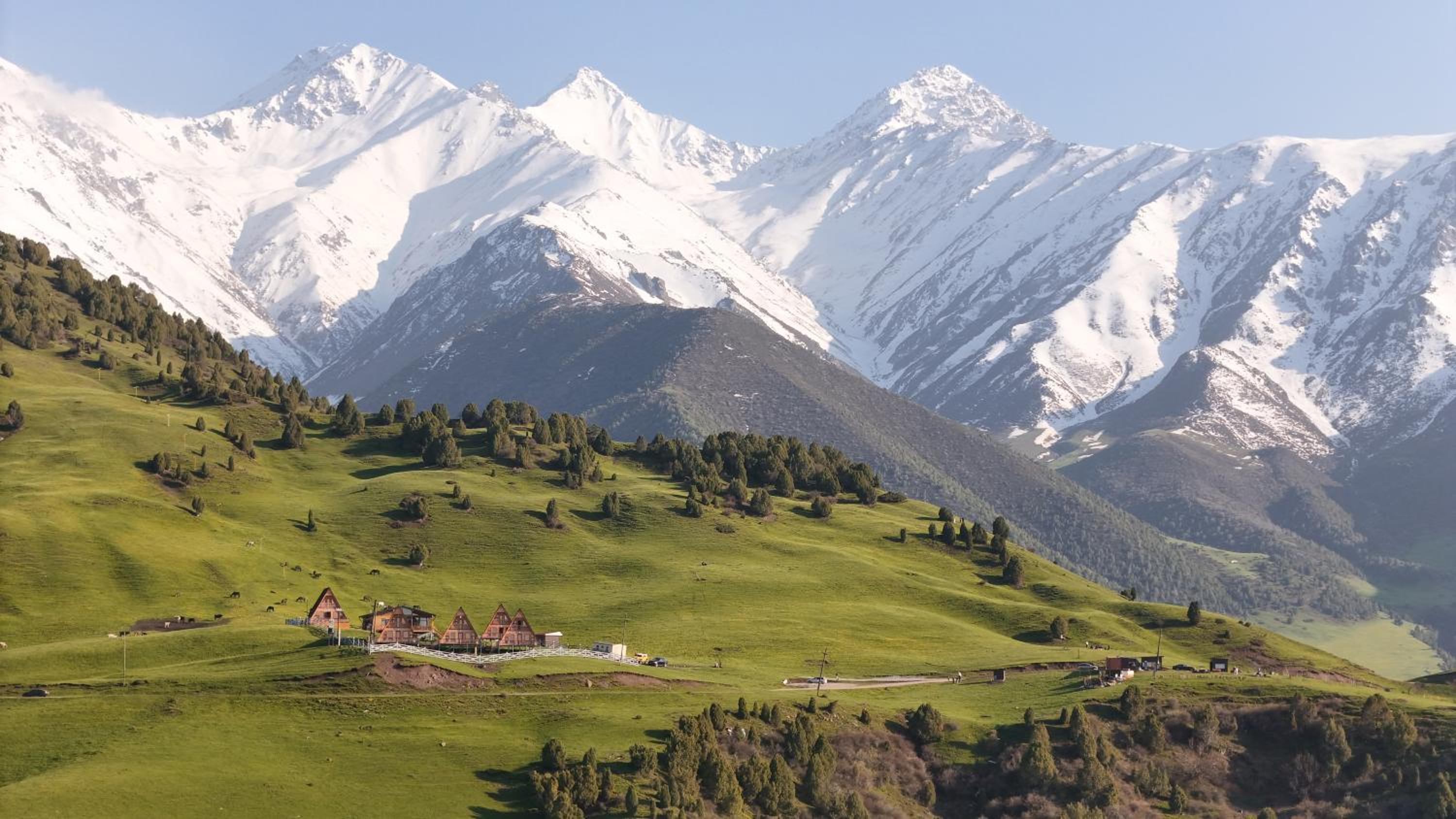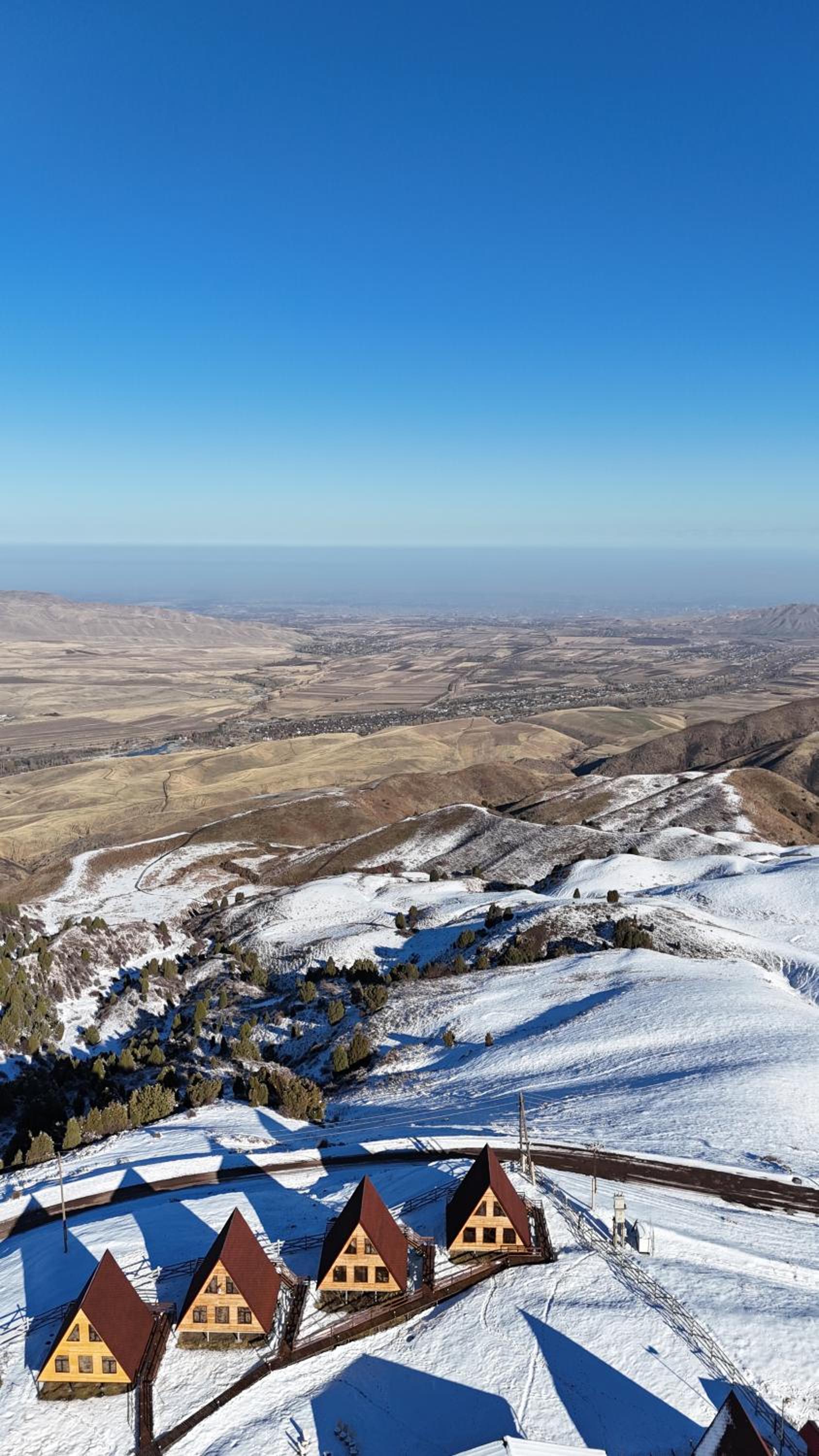 الاطلالات جميلة و قرب الاكواخ من العاصمة بشكيك فقط المسافة مدة ساعة تقريبا و الكوخ حلو جدا حجمه كبير و طابقين و نظيف و حديث