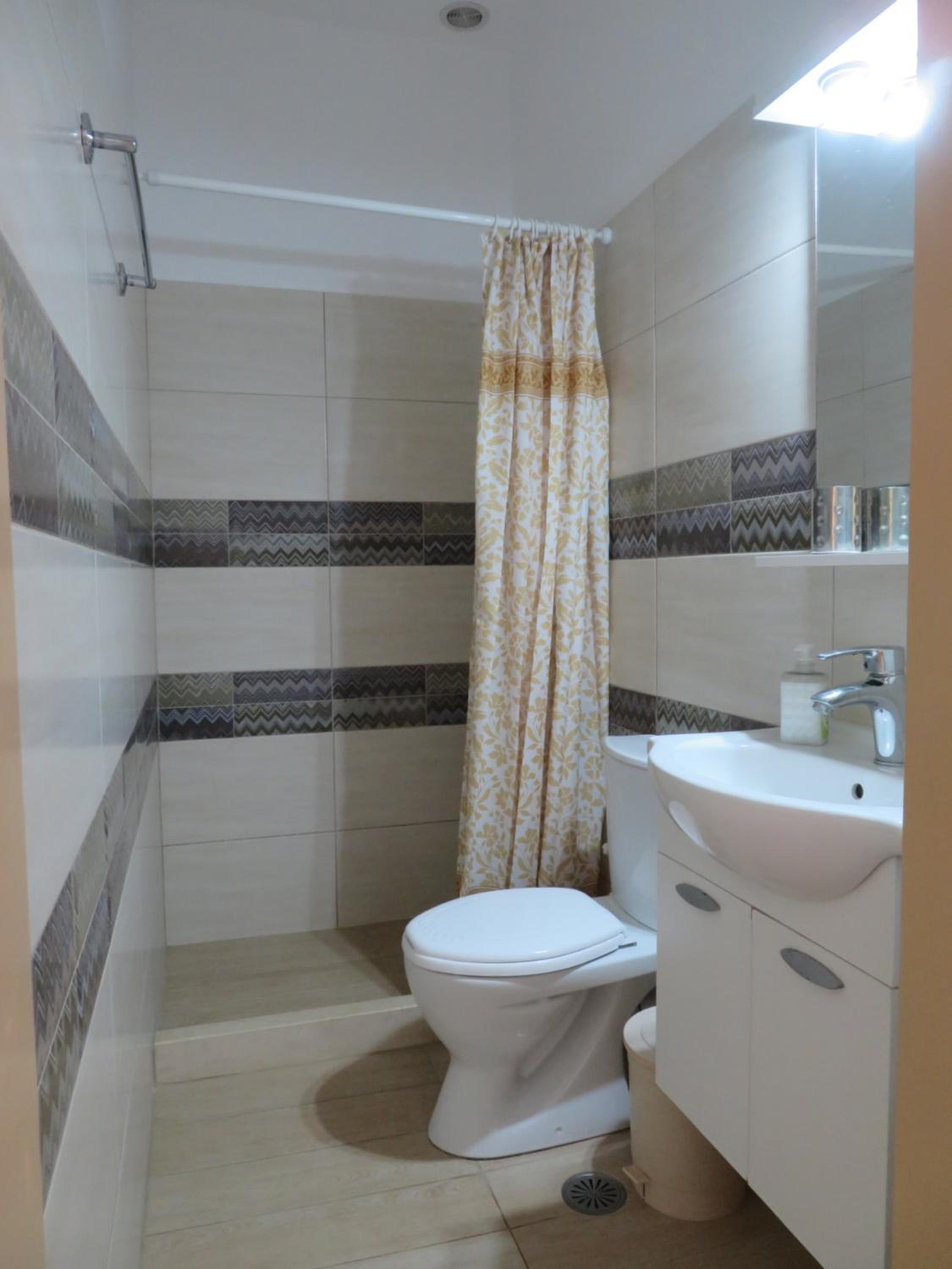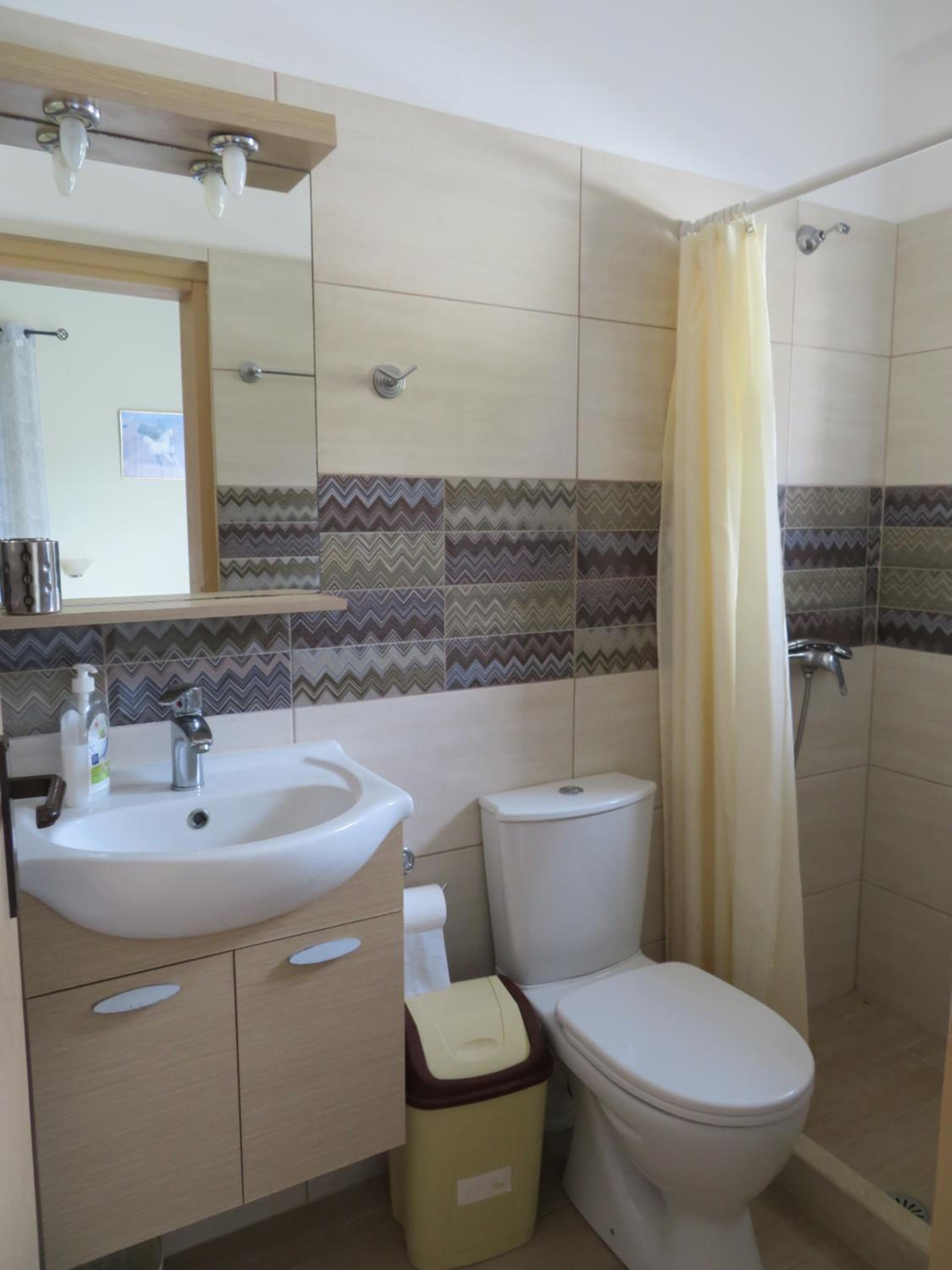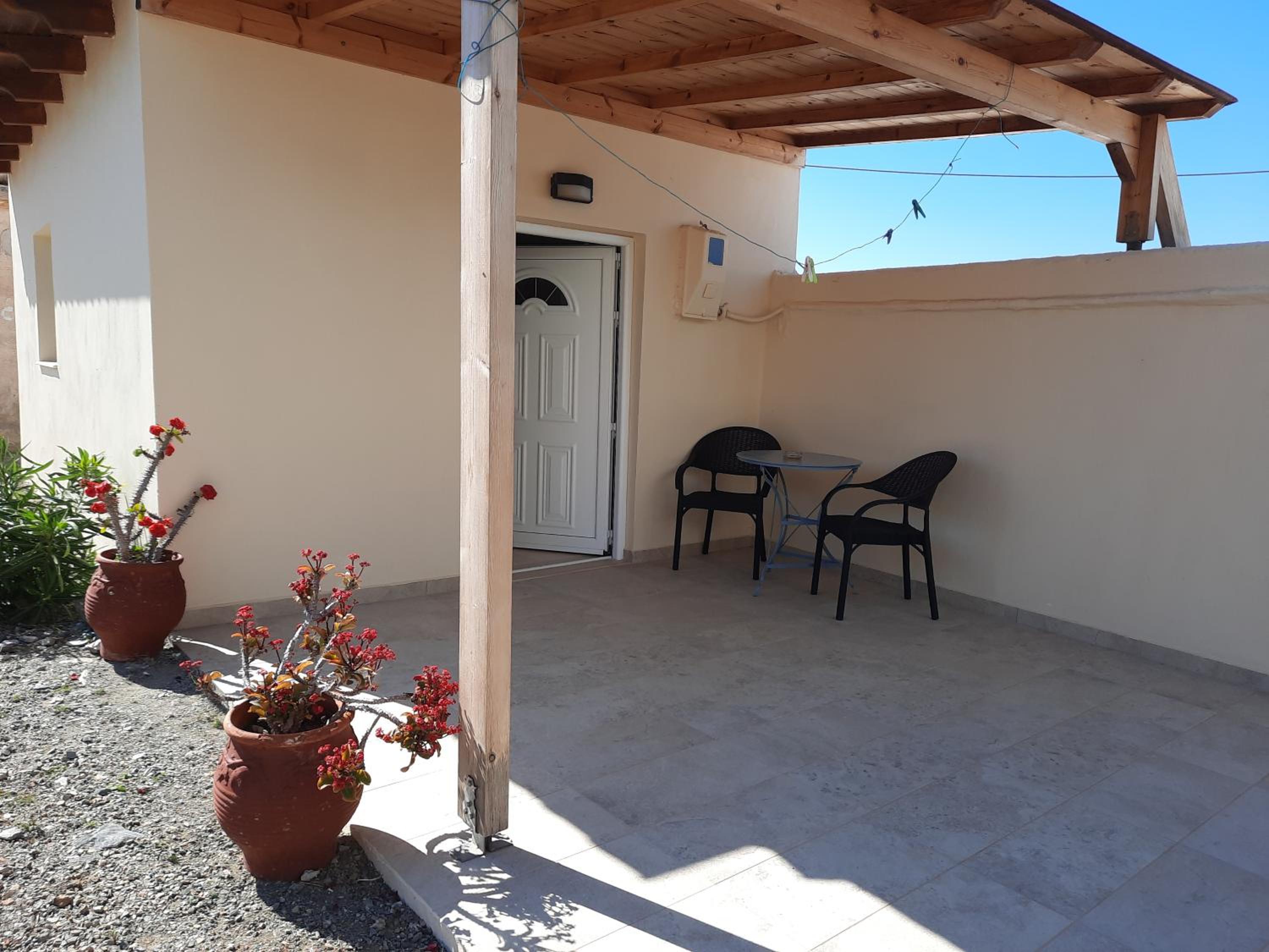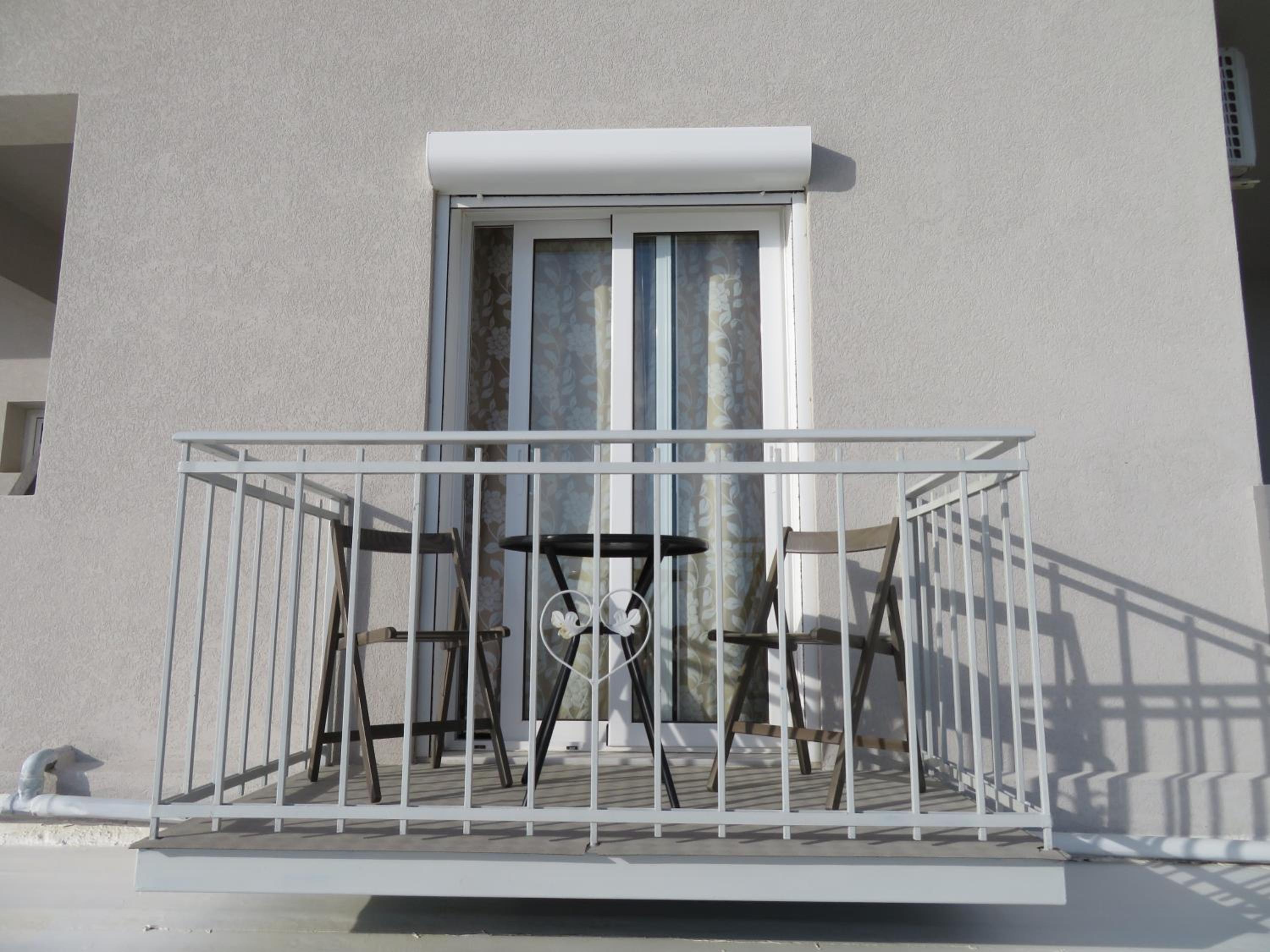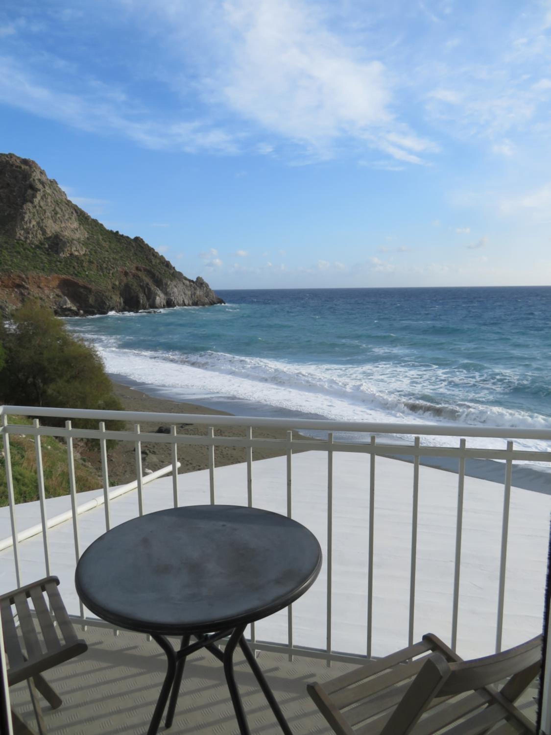 Very nice clean triple room with a small balcony oriented towards the sea. Directly on the beach, beautuliful location. A/C functional. Fridge, electric kettle, few plates, cups, glasses, cutlery, hair dryer. Below the room is also a restaurant with local food, good quality for a good price. We enjoyed it with our family. The owners are very kind, helpful and take care about the facility.