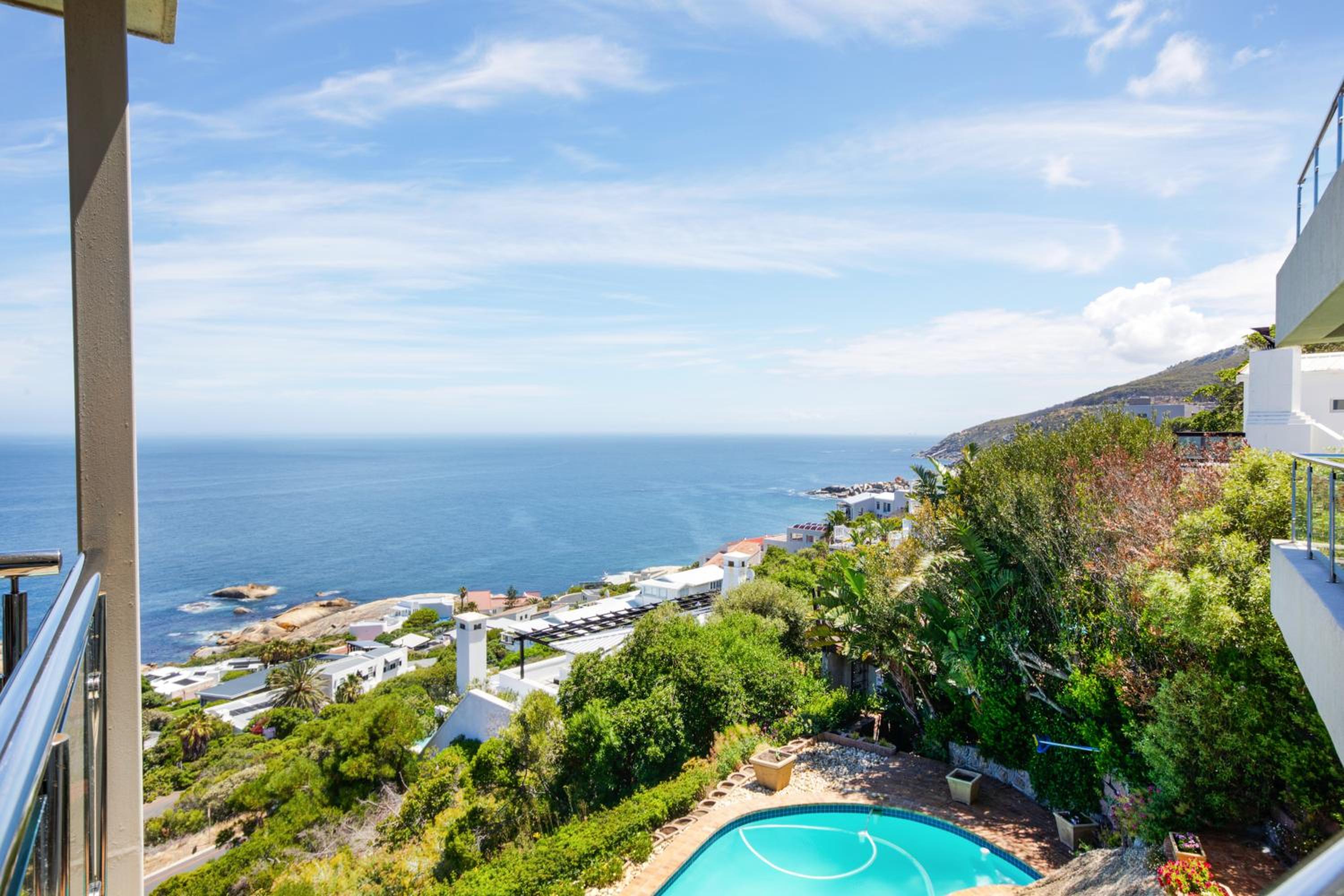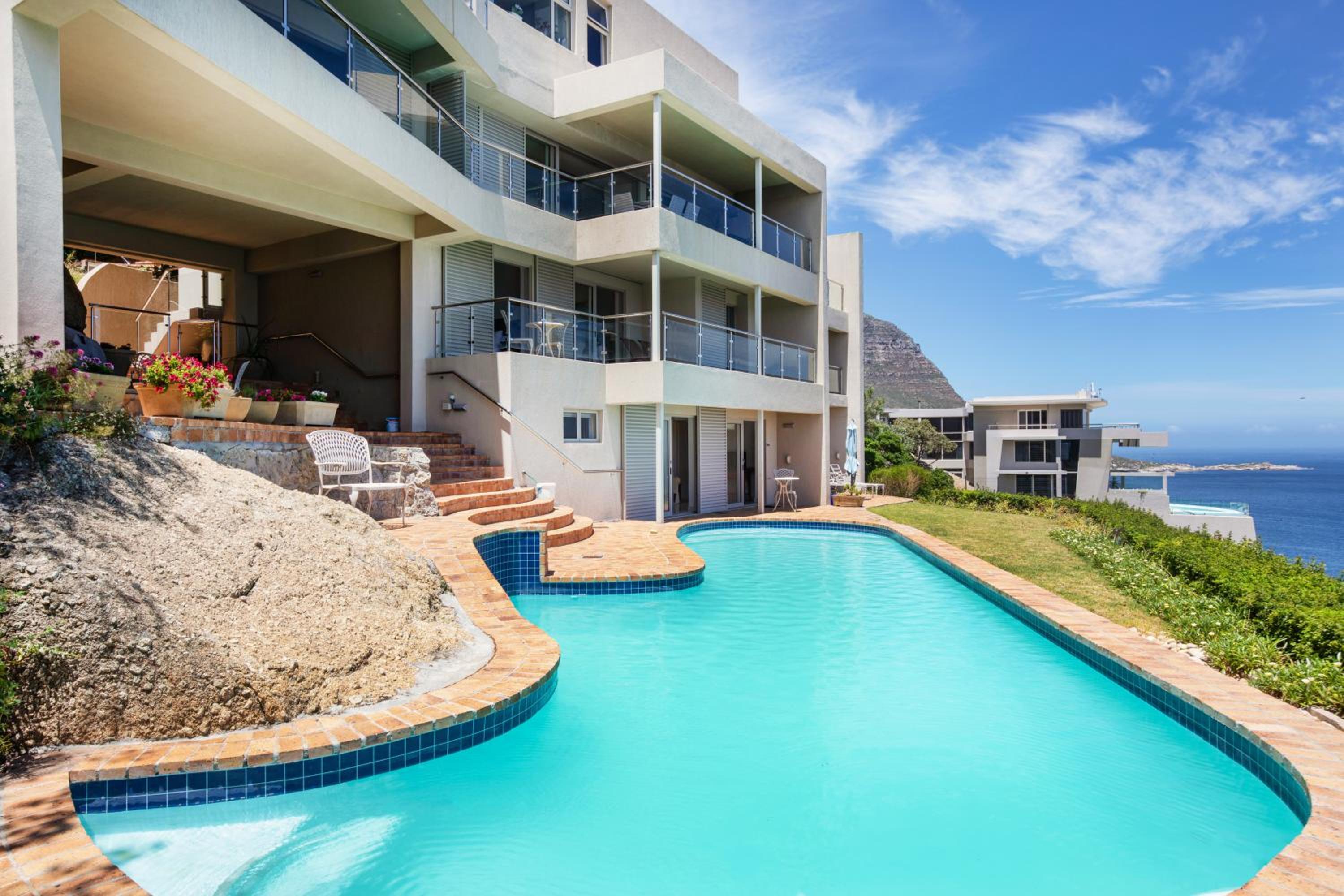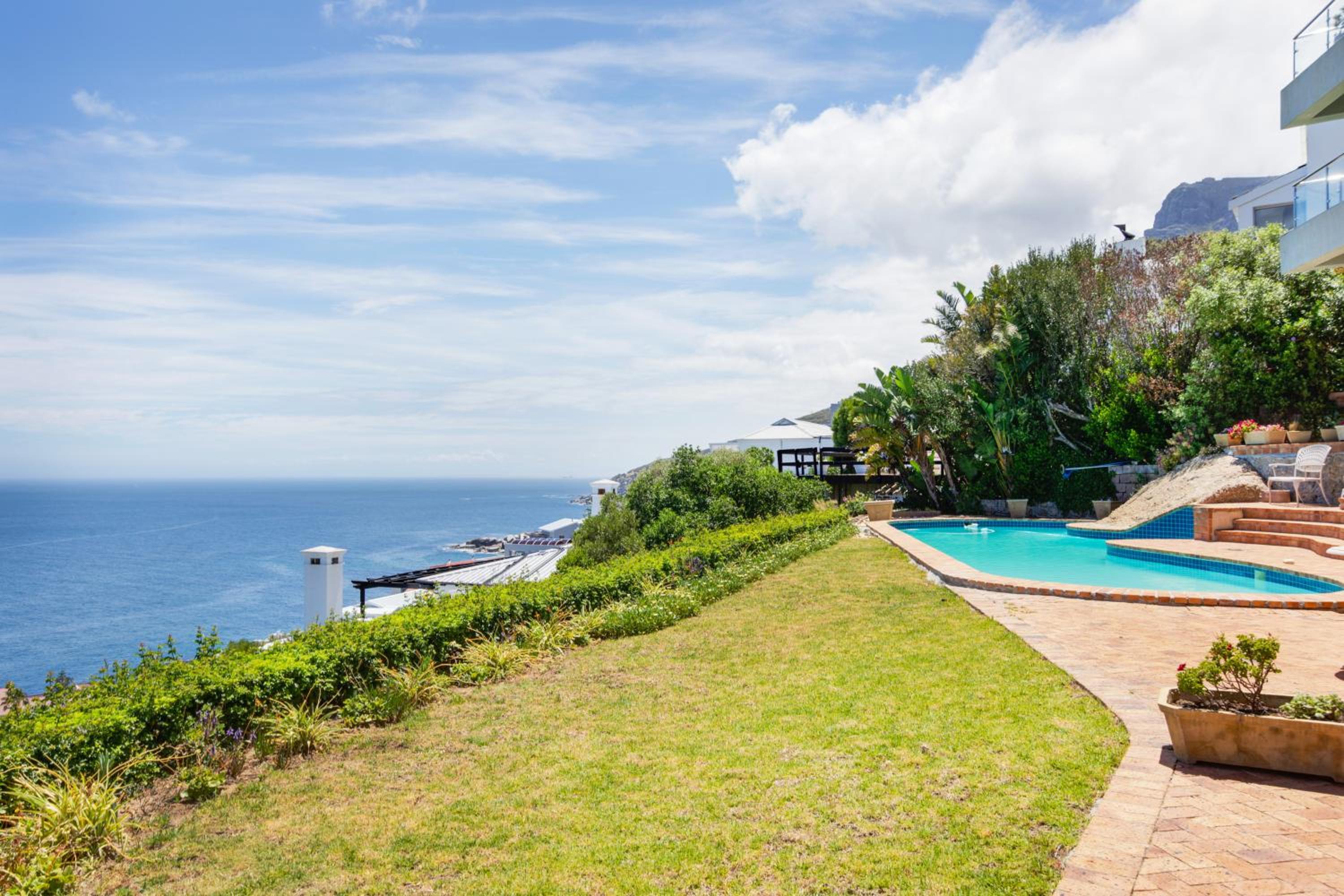 Enjoy a relaxing swim in our pool with a picturesque view of the sea, perfect for unwinding after a day of exploring Cape Town.