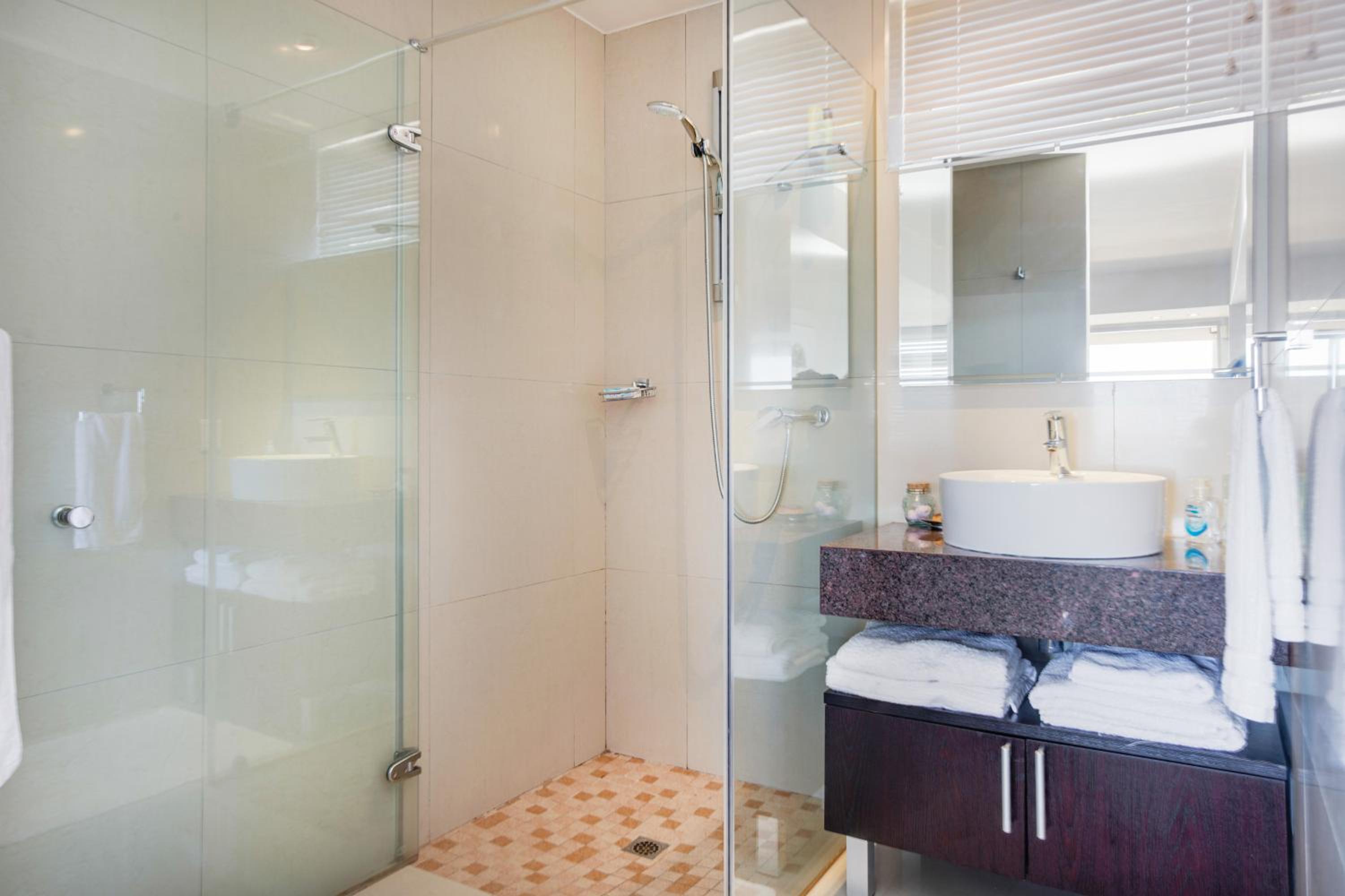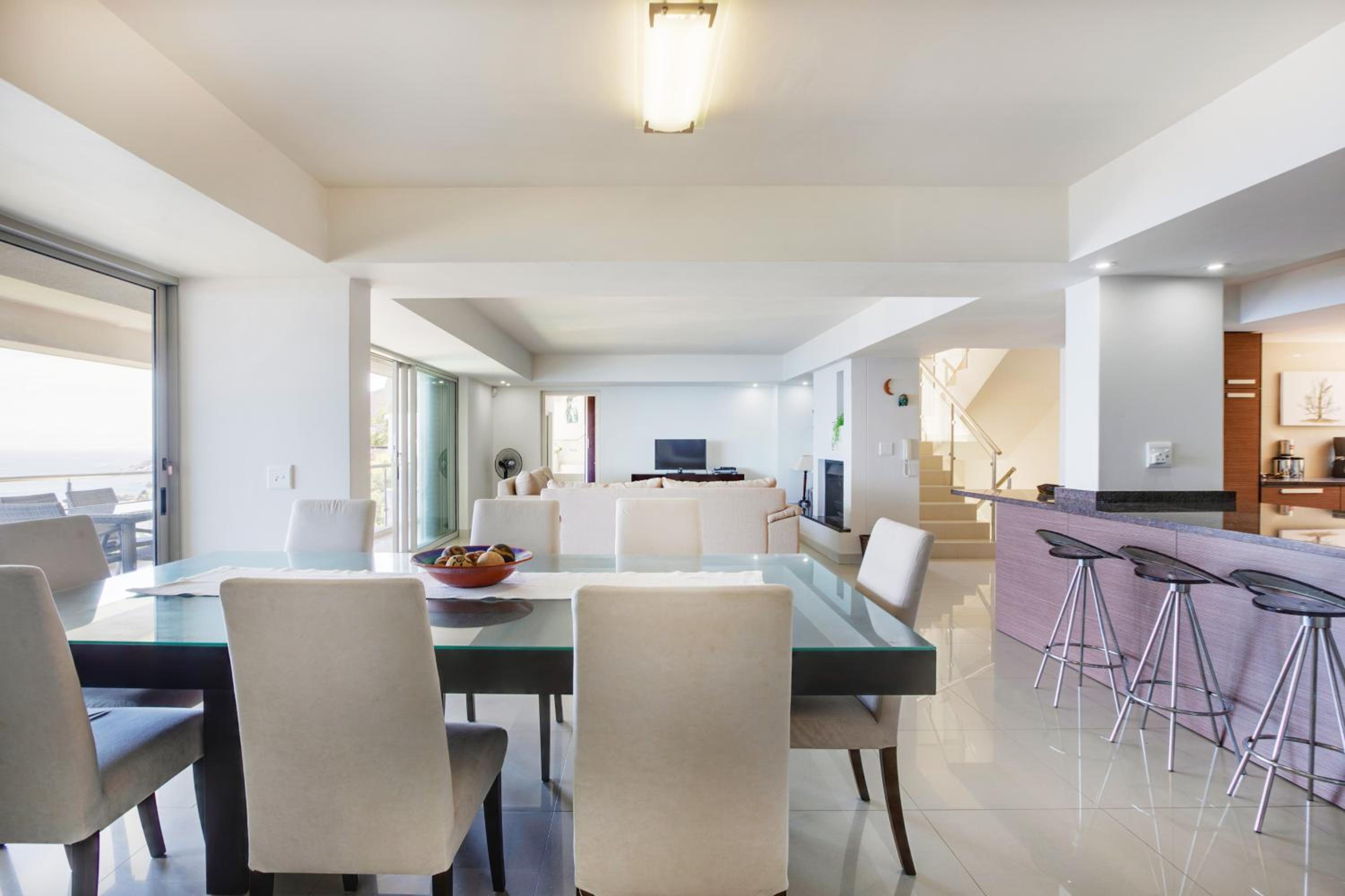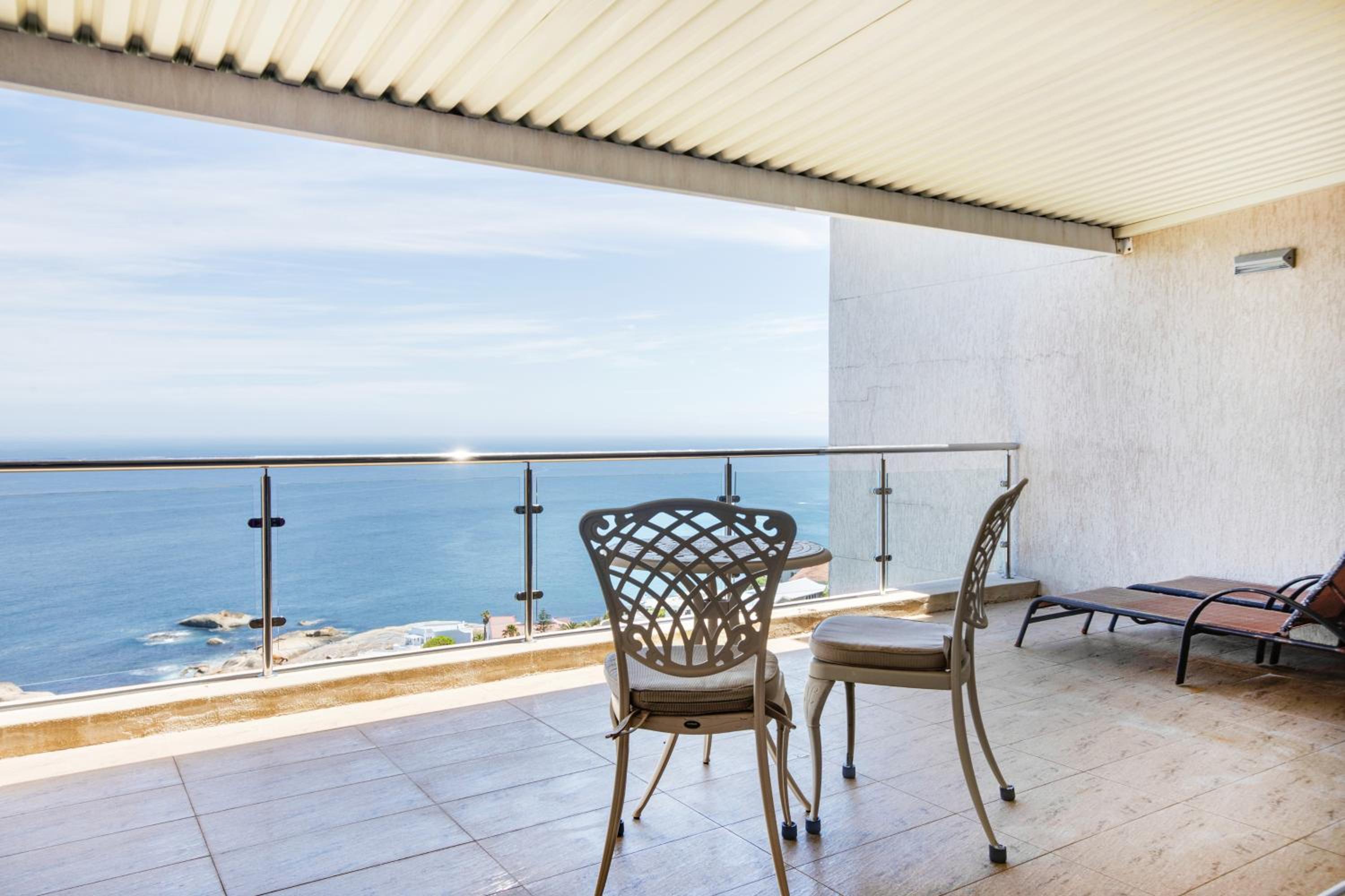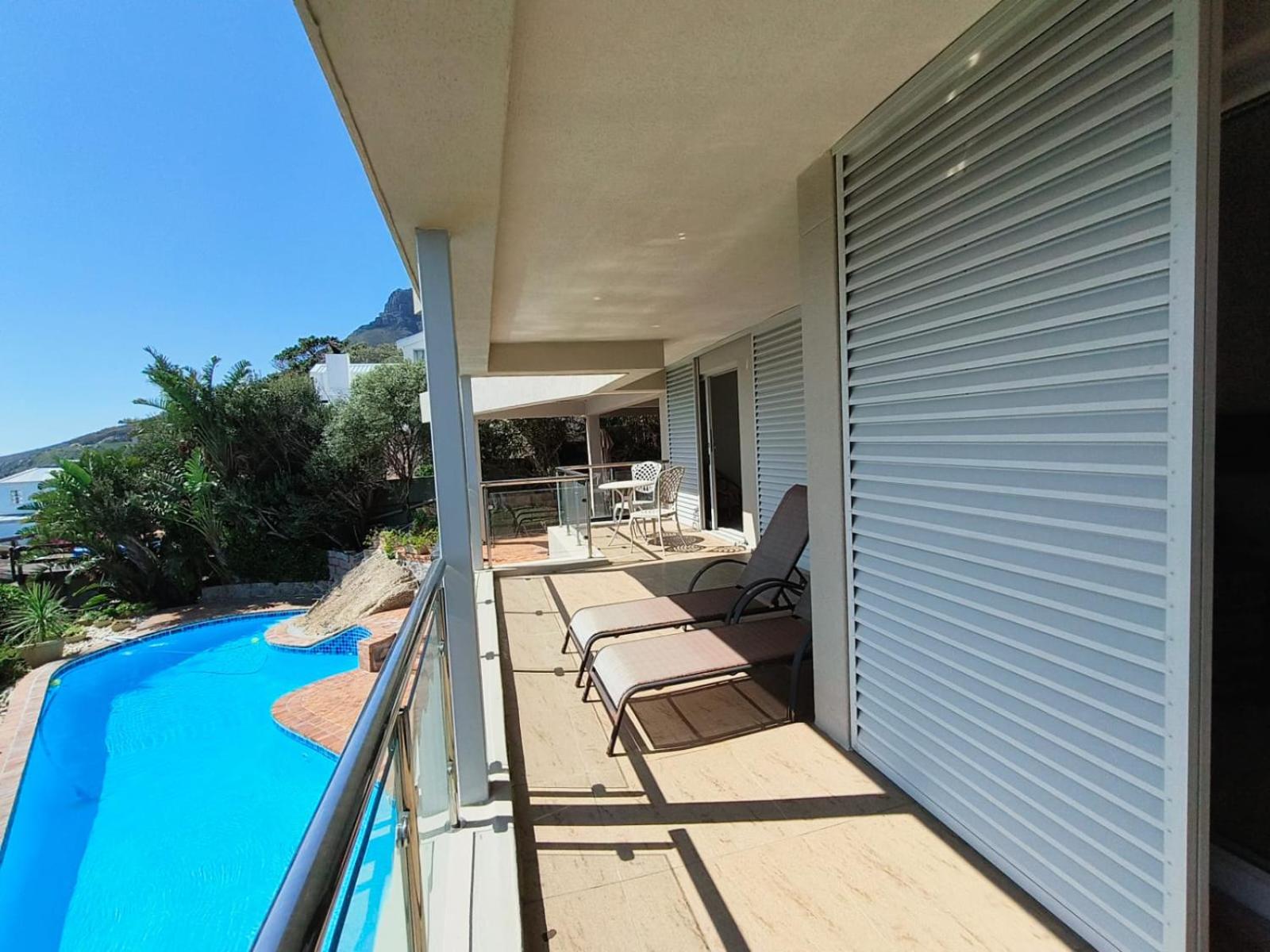 Enjoy a relaxing swim in our pool with a picturesque view of the sea, perfect for unwinding after a day of exploring Cape Town.