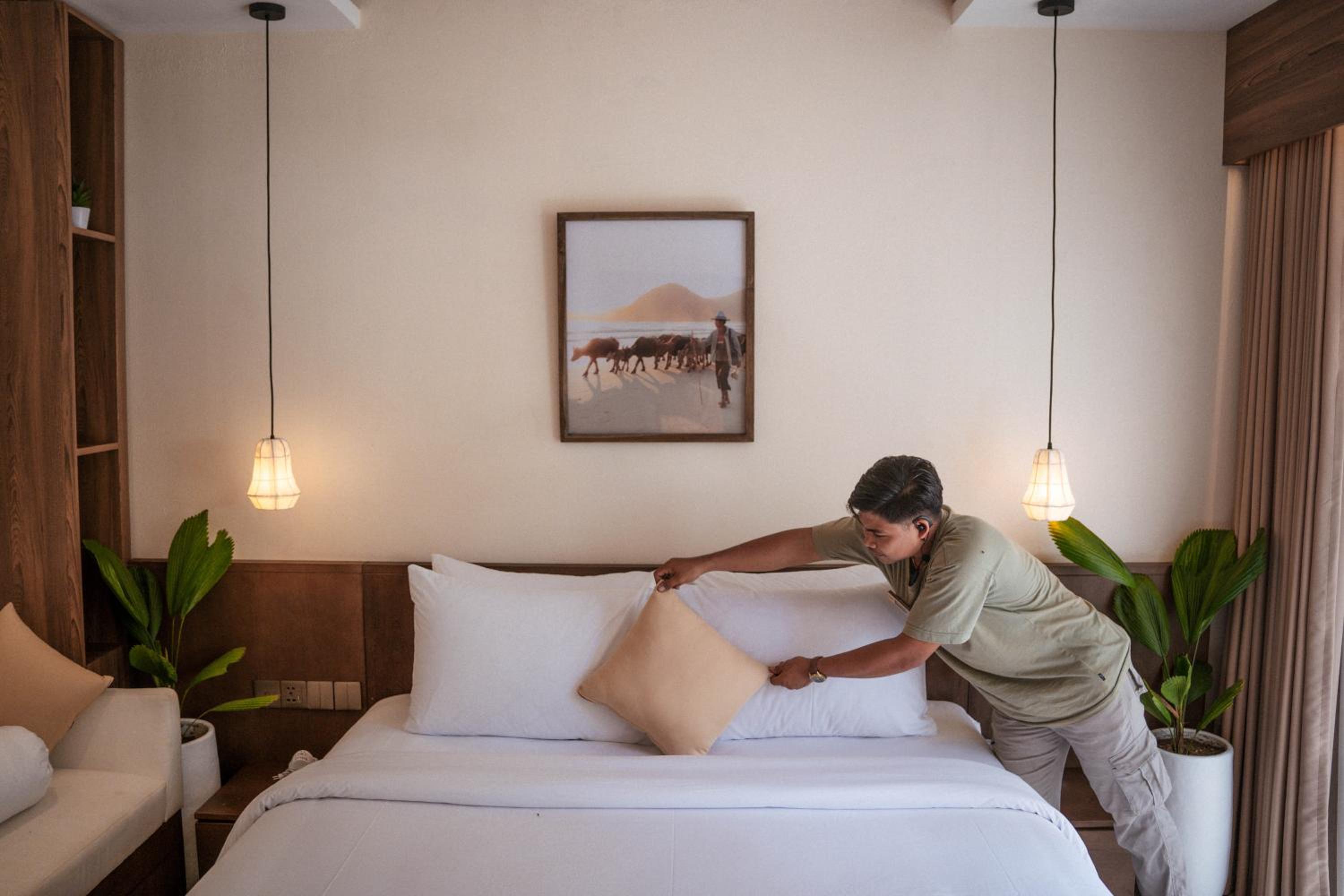 La habitación estaba limpia y las zonas comunes eran bonitas. El personal del hotel fue muy atento con nosotros en todo momento, facilitando gestiones como el alquiler de la moto, servicio de room service, o trayecto de vuelta al aeropuerto.