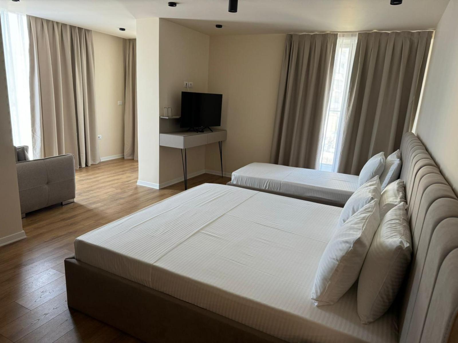 Nema terase u sobi a rezerviso sa terasom.Ne radi tv,nema fena.Garaza tako strma da sam auto zakacio dole a nije nizak.Ispred hotela ne moze se naci mesta za parking.Buka od ulice.Doručak uvek isti nista se ne menk.Stolovi prljavi za jelo.