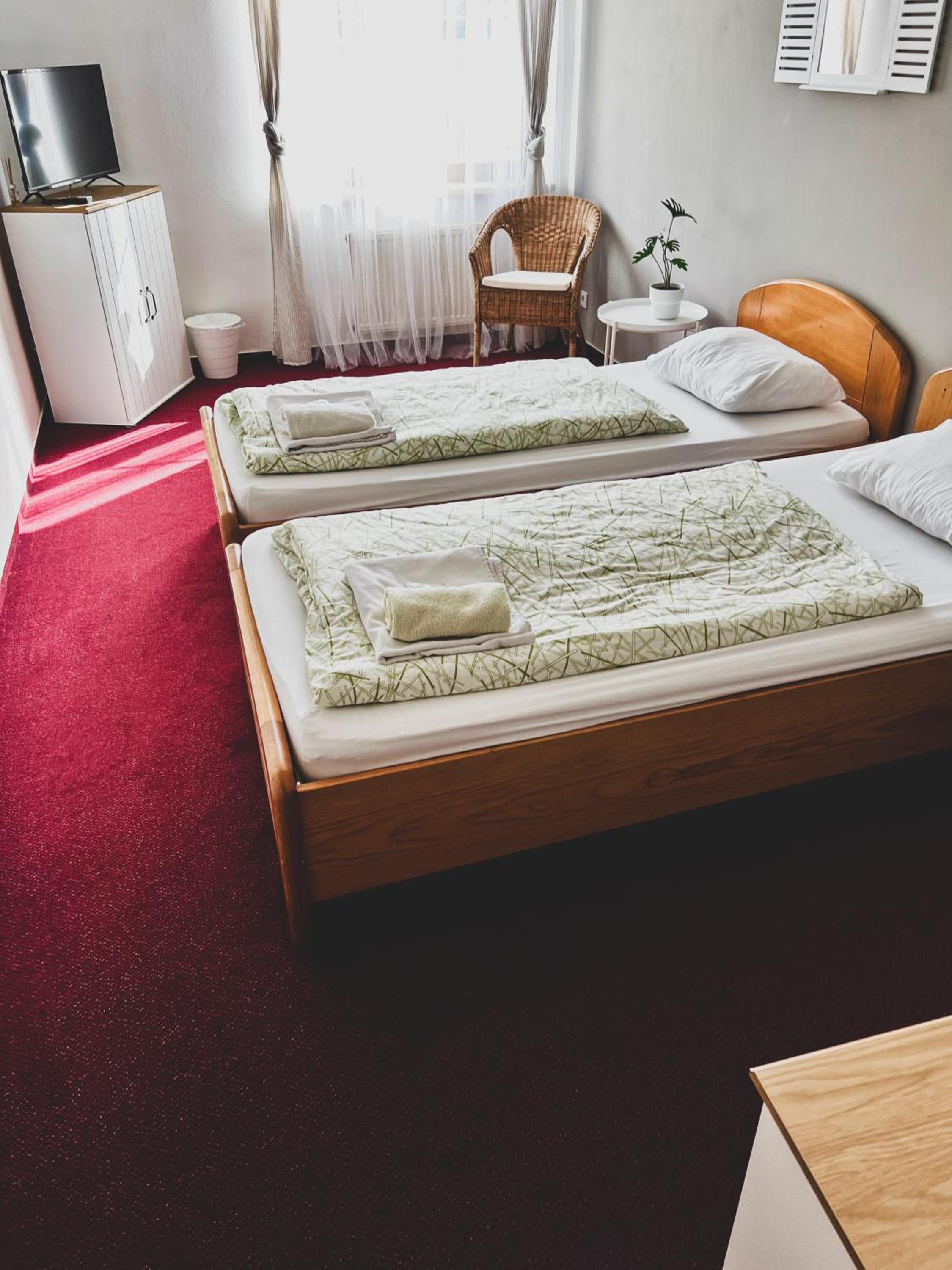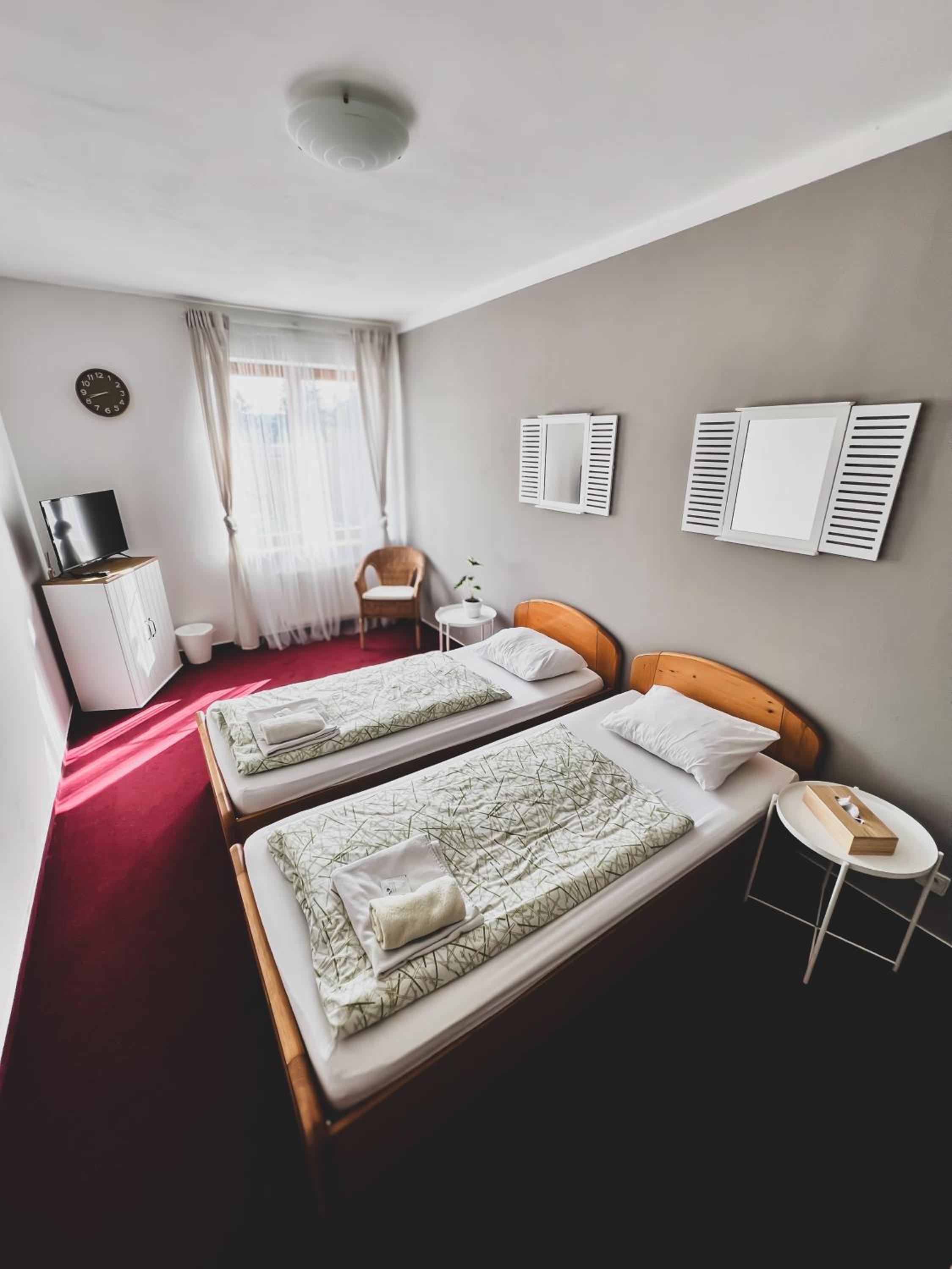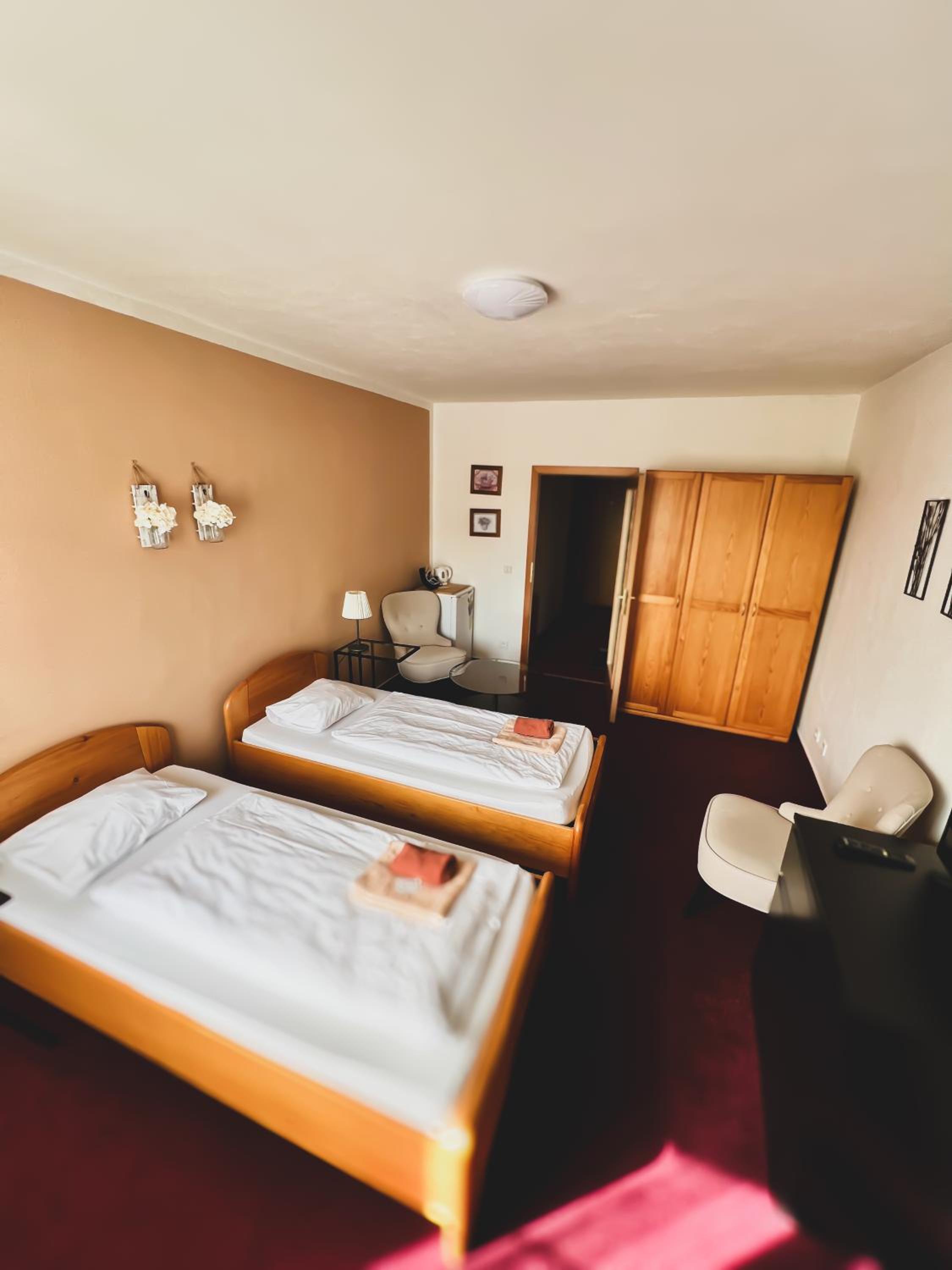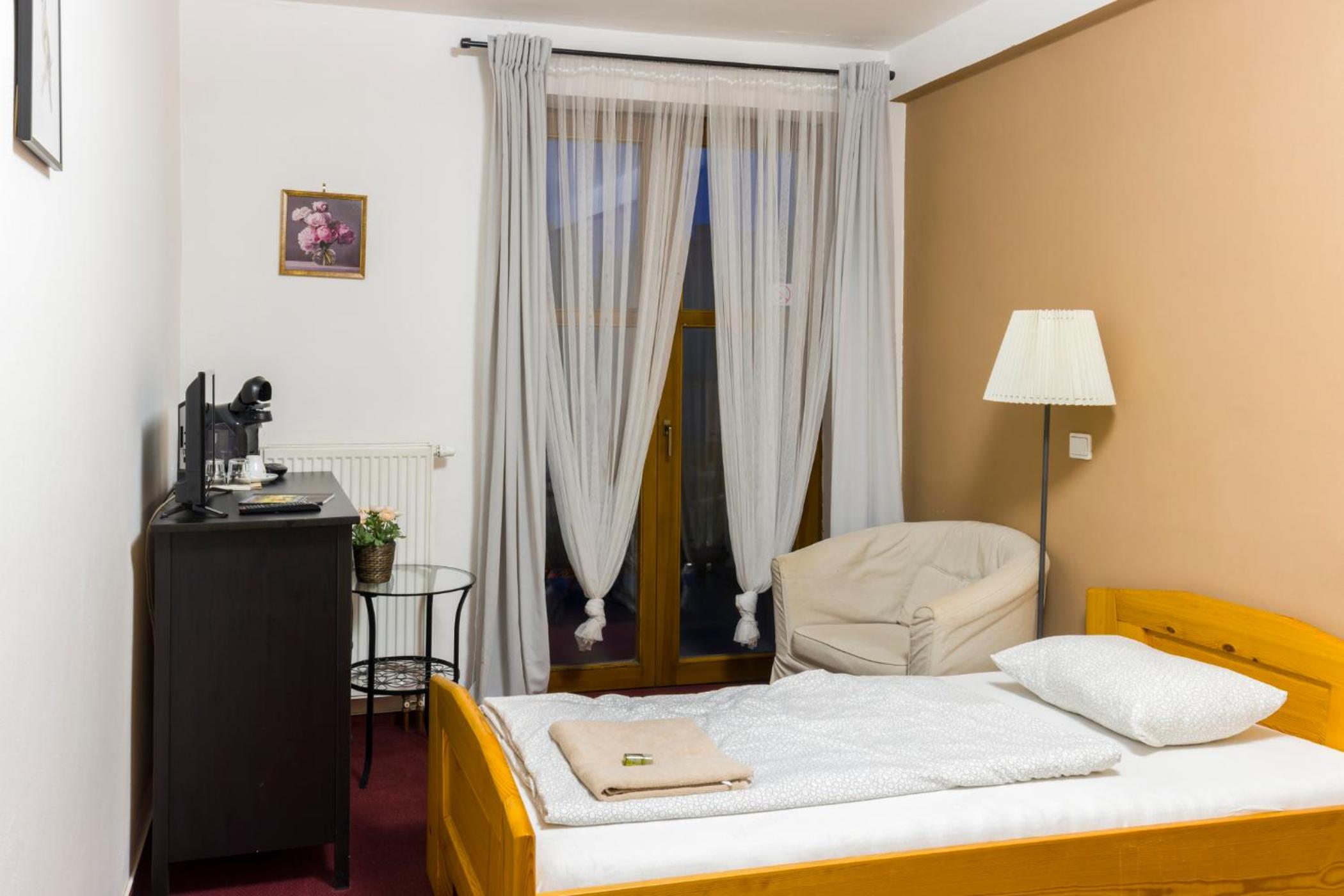 Na hotelu jsme pouze přespali, byli jsme poblíž na svatbě. Snídaně jsme nevyužili, z personálu jsme vlastně ani nikoho nepotkali. Milá paní recepční nám po telefonické dohodě zanechala klíček od pokoje v trezůrku a poslala nám sms zprávu s podrobným popisem jak se dostat k hotelovému parkovišti a zadnímu vchodu. Pokoj standartní, čistý, matrace tedy velice tvrdé, ale překvapivě pohodlné. :)