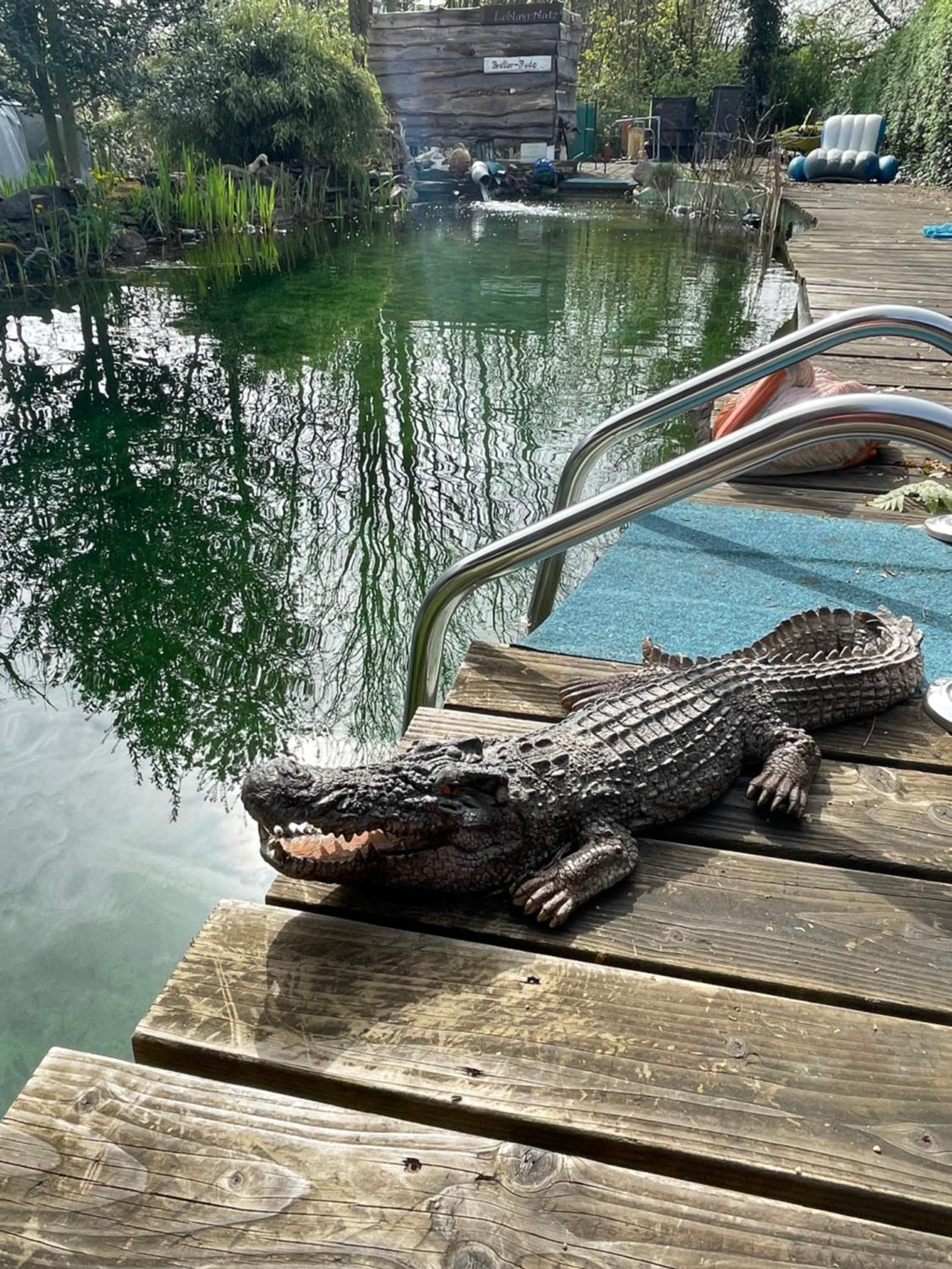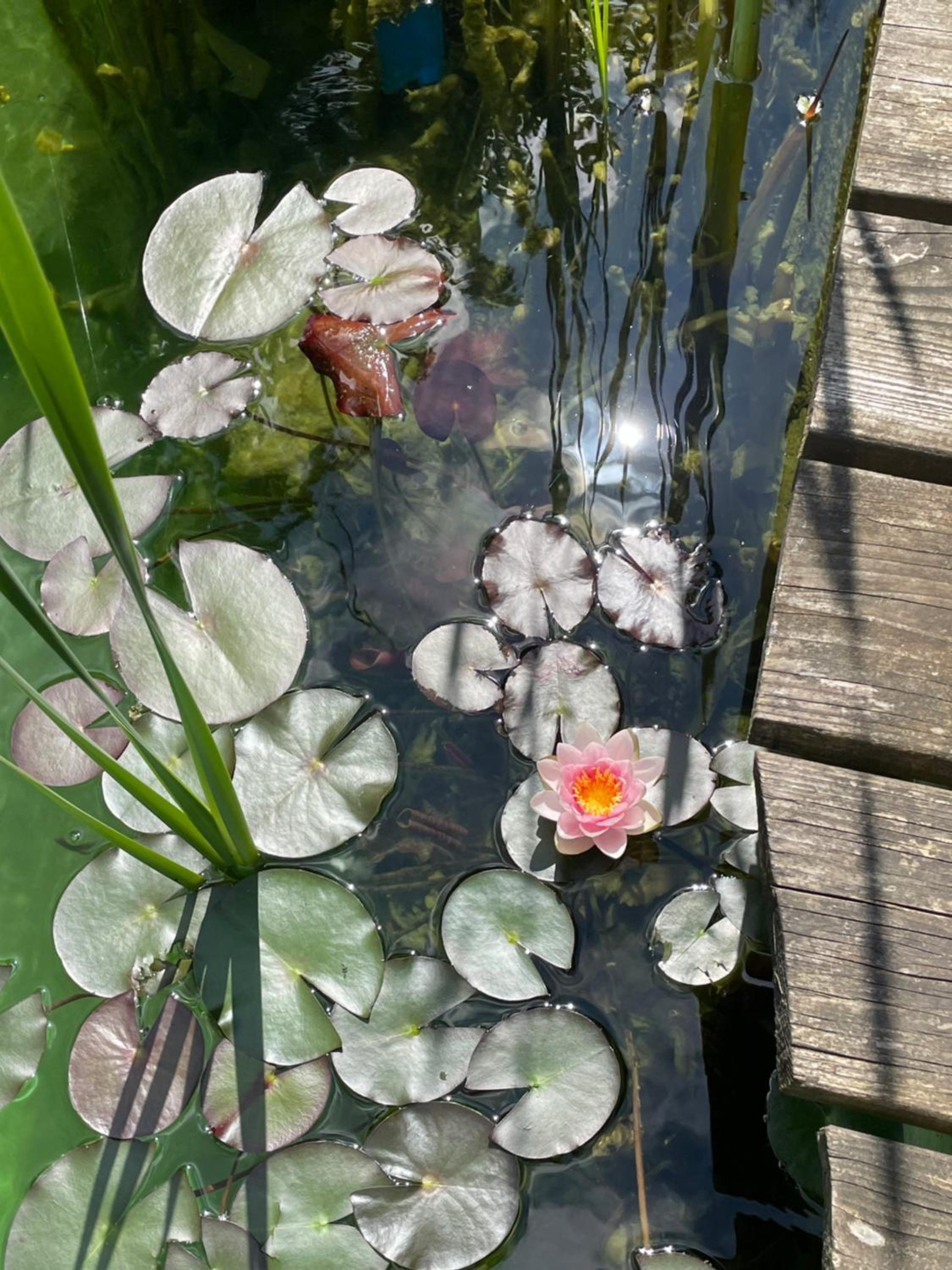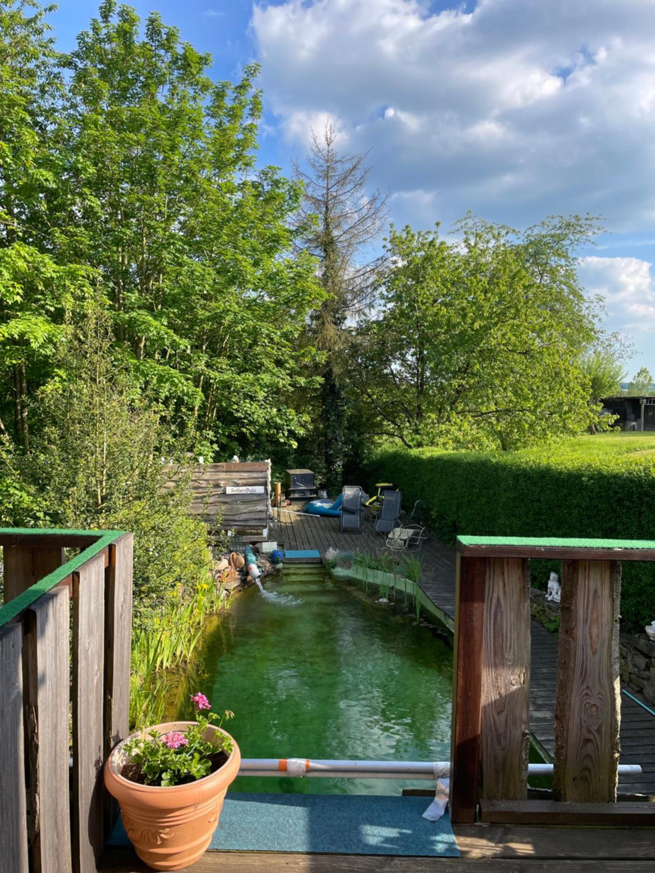 Man kann den ganzen Garten und dazugehörenden Schwimmteich benutzen.