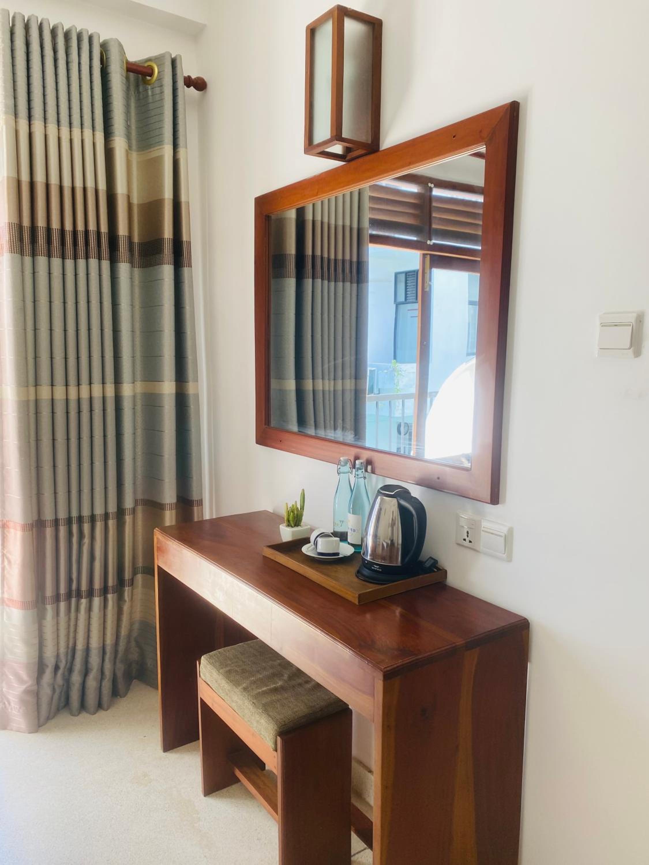 Very clean room with excellent furnishing (comfy bed, great bed lightning, AC controller directly above headboard of bed + controls for ceiling fan), also a, extremly welcoming and kind hotel staff. The breakfast was so delicious and the location is perfect. It is also very quiet and not that busy. 15 minutes to the bus stop to Weligama / Mirissa and 3 Minutes to the nearest beach. Many good restaurants/ bars in this area.
