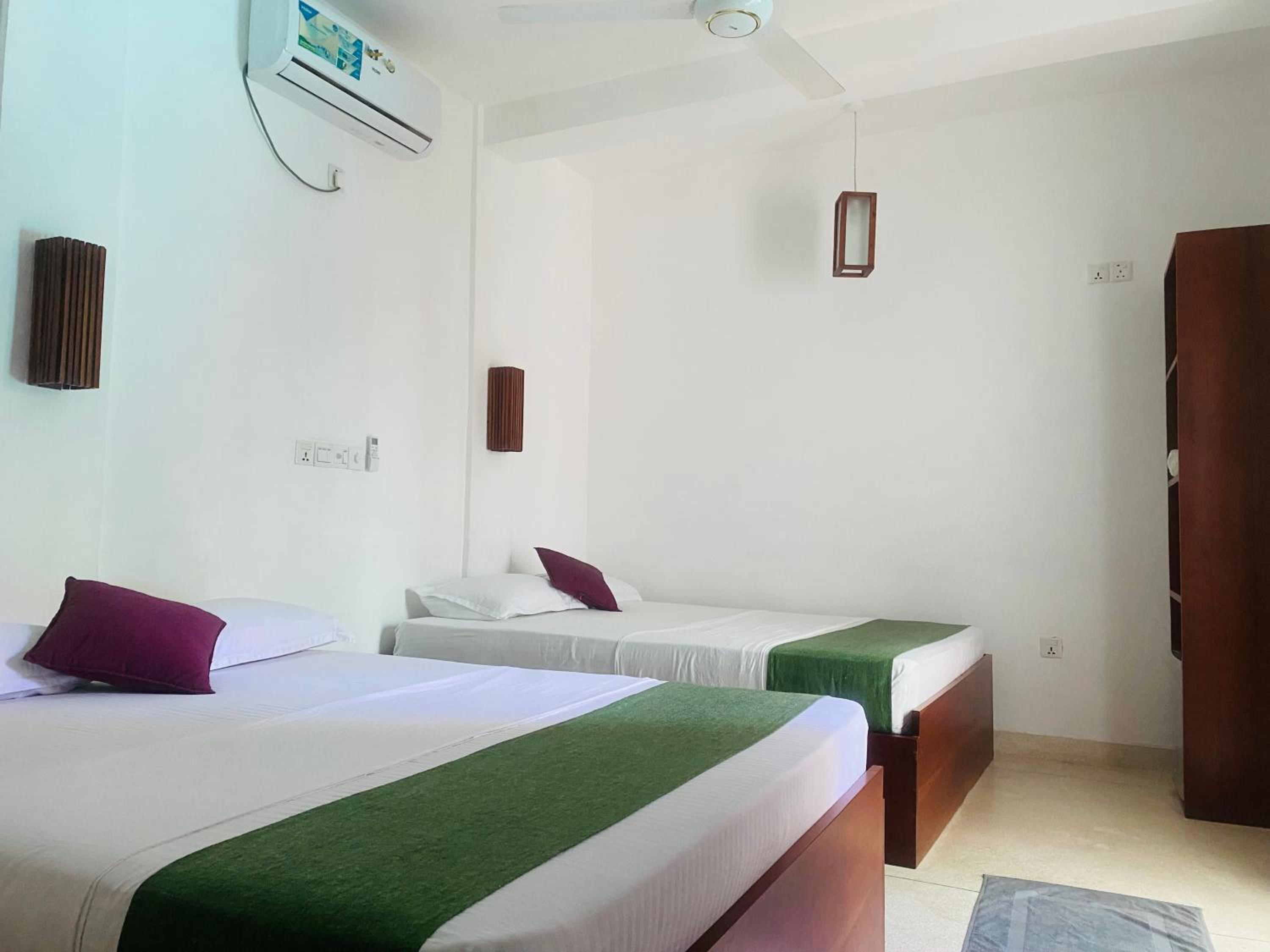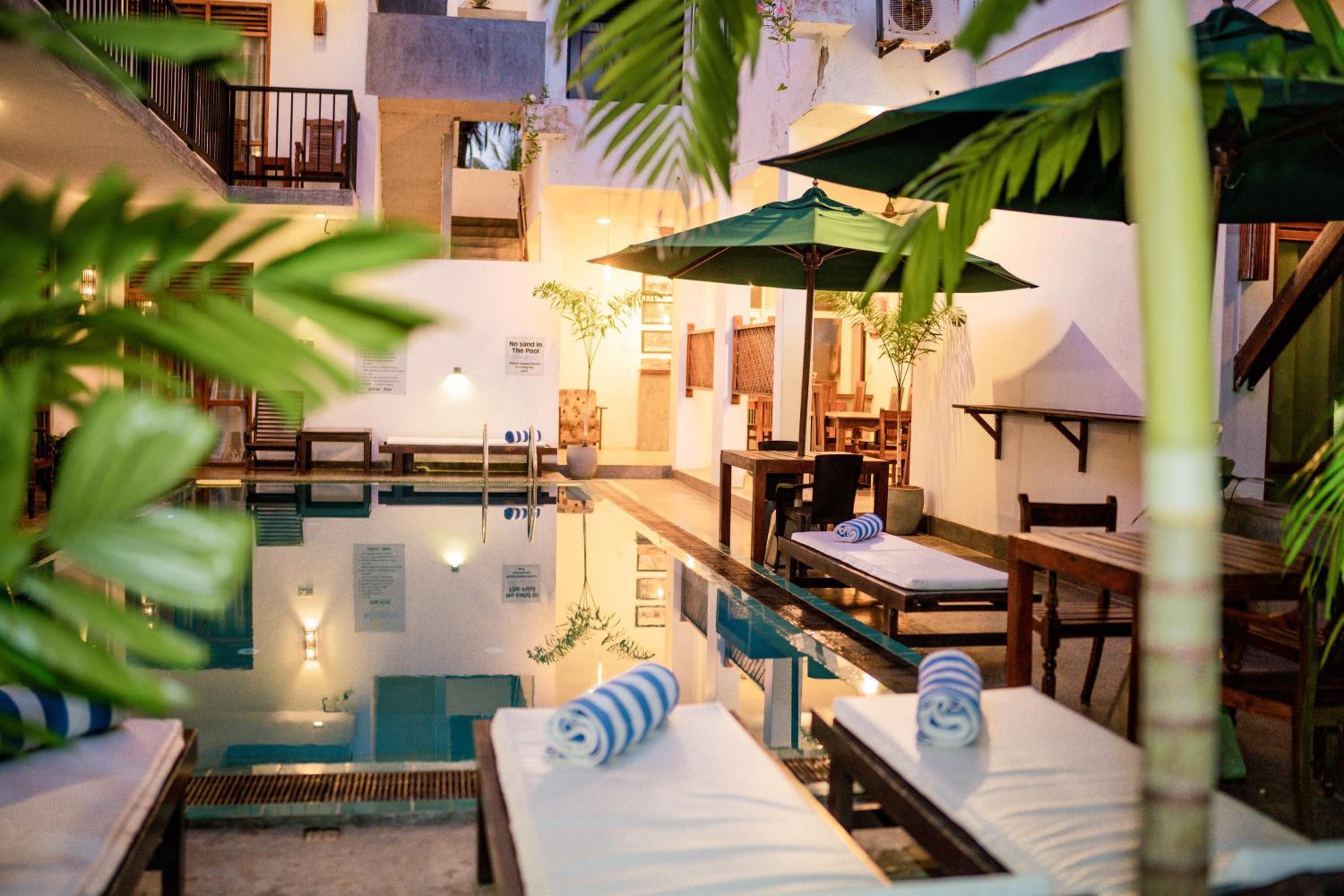 Das Personal ist wundervoll, freundlich und sehr hilfsbereit! Sie geben sich sichtlich Mühe und tun alles dafür, dass man sich wohlfühlt. Die Lage des Hotels ist super und nur wenige Minuten vom Strand und diversen Restaurants entfernt. Wir hatten das sehr geräumige Familienzimmer mit drei Betten und mehr als genug Platz. Beim Frühstück hat man die Wahl zwischen Continental oder Sri Lanka Breakfast, beides war gut und immer ausreichende Portionen. Der Pool ist schön, wenn auch etwas kalt, da er so gut wie keine Sonne abbekommt.