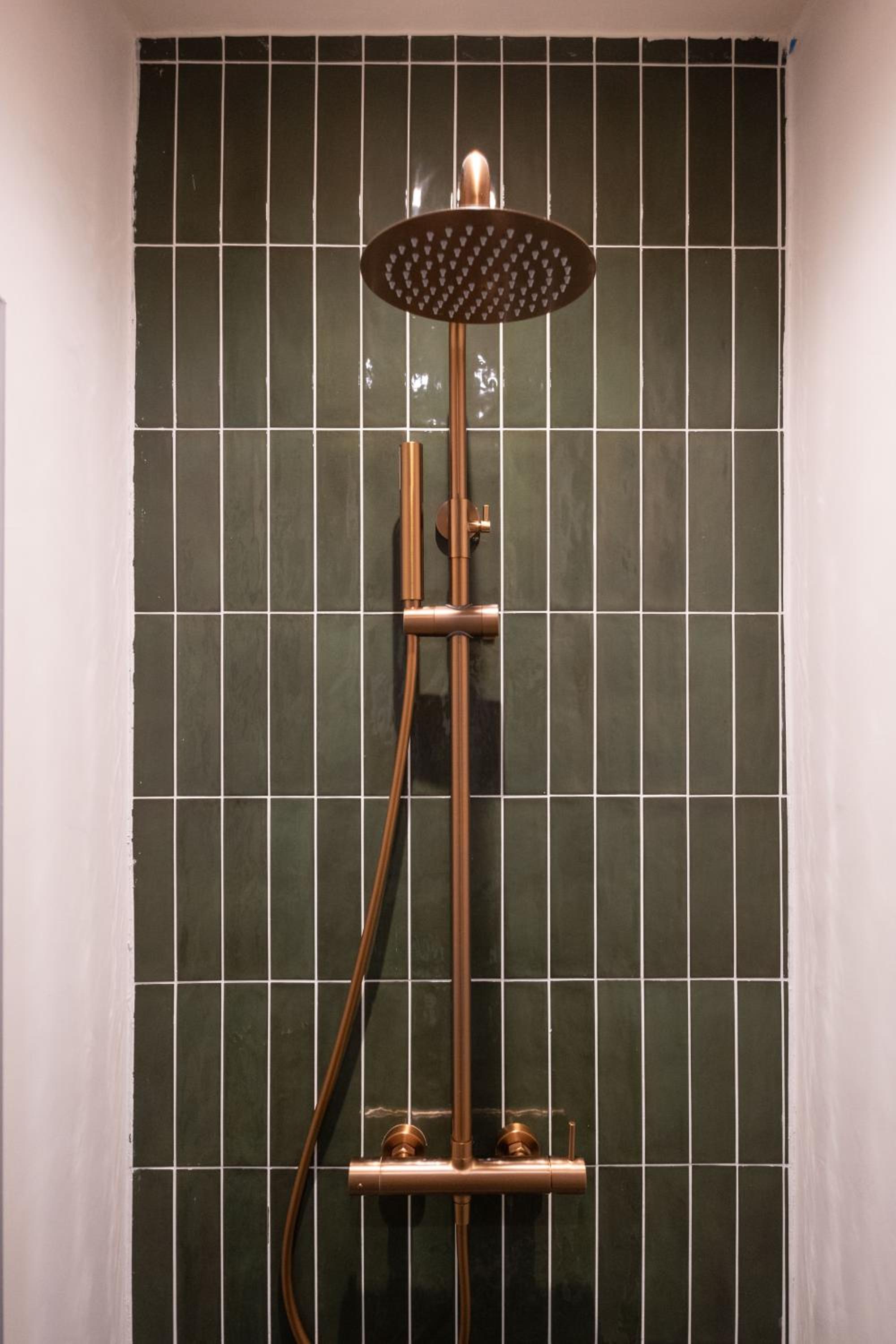 There was a small change of levels in the shower room/wet room, and the tiles were all the same gorgeous green, but it meant you had to be careful of this.