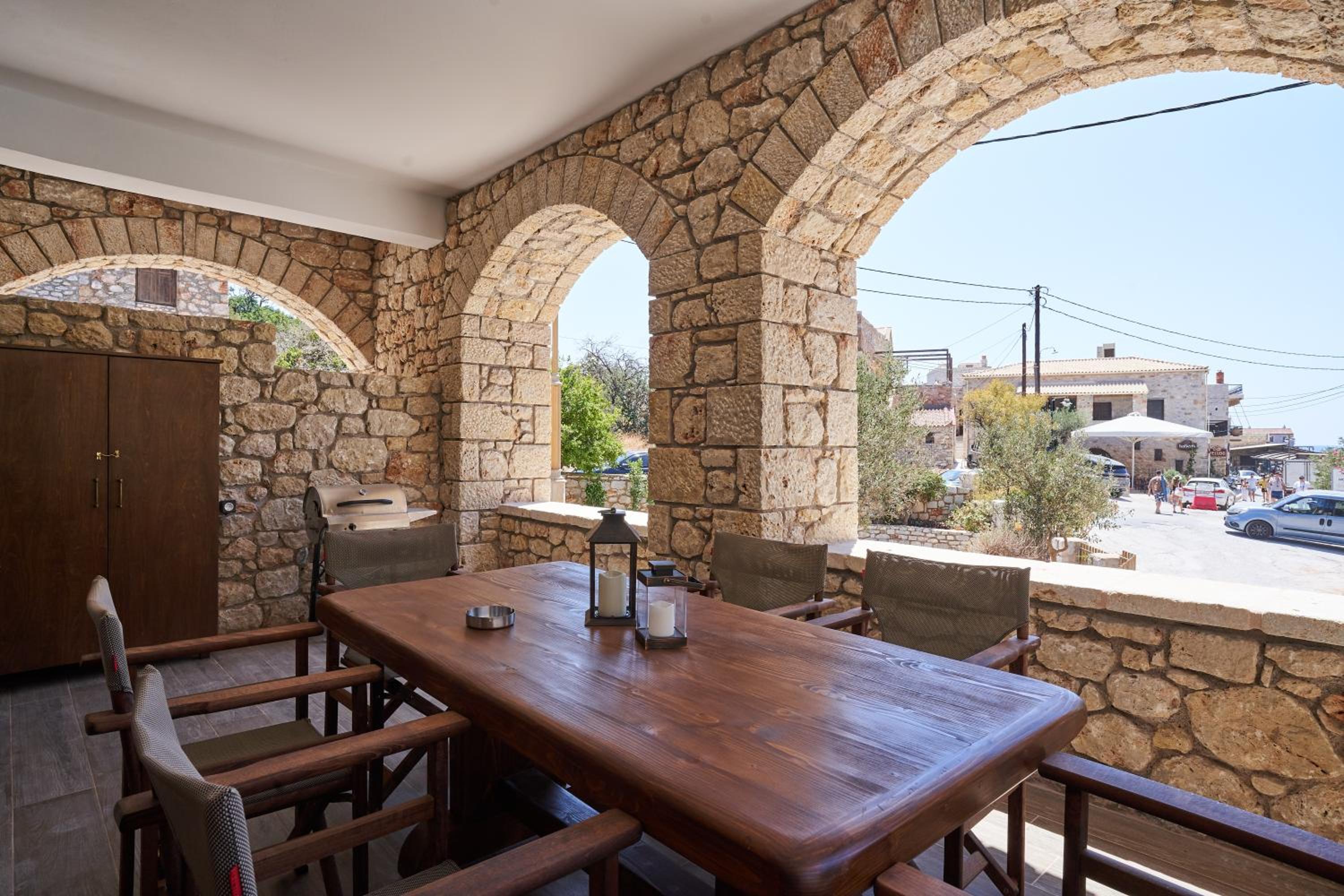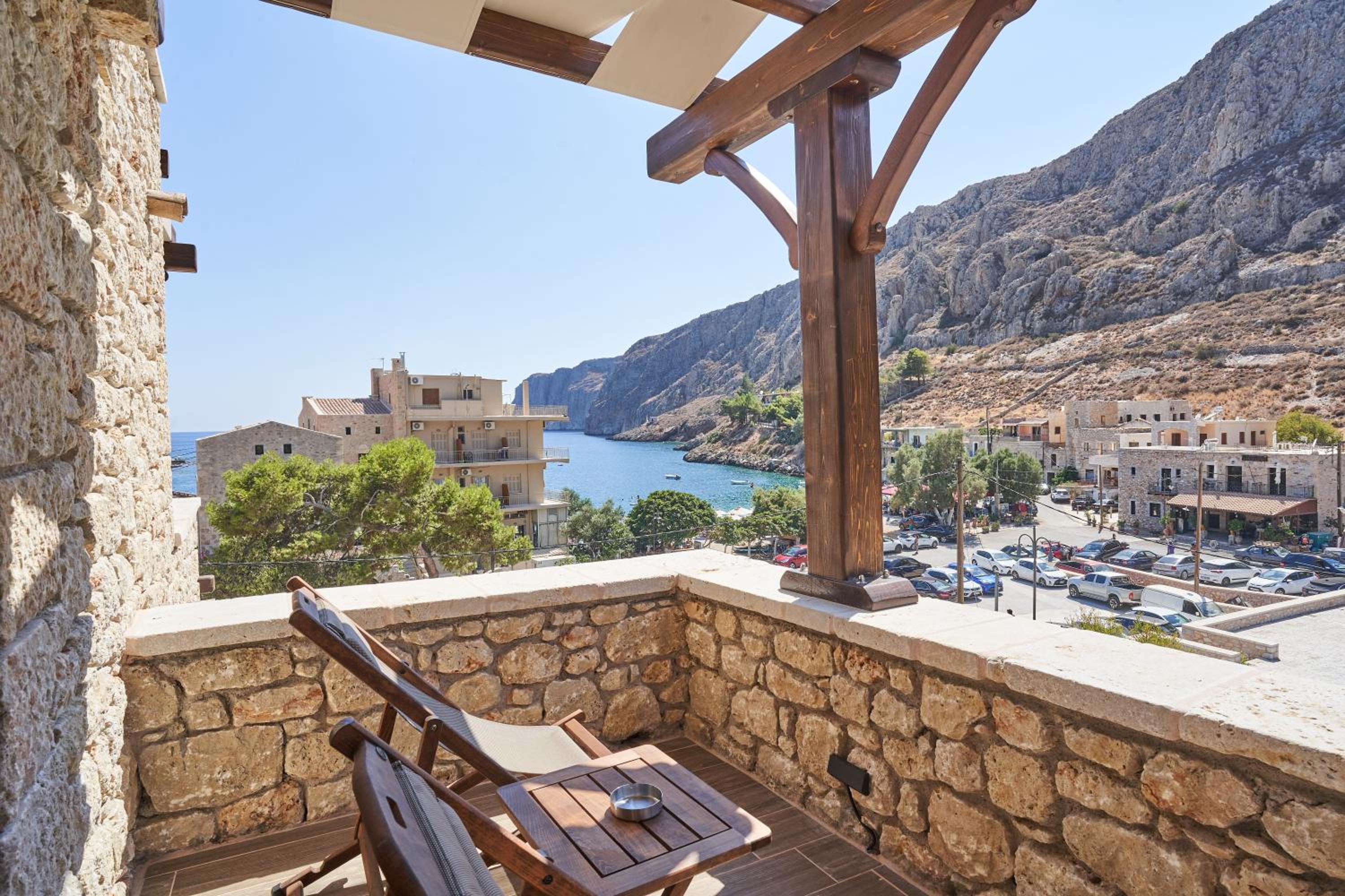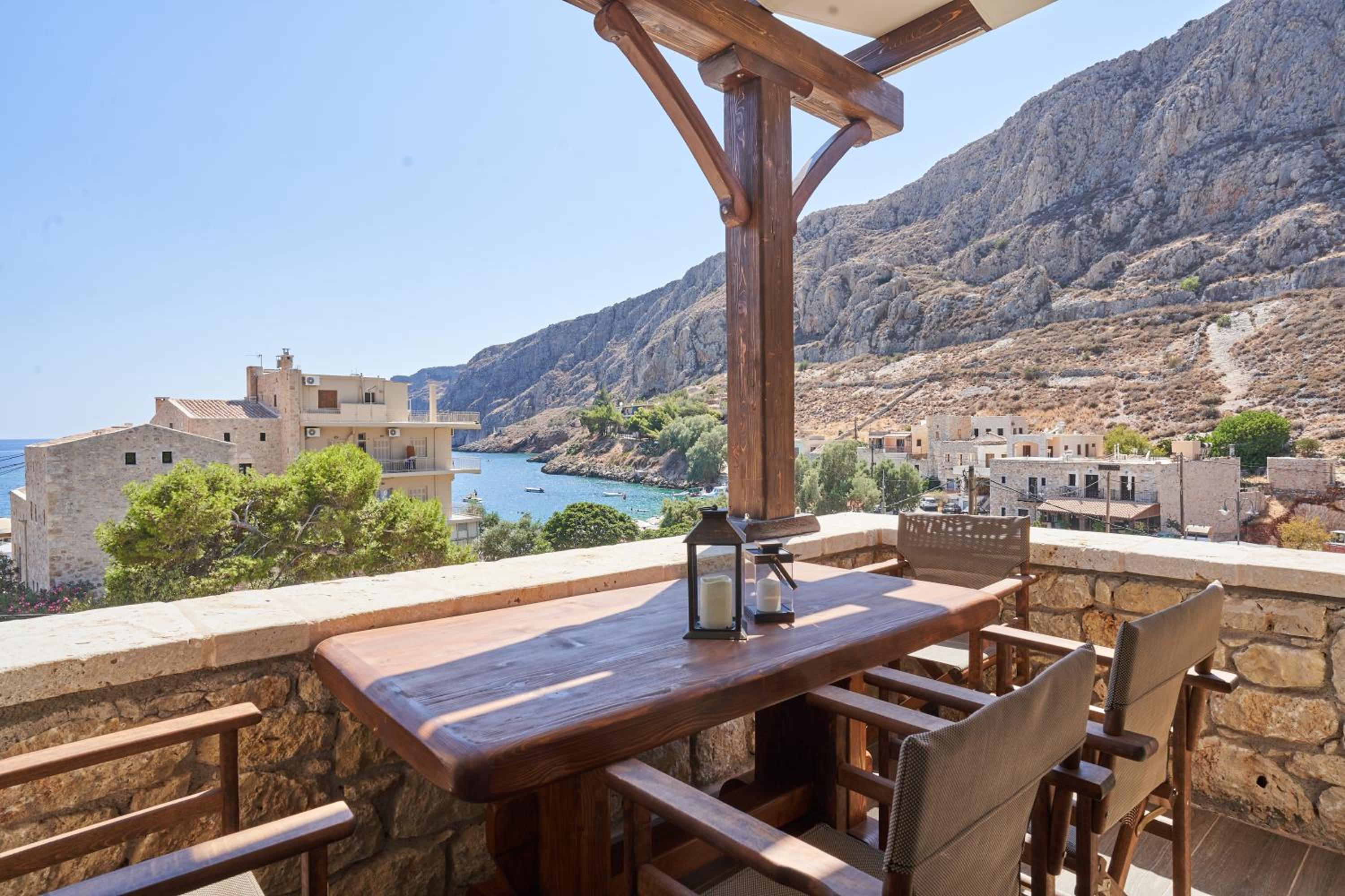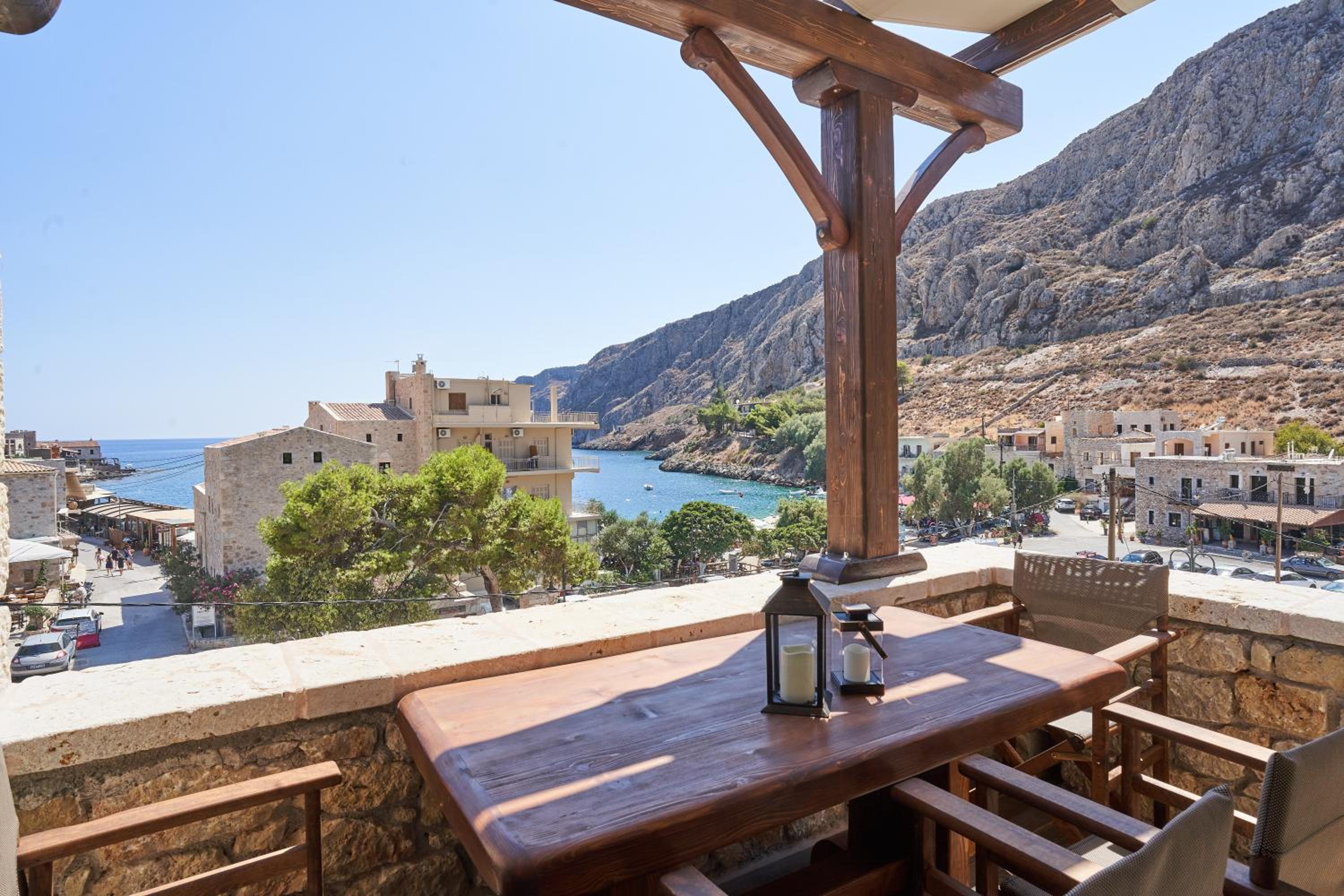 Fantastic location, well thought out amenities, beautiful veranda, gorgeous kitchen, right next to the Gerolimenas beach front.