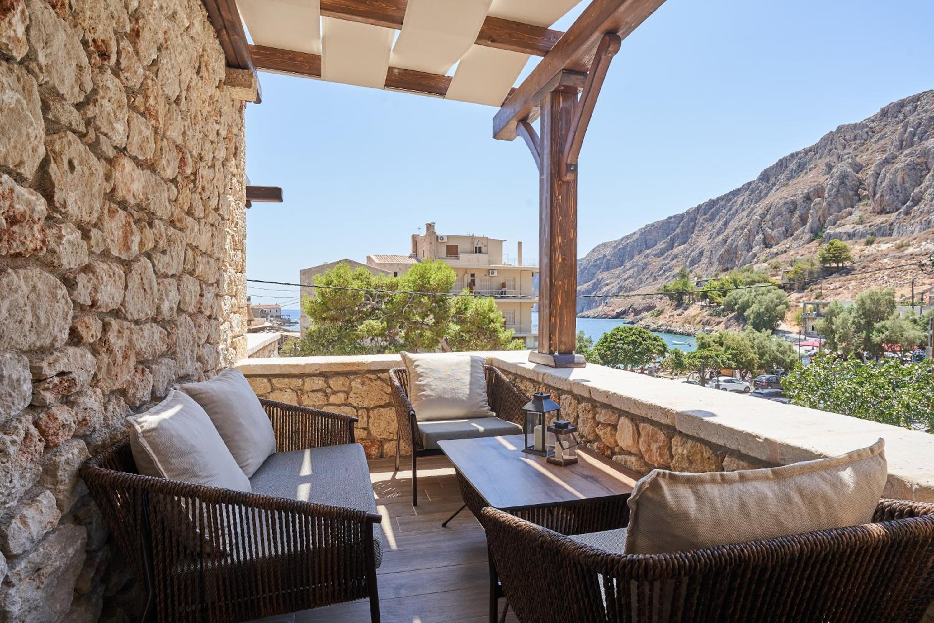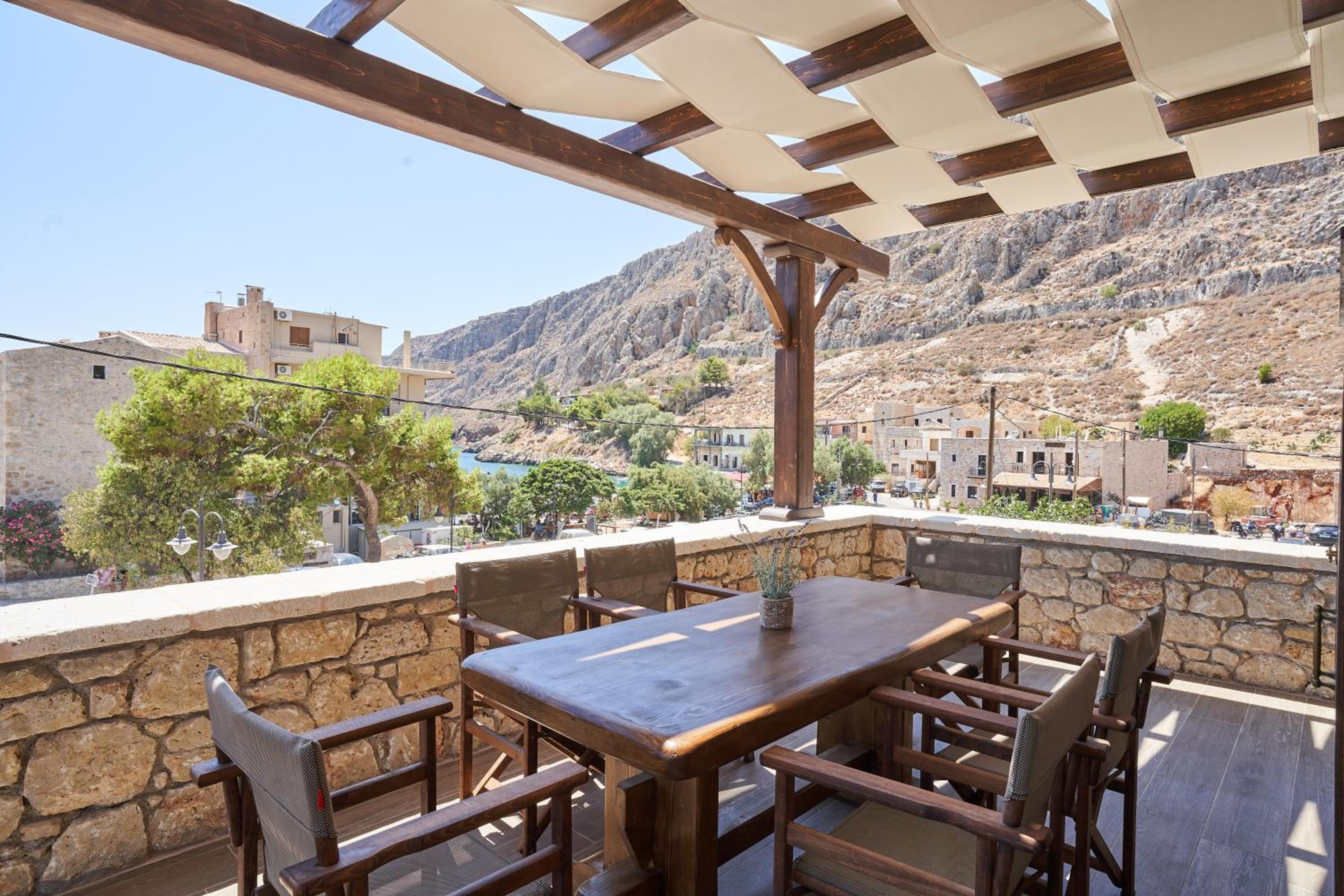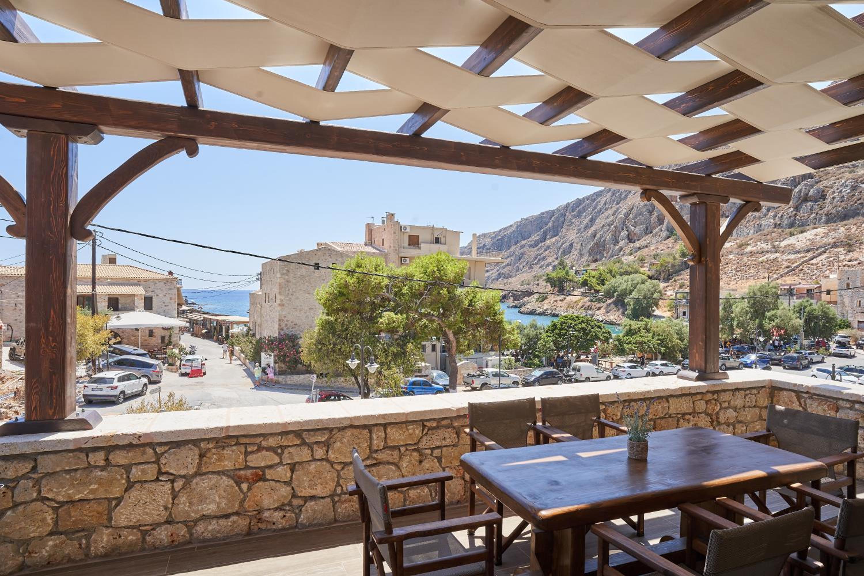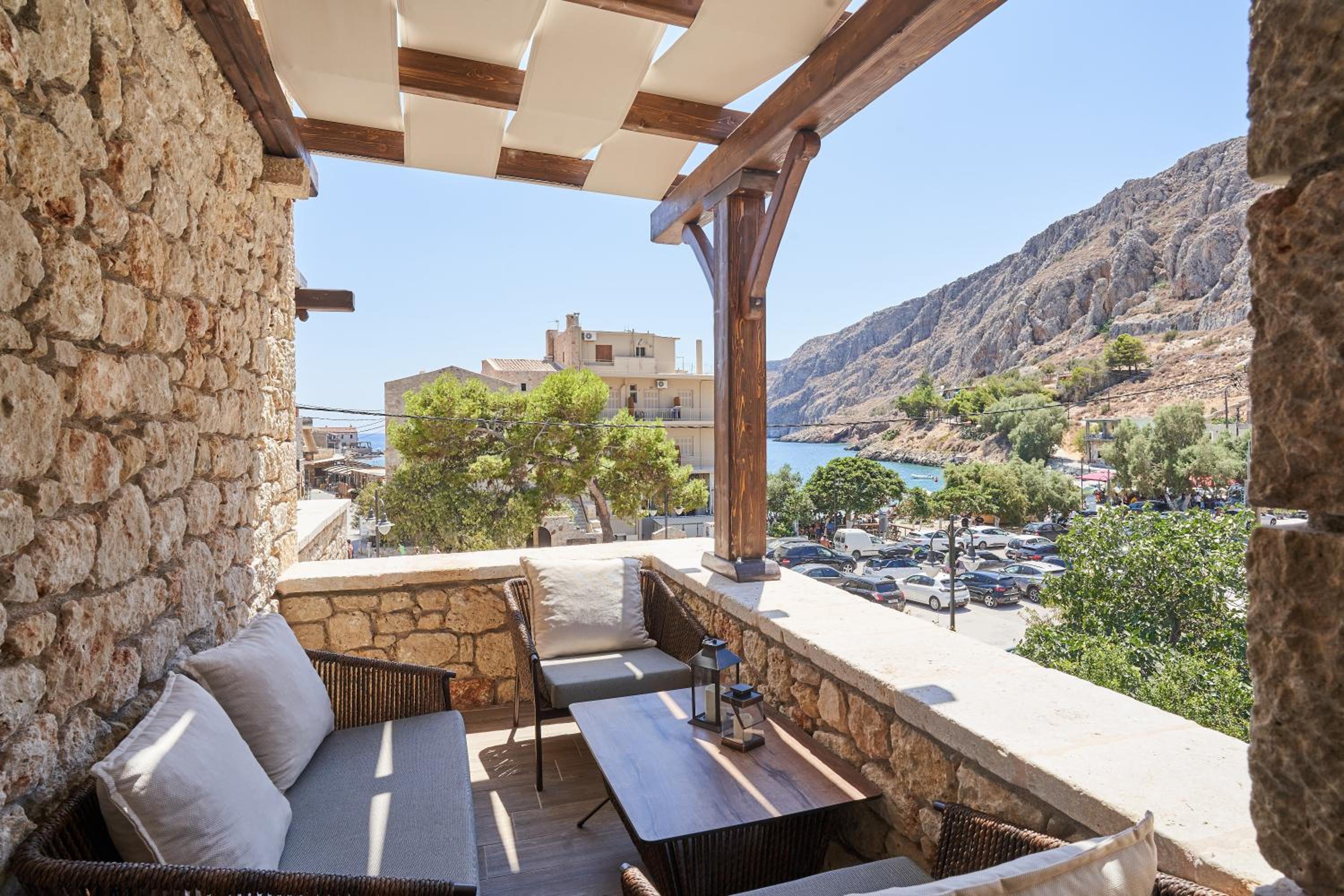 Fantastic location, well thought out amenities, beautiful veranda, gorgeous kitchen, right next to the Gerolimenas beach front.