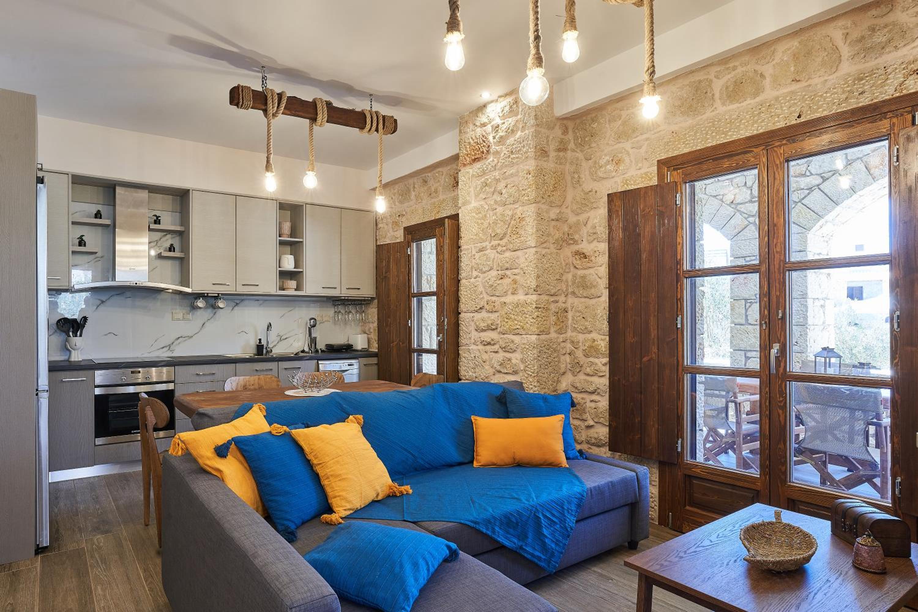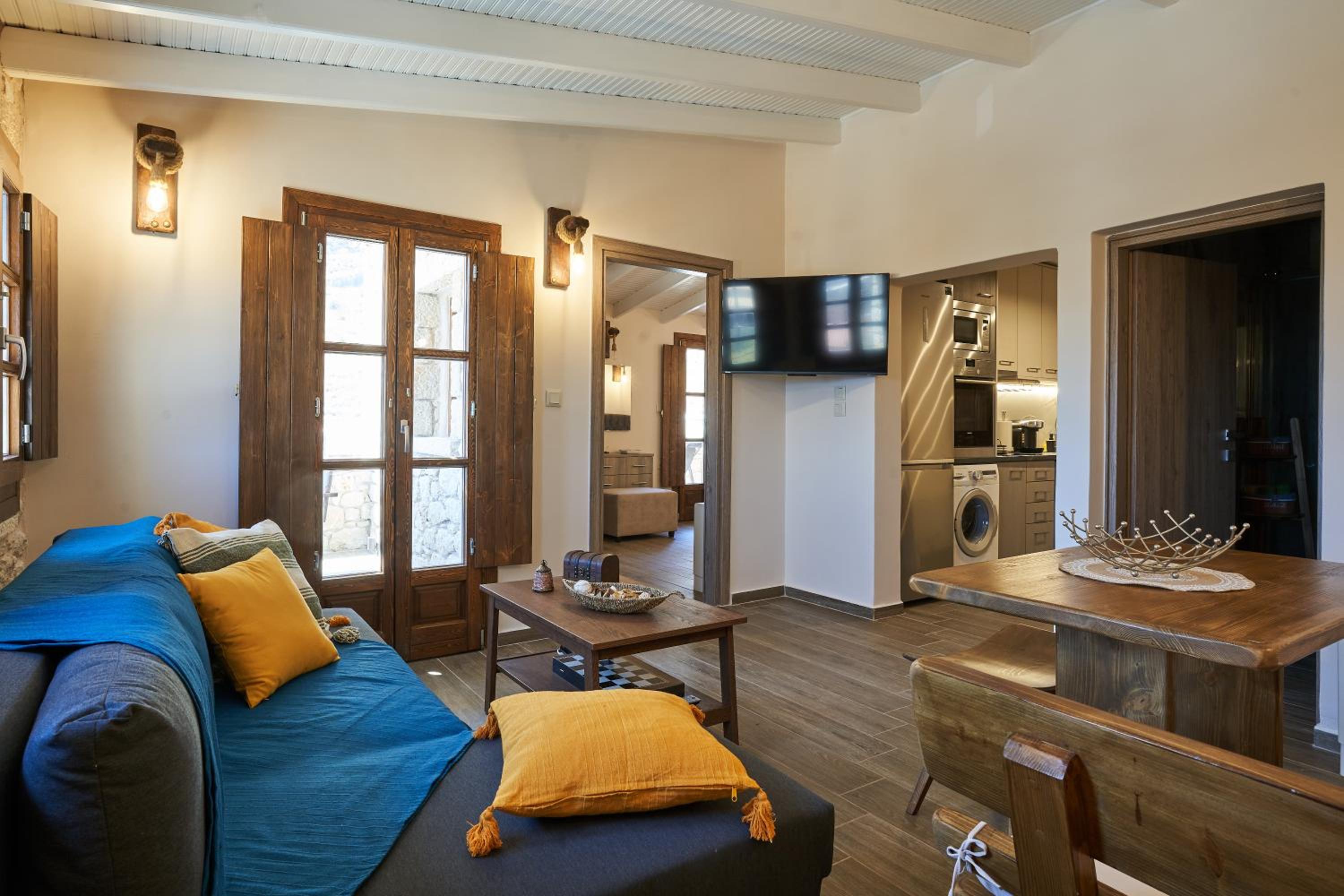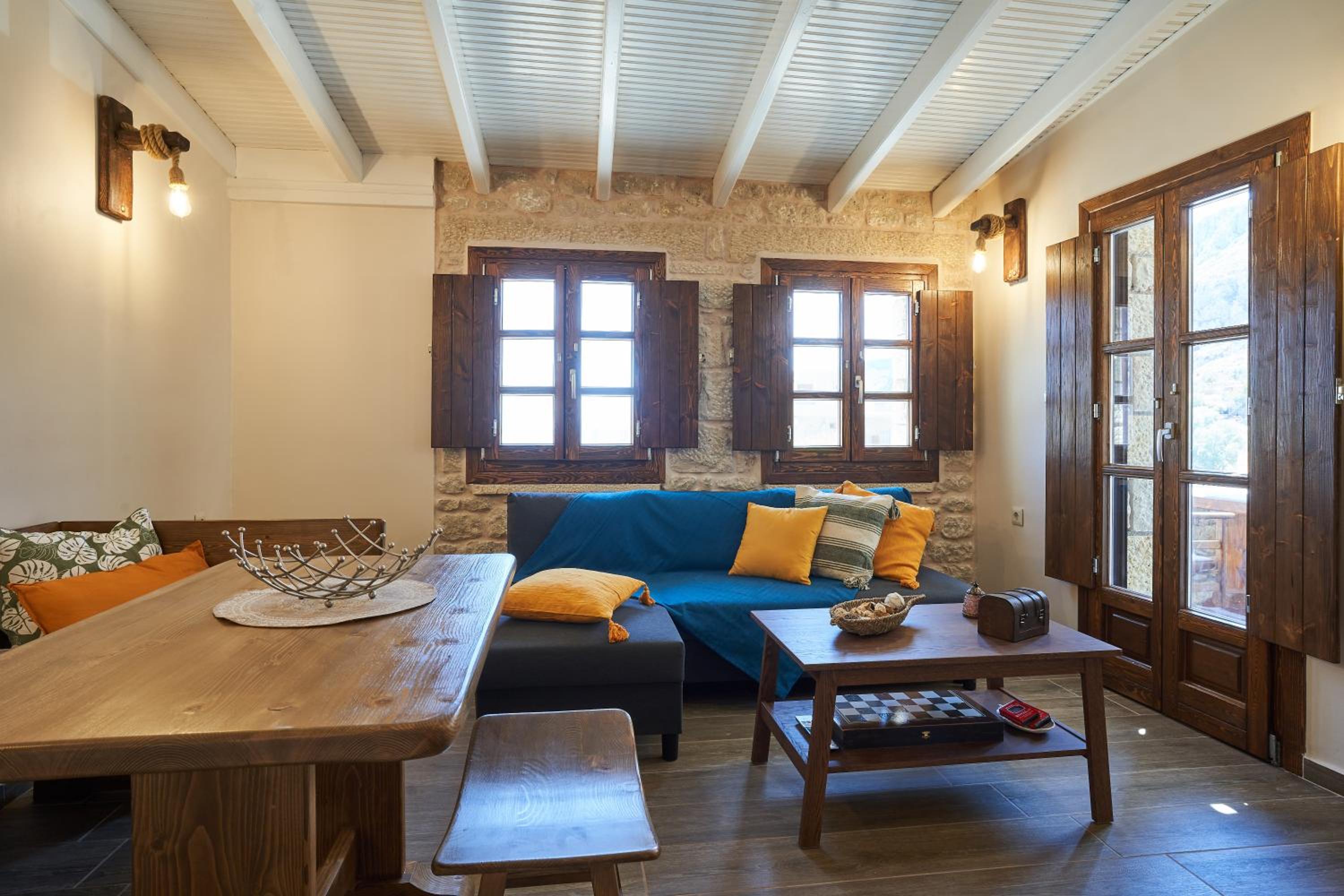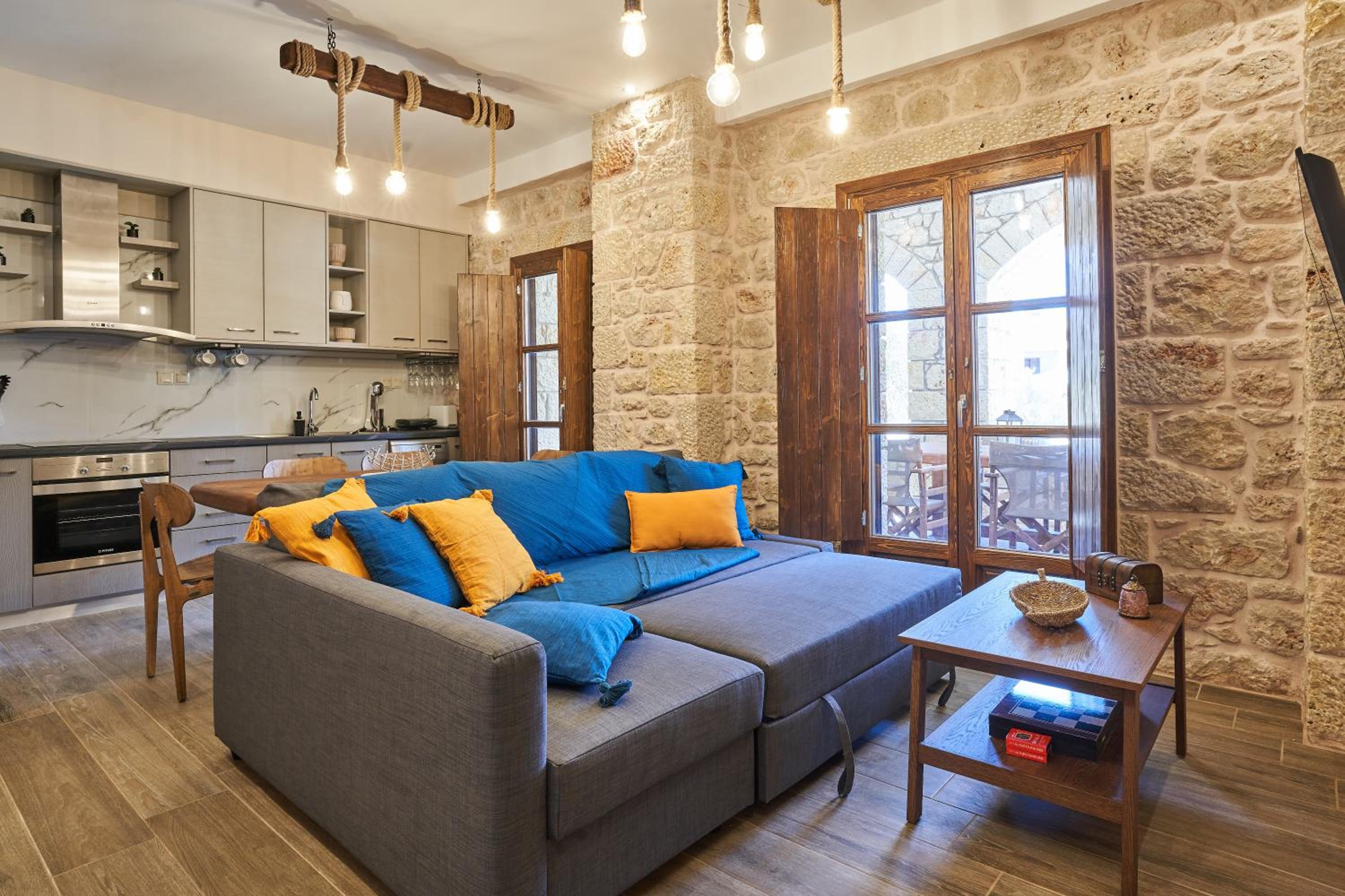 Fantastic location, well thought out amenities, beautiful veranda, gorgeous kitchen, right next to the Gerolimenas beach front.