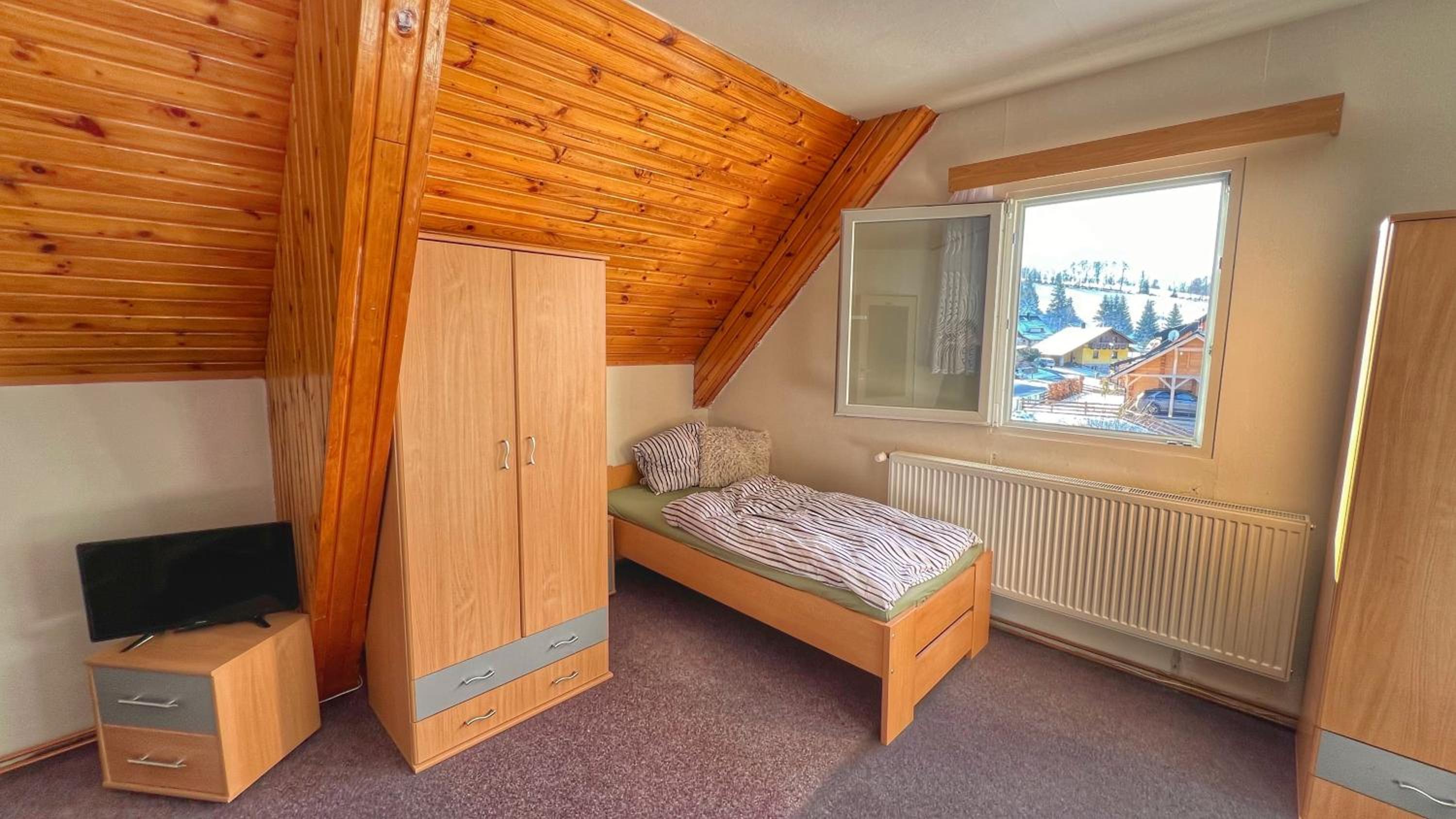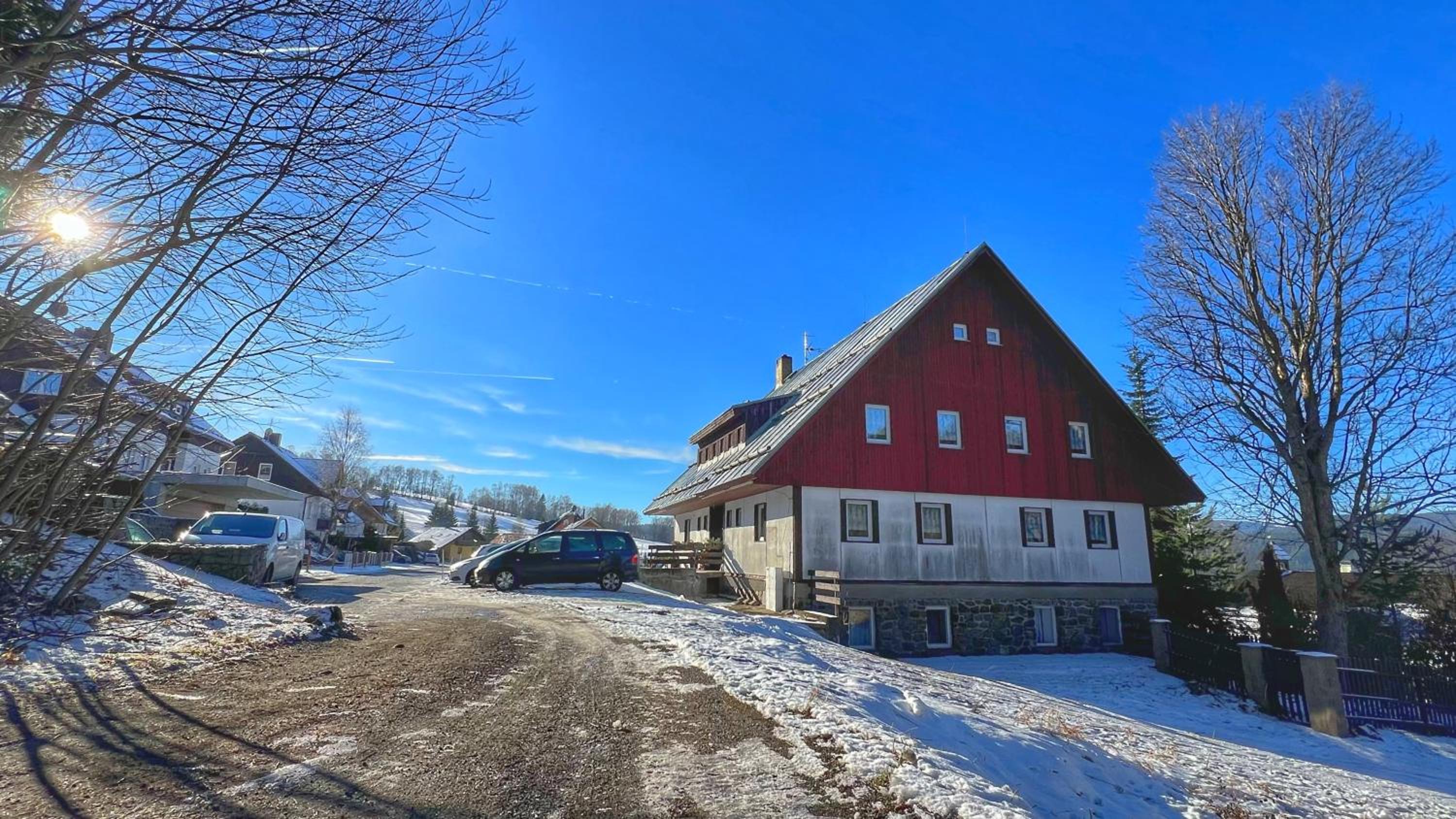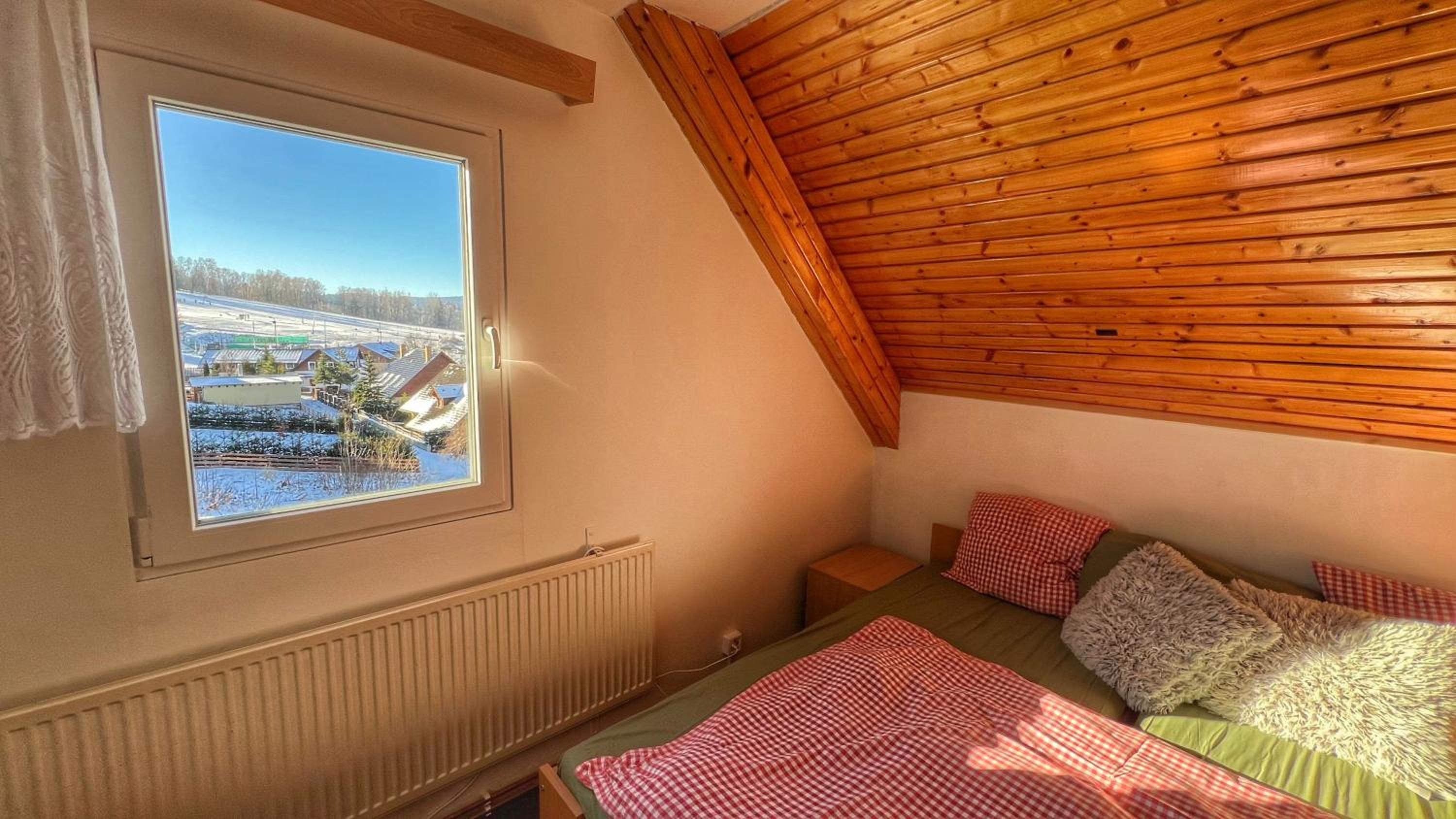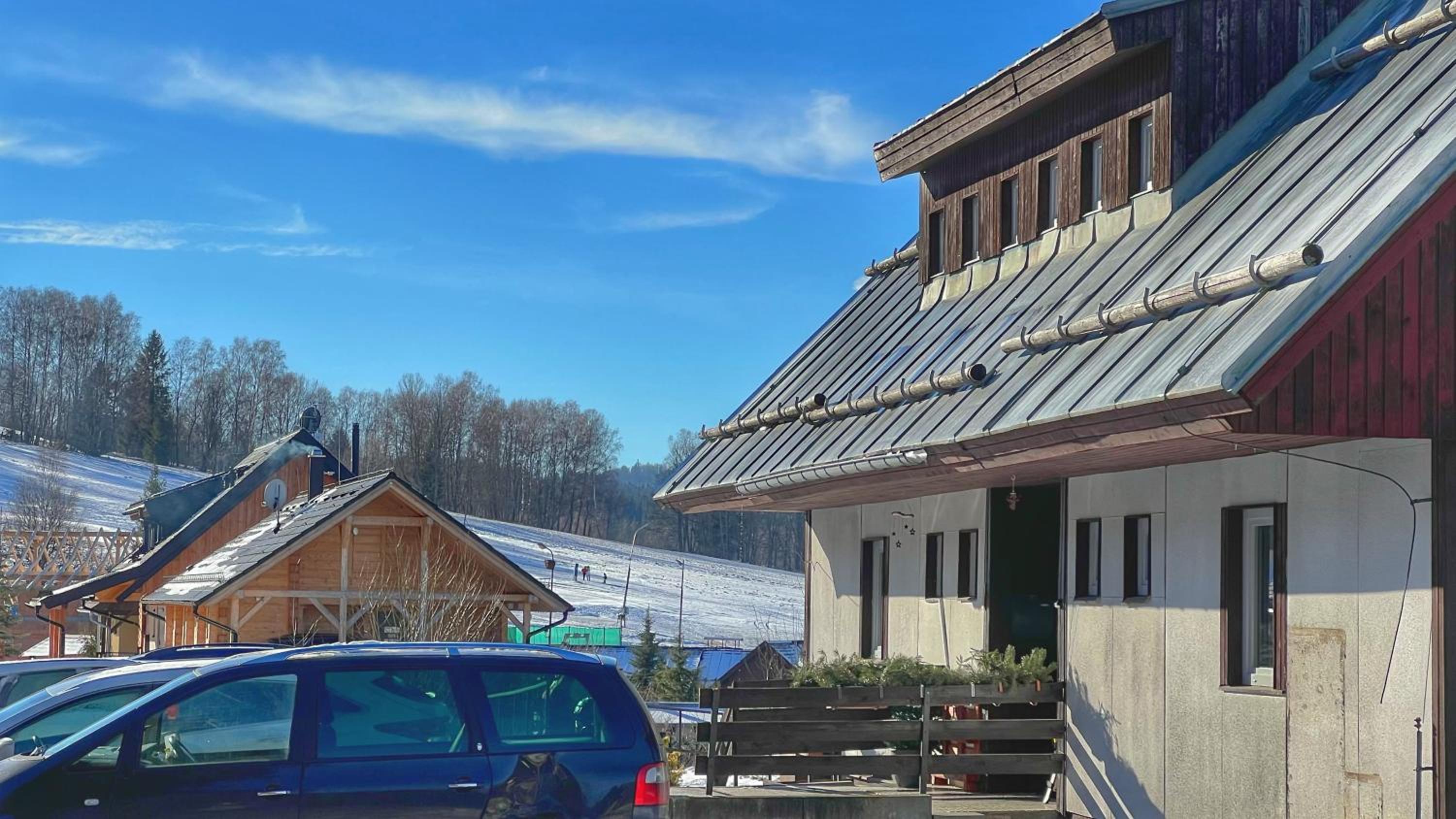 Chata družstva ZKD Sušice je na kopci v klidnější části Železné Rudy, ale jen kousek od centra. Parkování hned před chatou. Velice milá paní správcová, která se o chatu stará, jako by byla její vlastní. Čtyřlůžkový pokoj byl prostorný, nechyběla televize a 2 křesla, ale 1 volná zásuvka na dobíjení mobilu je v dnešní době opravdu málo (další byly v koupelně a kuchyňce). Malá kuchyňka byla vybavená veškerým potřebným nádobím, varnou deskou, rychlovarnou konvicí, mikrovlnkou a ledničkou. U jídelního stolu 4 židle, ale velikost stolu komfortní pro stolování 2 osob. V Železné Rudě je velké množství cukráren, kaváren, restaurací, menší obchody s potravinami otevřené do večera a krásné informační a návštěvnické centrum.