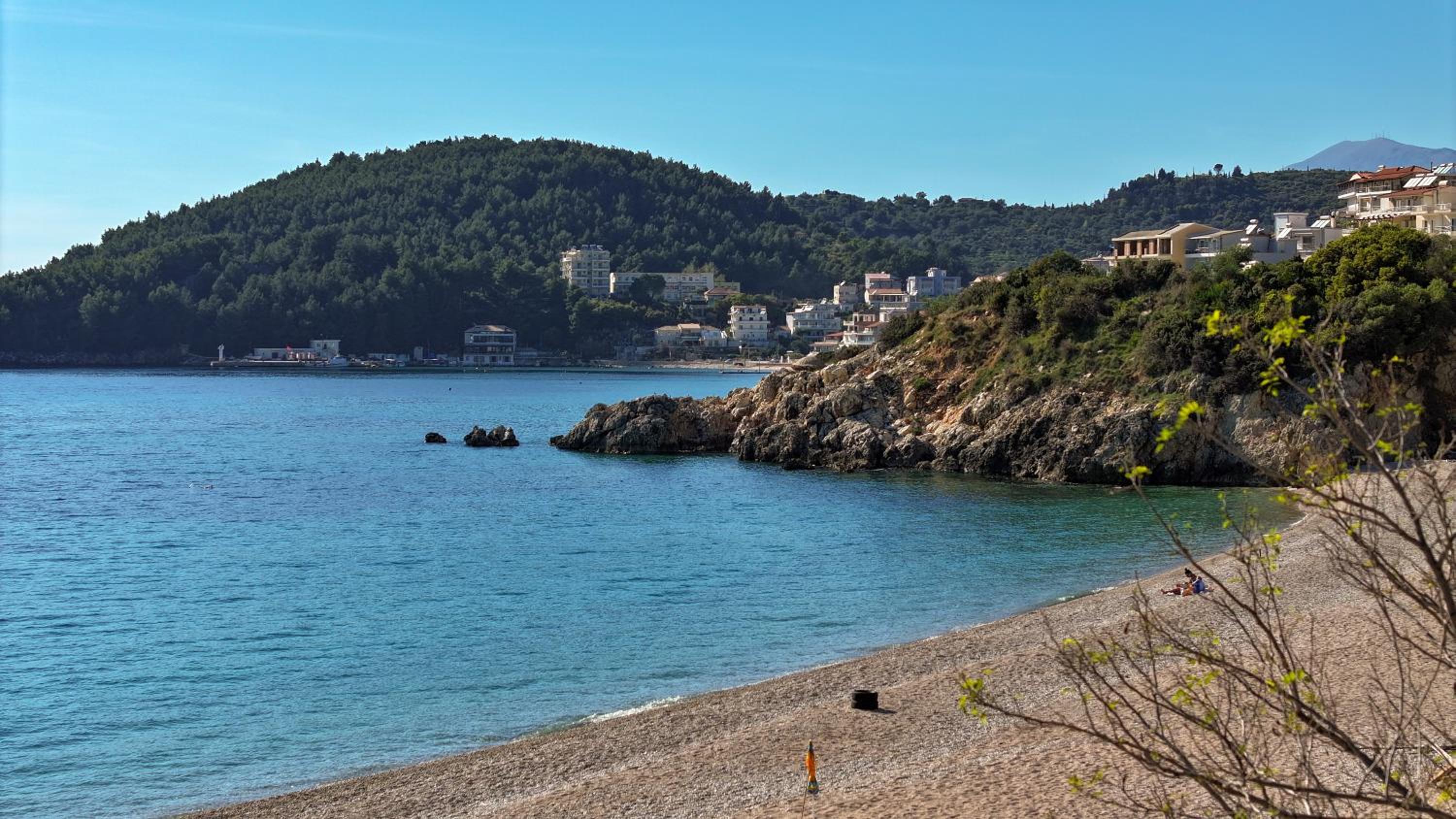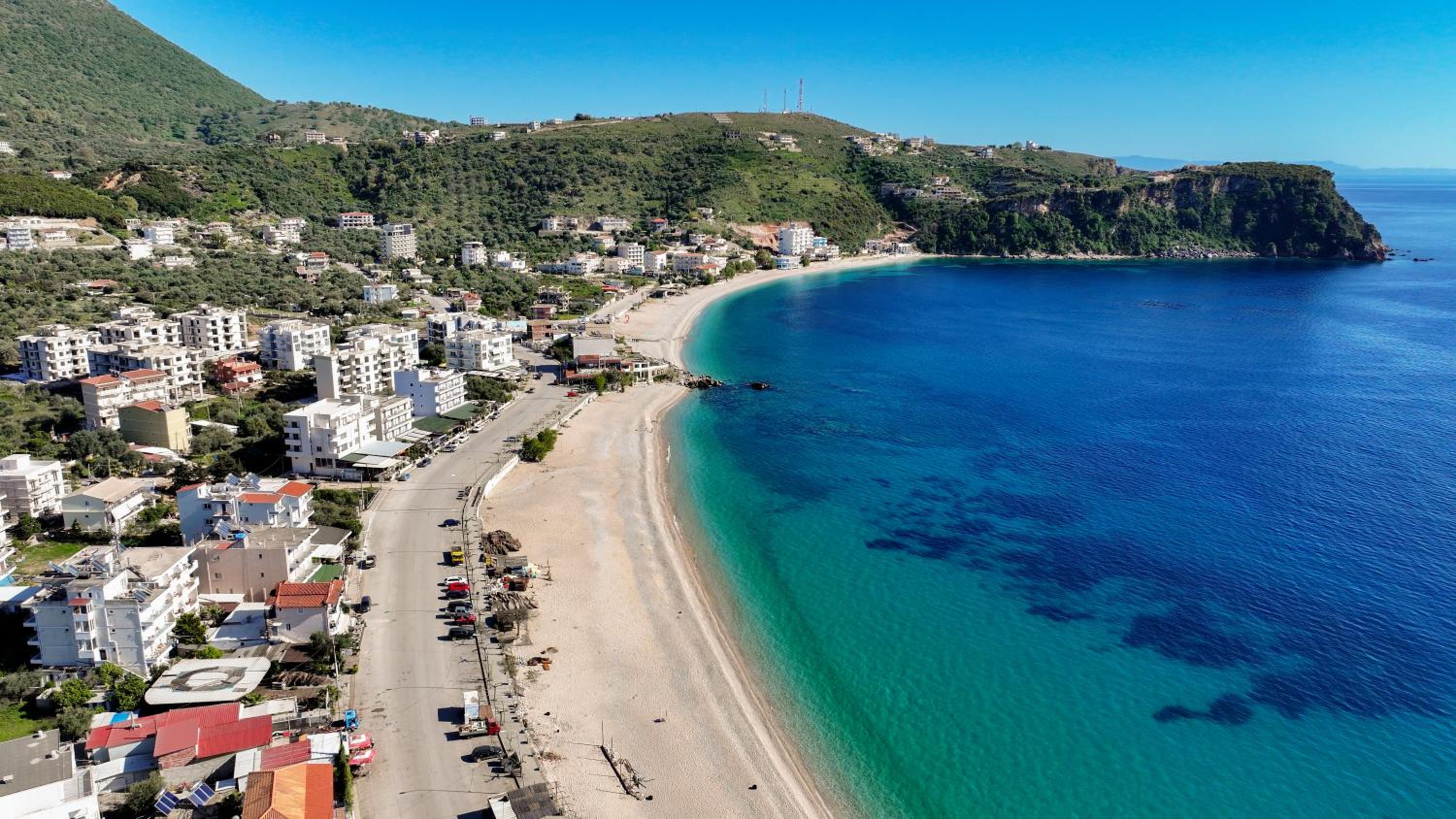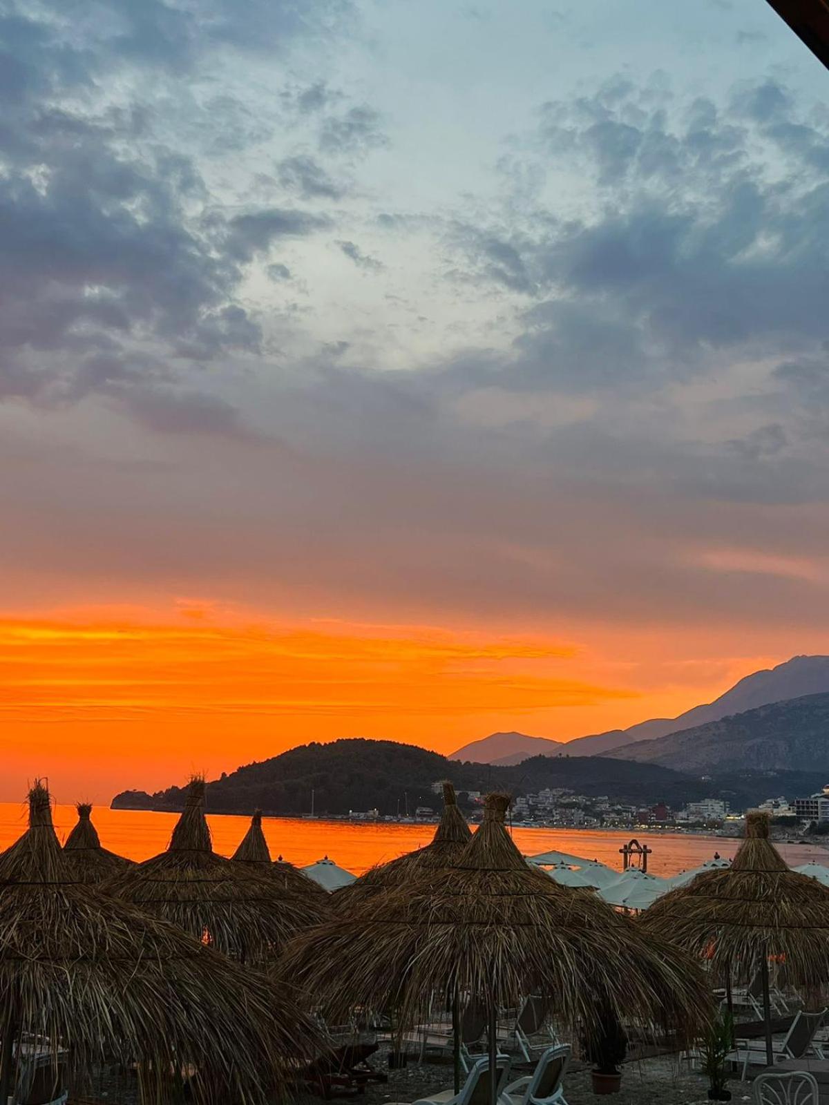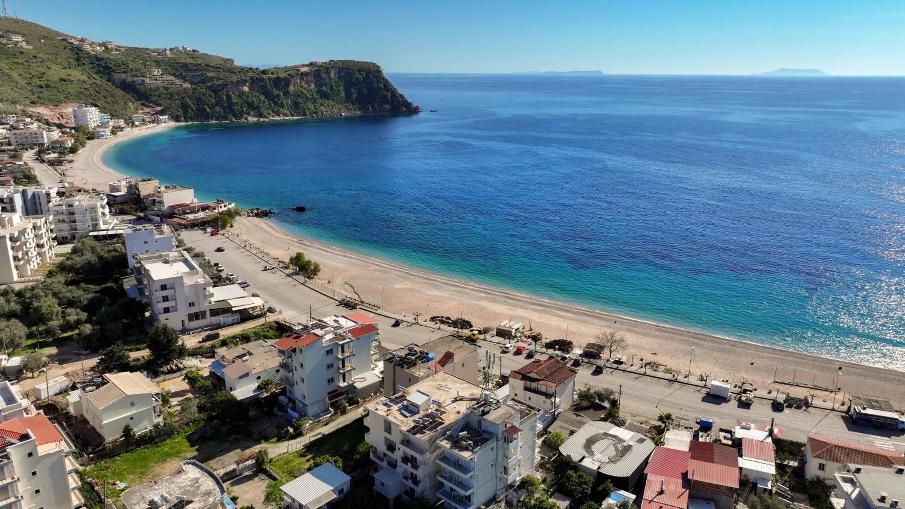 l’emplacement est bien car du côté d’himaré où la musique n’est pas à fond le soir, on a juste à traverser pour aller sur la plage ou l’on dispose de transat, il y a également une place de parking, la dame voulait que nous nous garions en partie sur la route! Nous avons refusé nous tenions à notre caution de location, avons eu la chance de trouver une place en face.