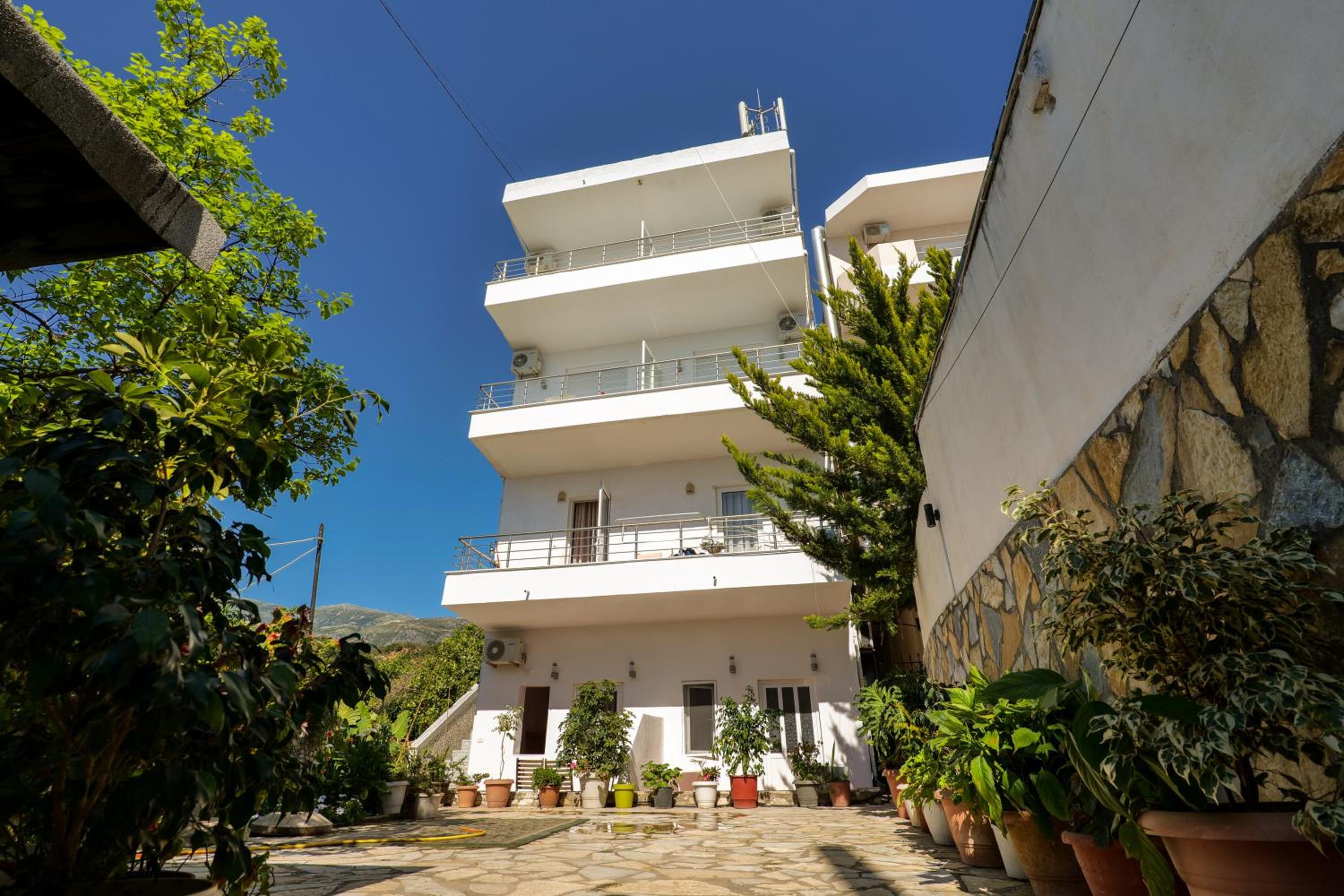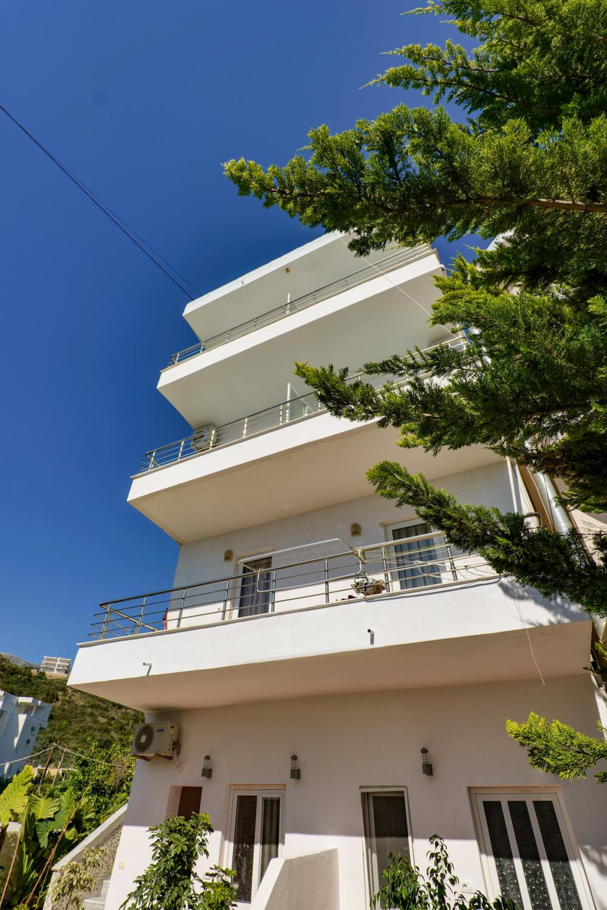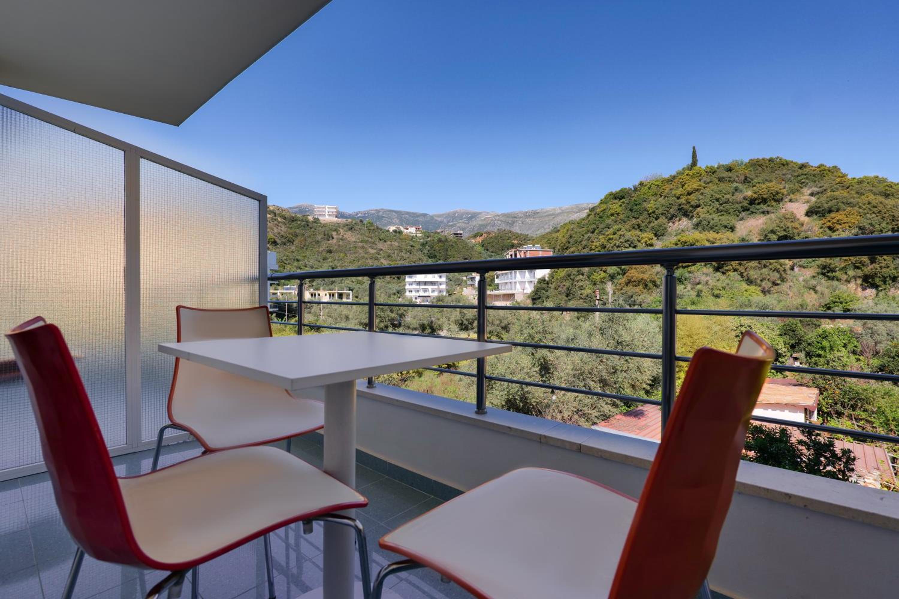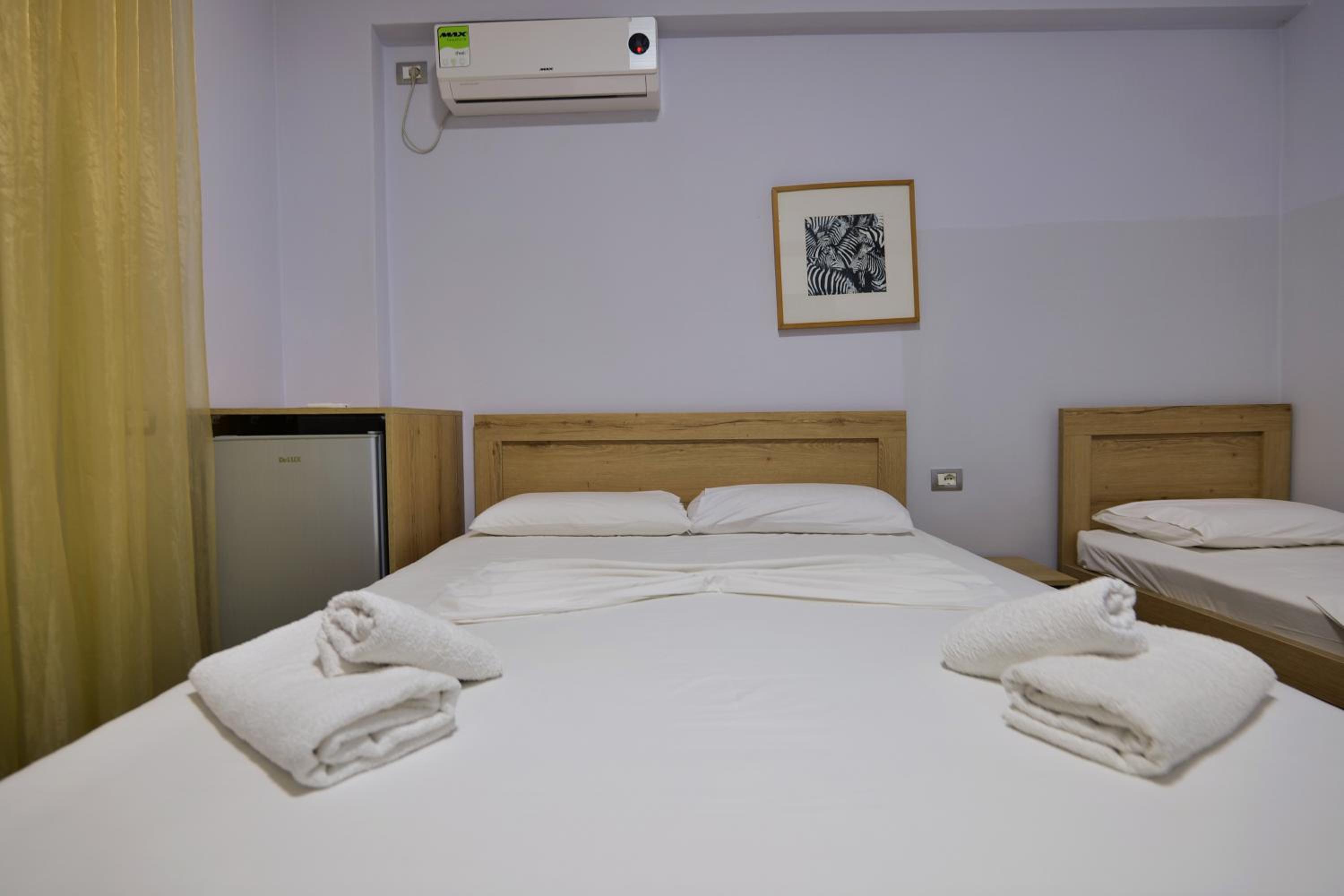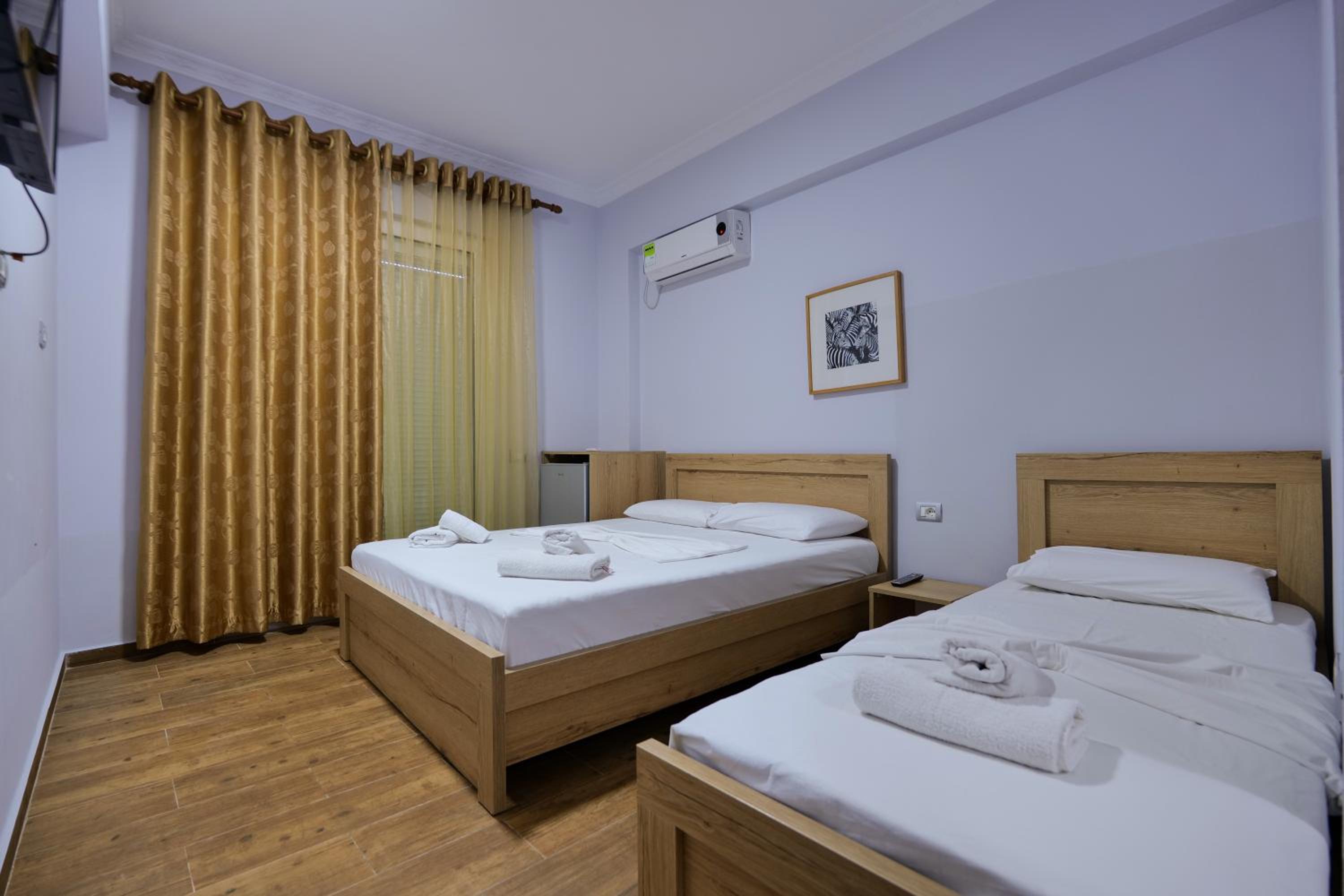 En ce qui concerne la chambre 100€/nuit c’est cher pour ce que c’est, nous étions côté montagne, certainement le fait d’être en bord de mer, car pour 10€ de plus à Berat nous avions une chambre qui faisait le double ultra propre et moderne avec un petit déjeuner gargantuesque, ici pas de petit déjeuner, la tv ne fonctionne pas, la chambre était propre sauf la salle de bain où il restait des traces de savons dans l’emplacement des savons, encore beaucoup de cheveux et poils dans la douche (il n’y a d’ailleurs pas de douchette c’est un pommeau en hauteur qui ne bouge, pas impossible de ce laver les cheveux long car peu de pression) un coup chaud froid fillet d’eau.