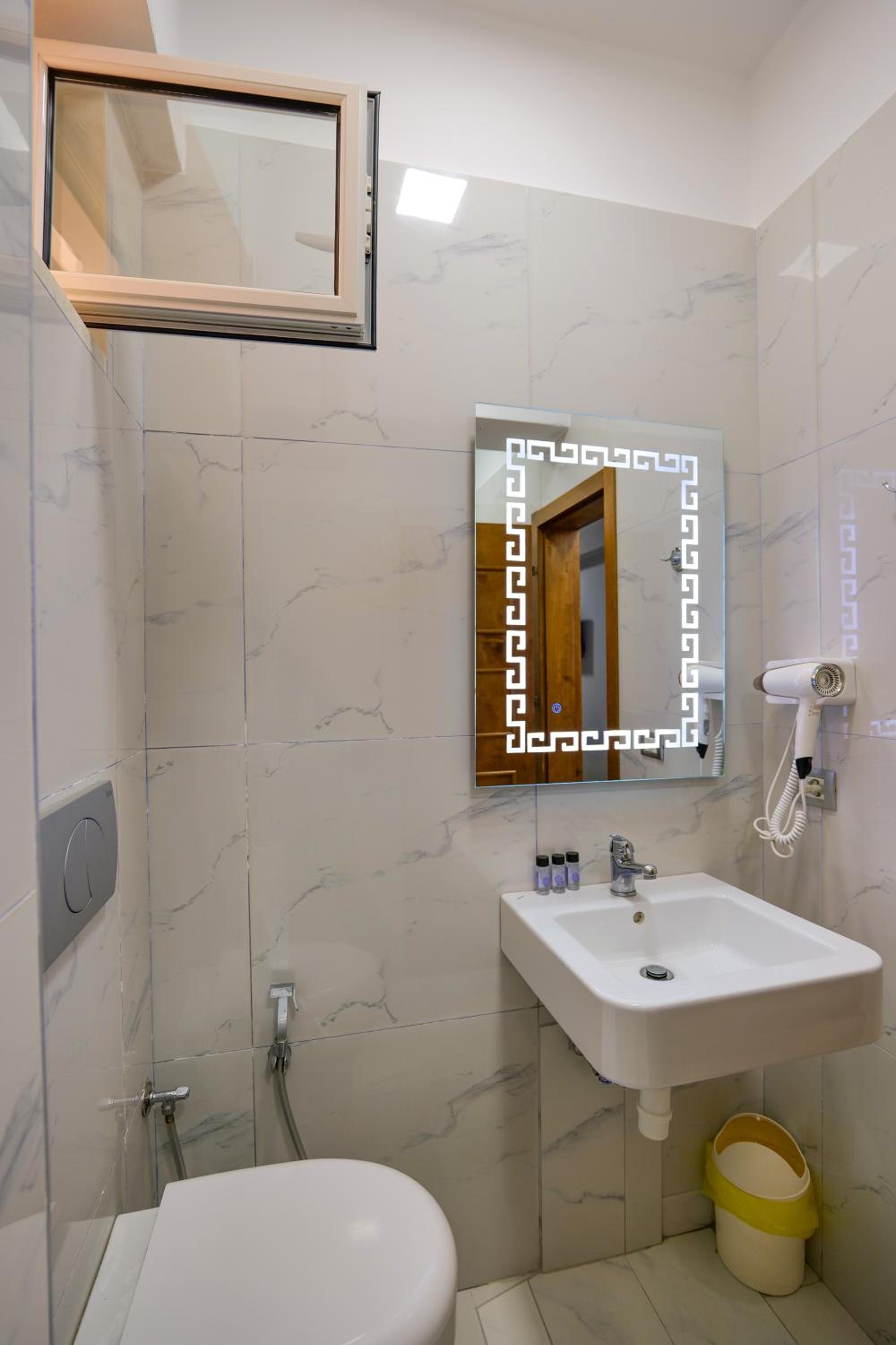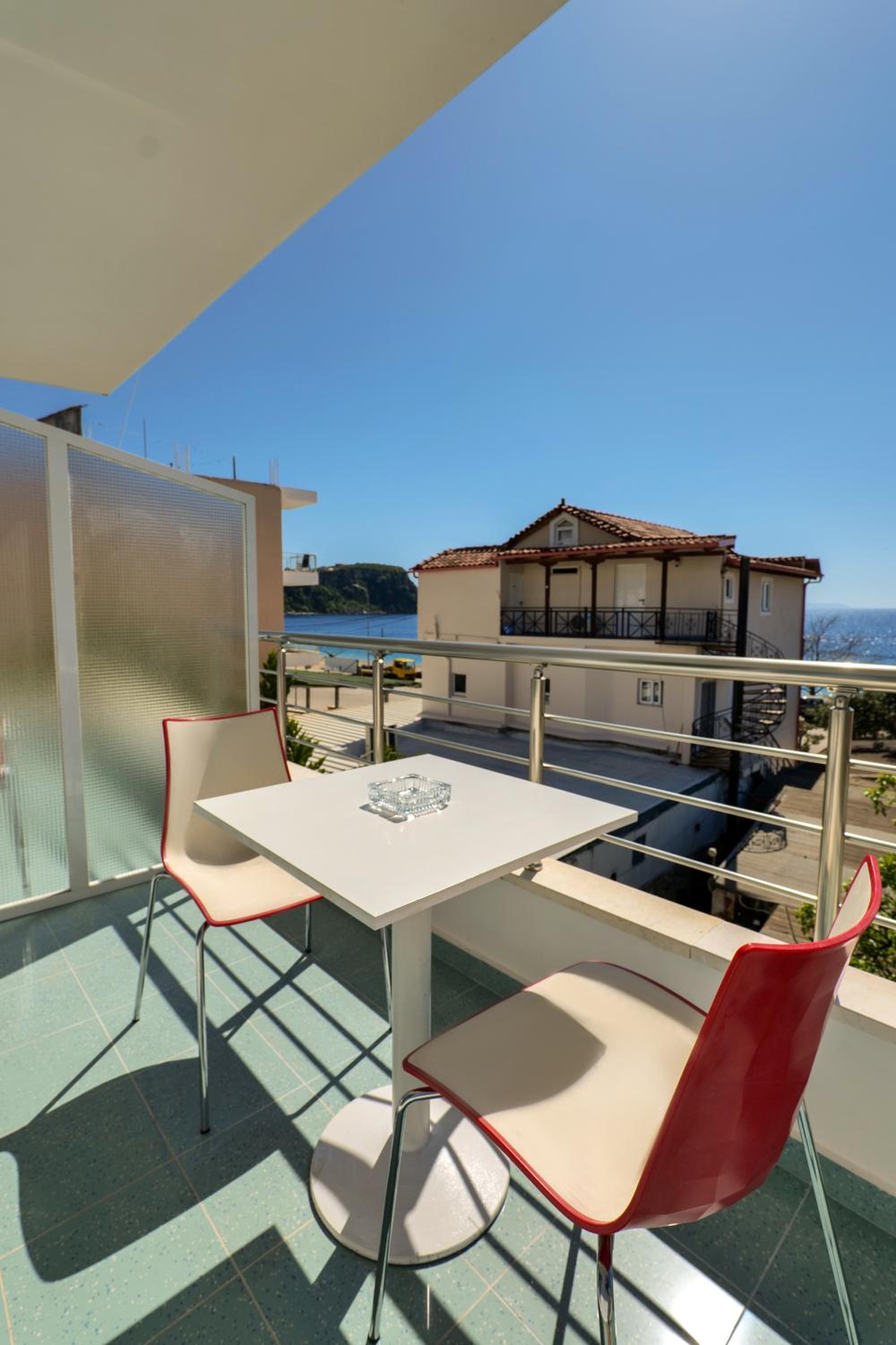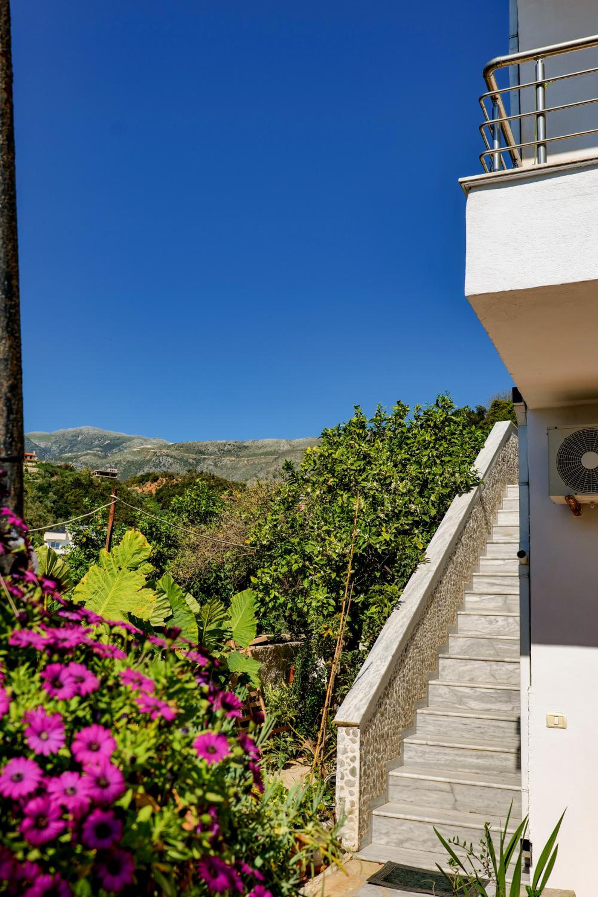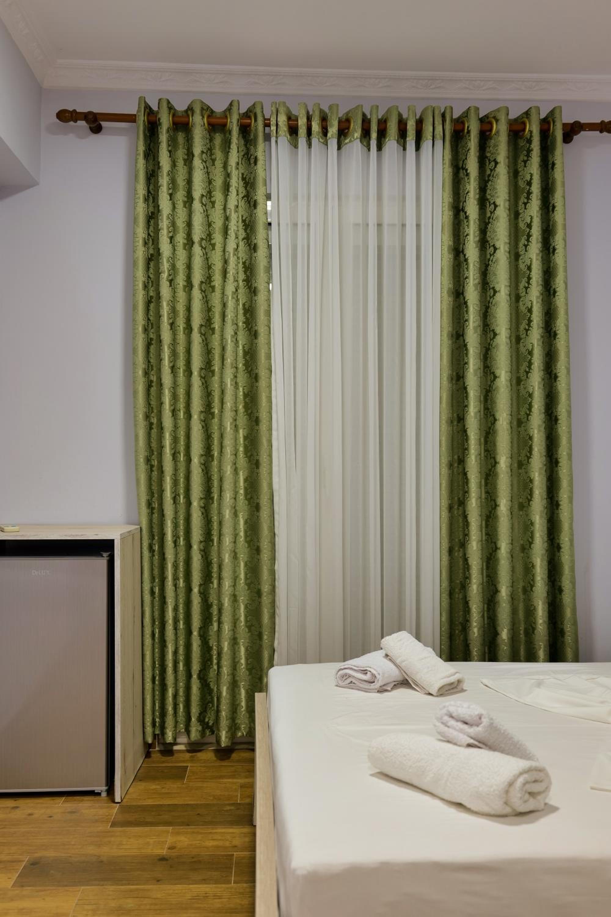 En ce qui concerne la chambre 100€/nuit c’est cher pour ce que c’est, nous étions côté montagne, certainement le fait d’être en bord de mer, car pour 10€ de plus à Berat nous avions une chambre qui faisait le double ultra propre et moderne avec un petit déjeuner gargantuesque, ici pas de petit déjeuner, la tv ne fonctionne pas, la chambre était propre sauf la salle de bain où il restait des traces de savons dans l’emplacement des savons, encore beaucoup de cheveux et poils dans la douche (il n’y a d’ailleurs pas de douchette c’est un pommeau en hauteur qui ne bouge, pas impossible de ce laver les cheveux long car peu de pression) un coup chaud froid fillet d’eau.