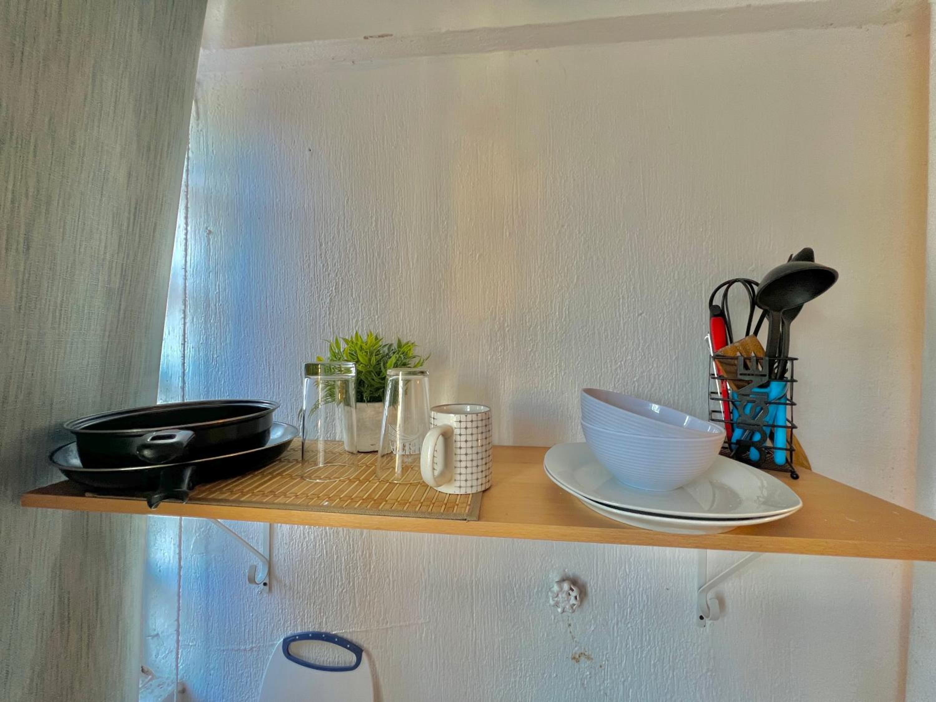 No es que no me haya gustado hace falta dos vasos dos tazas tenedor servidora dos platos básicamente tuve la mala suerte de pasar a comprar al supermercado y poder cocinar algo y la estufa mala creo que vale la pena seguir reservando allí es muy cómodo habitación 11