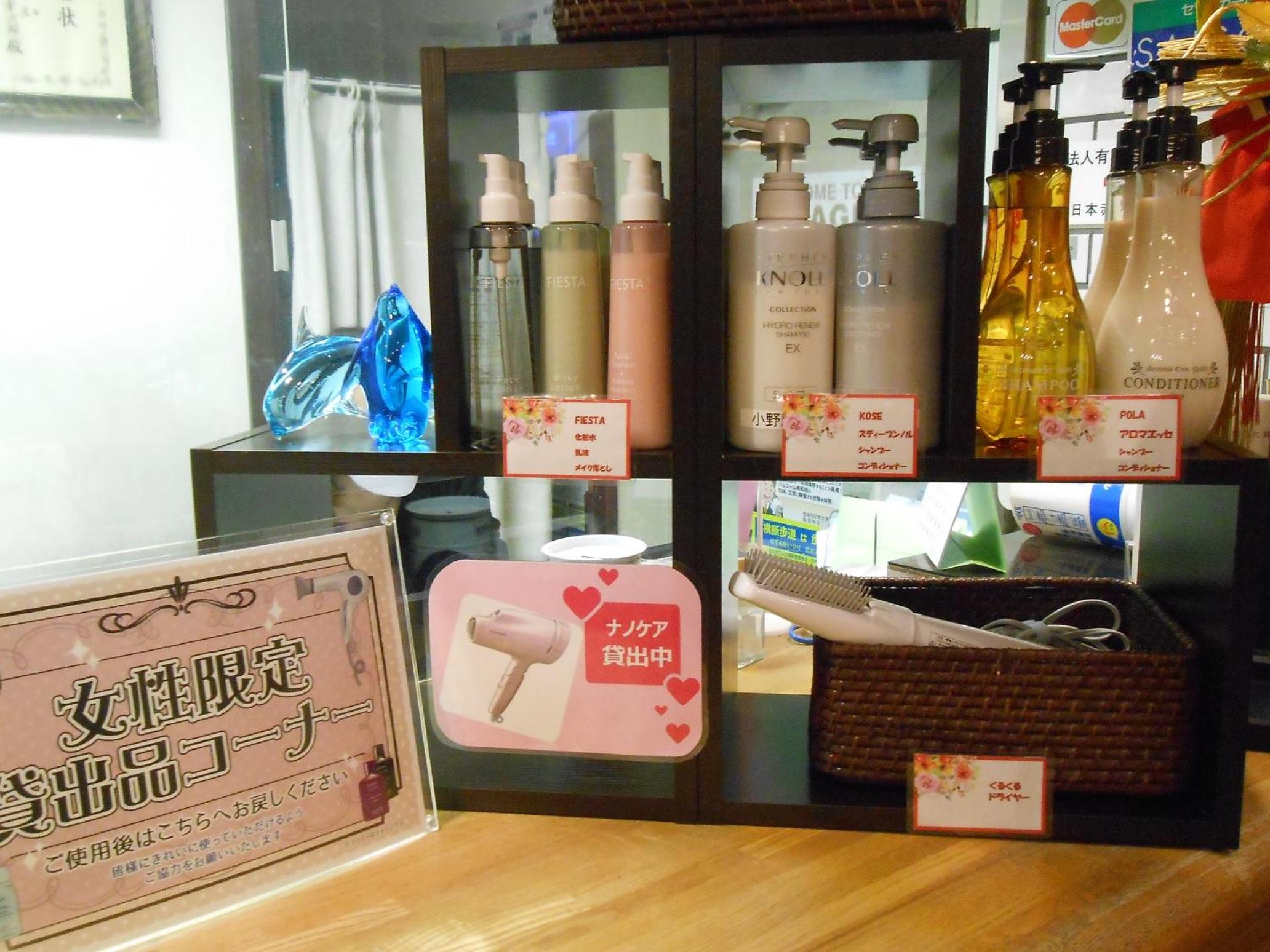 女性用にシャンプーや化粧水等の貸し出しや、無料のコーヒーサービス、漫画本もたくさんあり、時間が足りないくらいでした。