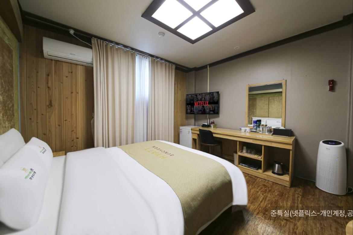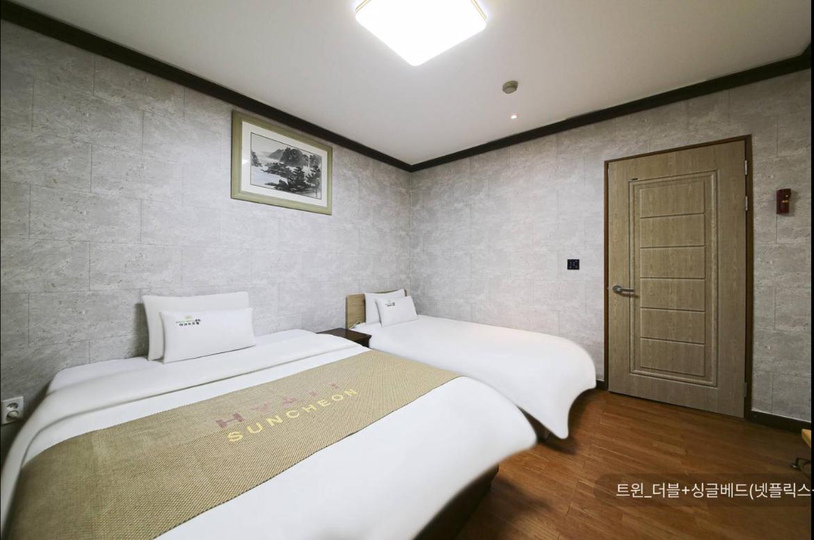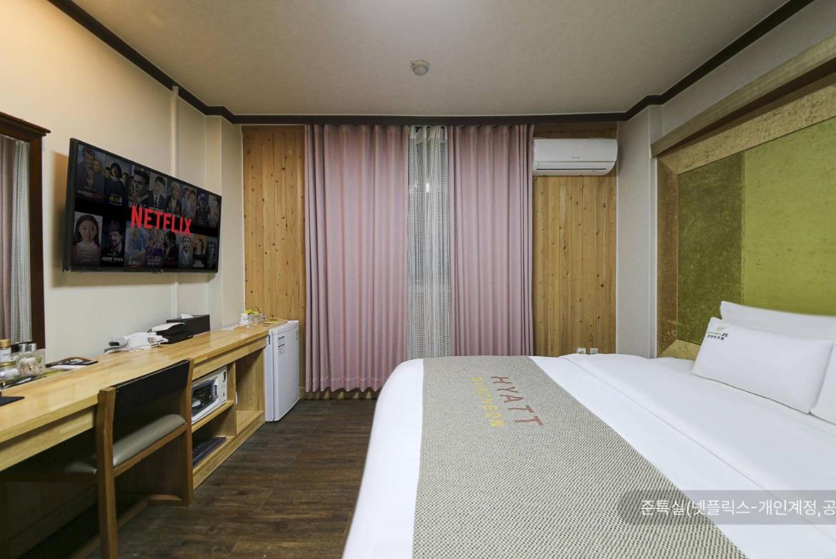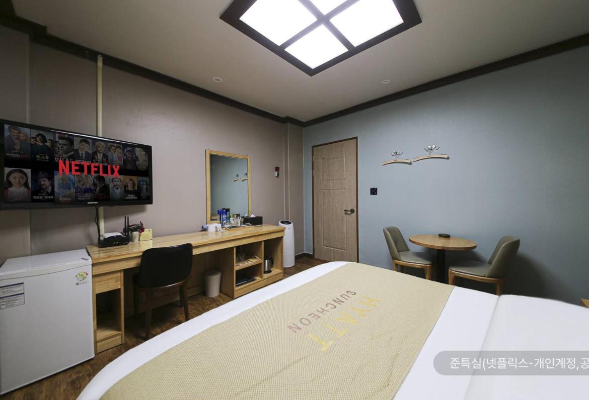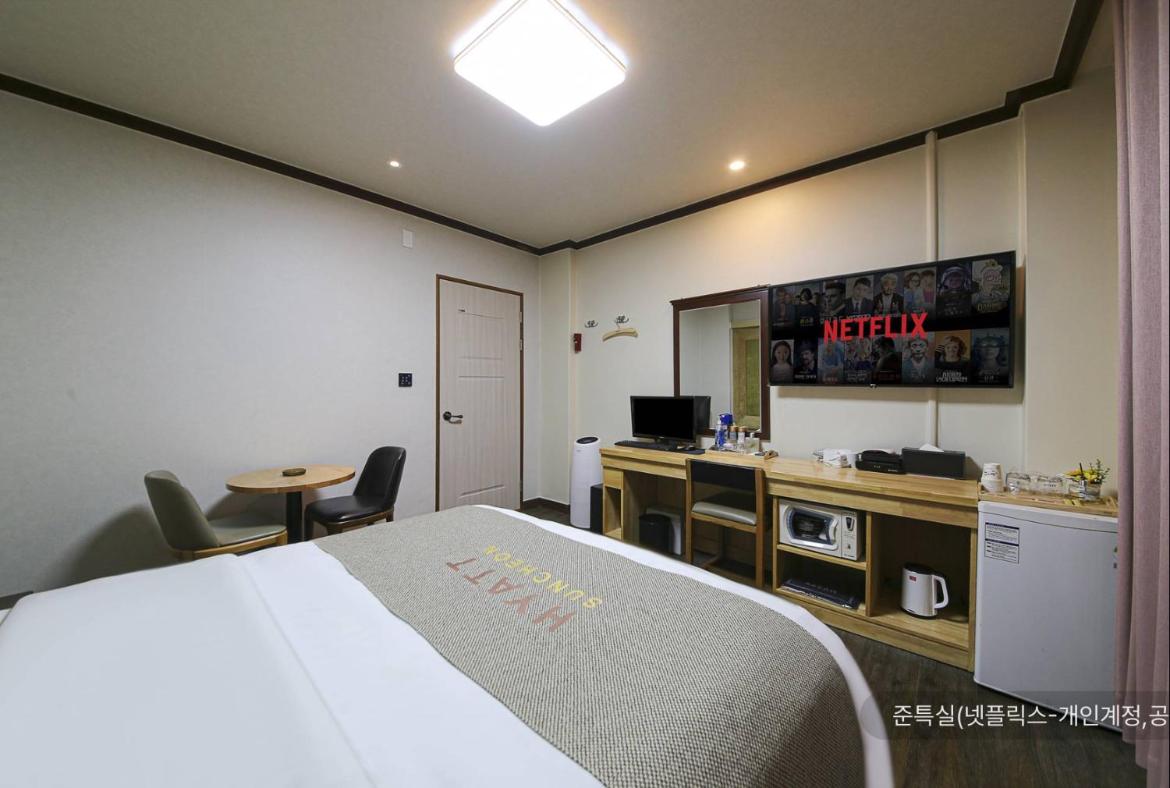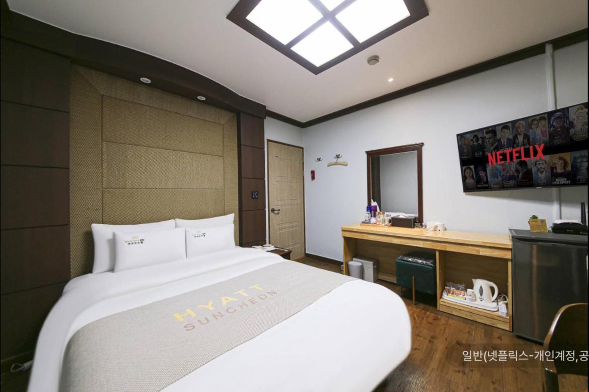 Reasonable price, room was standard but with everything one needs, fridge, kettle, cosmetics, bathroom, working WiFi. Spacious and easily accessible parking. In short, convenient base to visit Suncheon and its surroundings. Not in the city center, more suitable for people travelling by car.