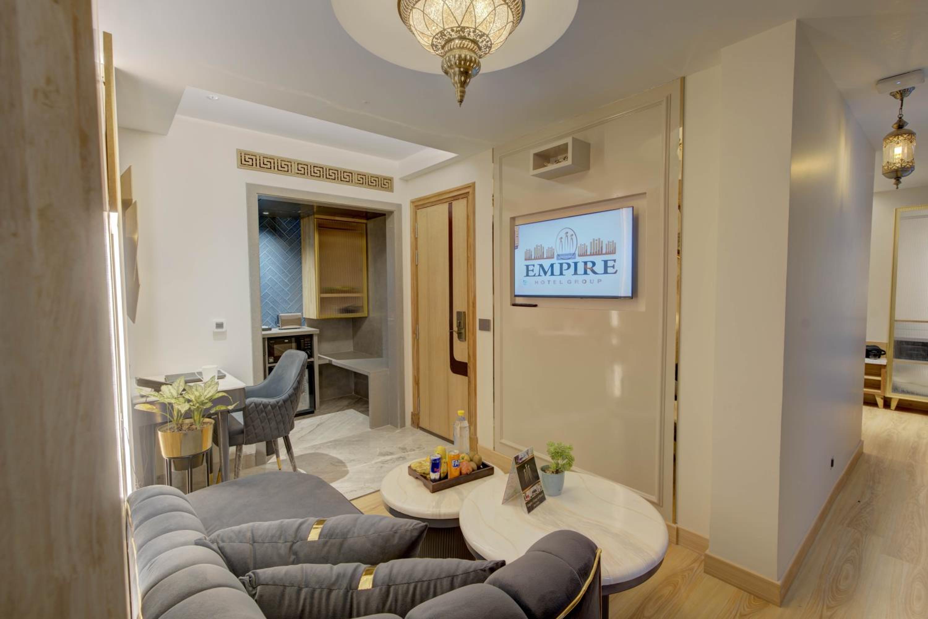 EMPIRE PLATINUM SUITES offers air-conditioned rooms with modern amenities like a coffee machine, microwave, and flat-screen TV. Guests can also enjoy a private bathroom and patio in each room.