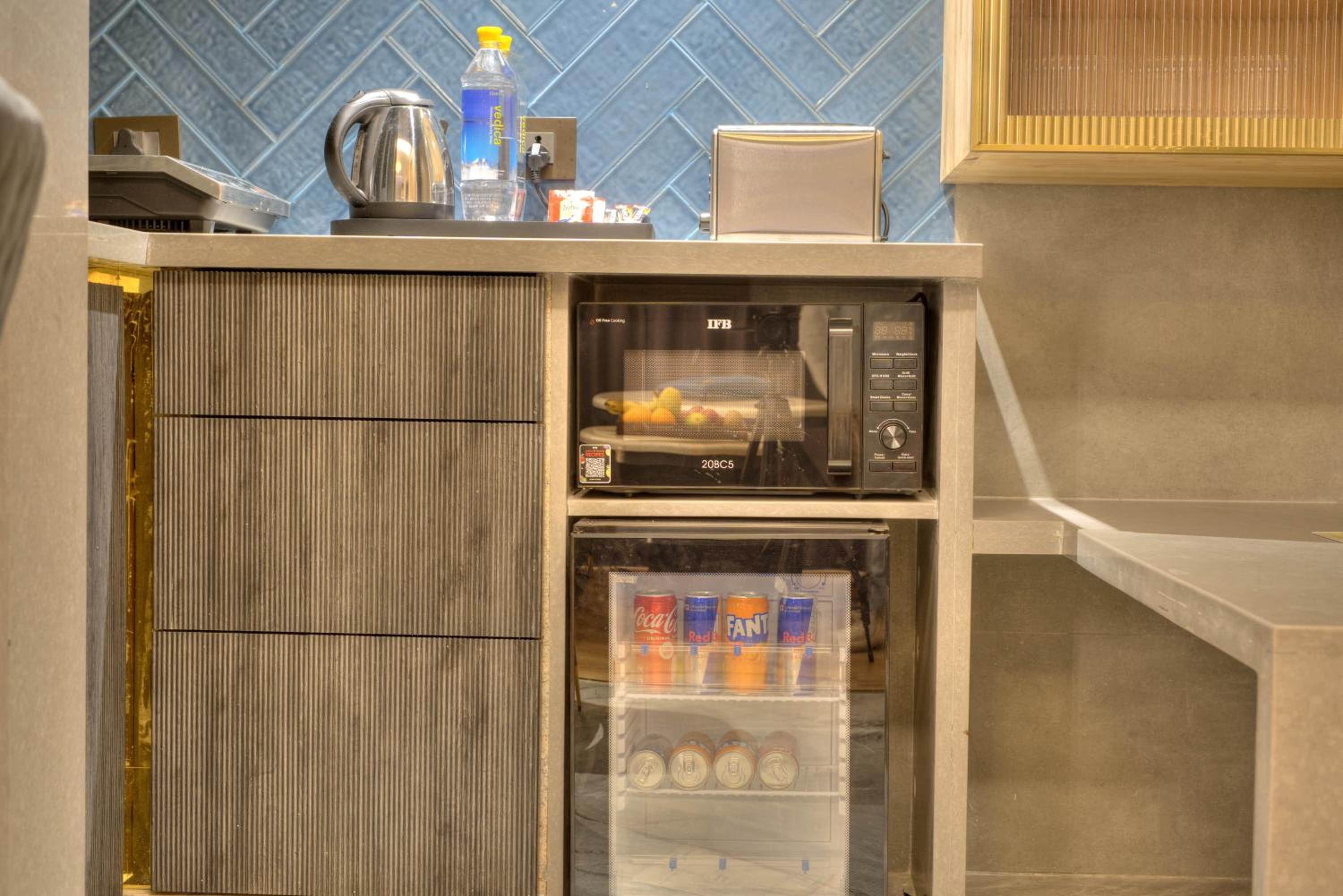 Additional fan, Fridge , oven , coffee maker , tv’s in both rooms & excellent thing is even plates , cups were provided