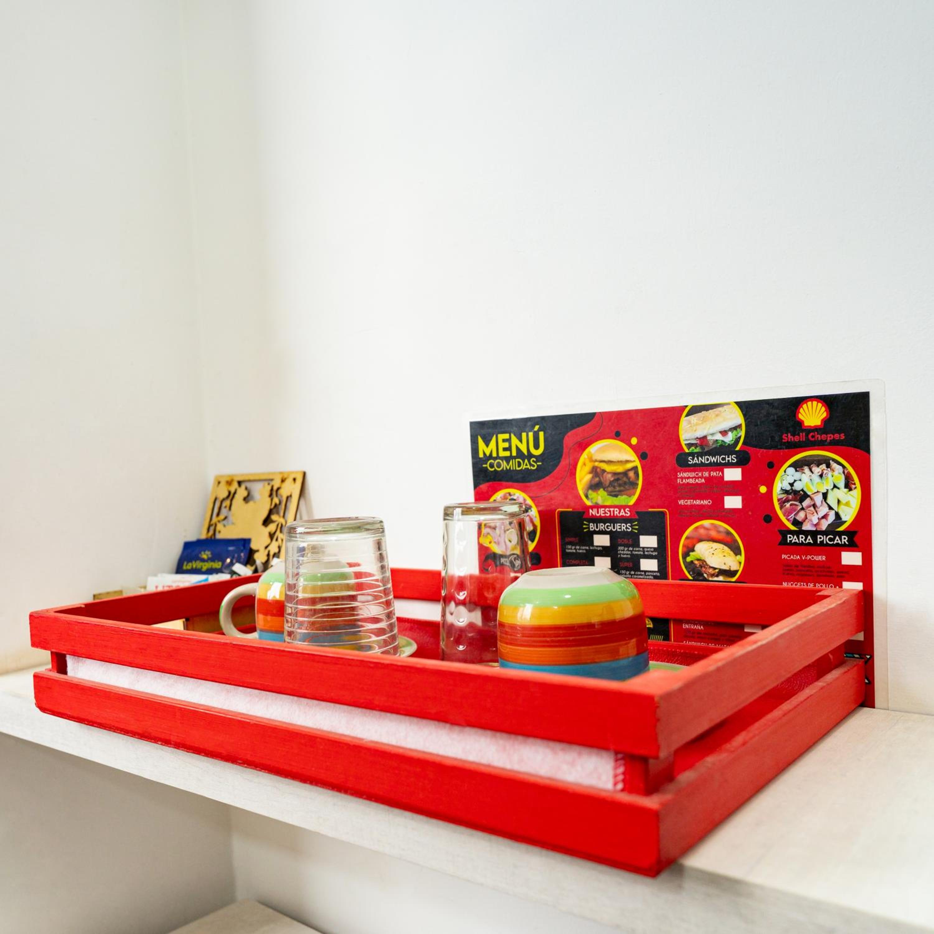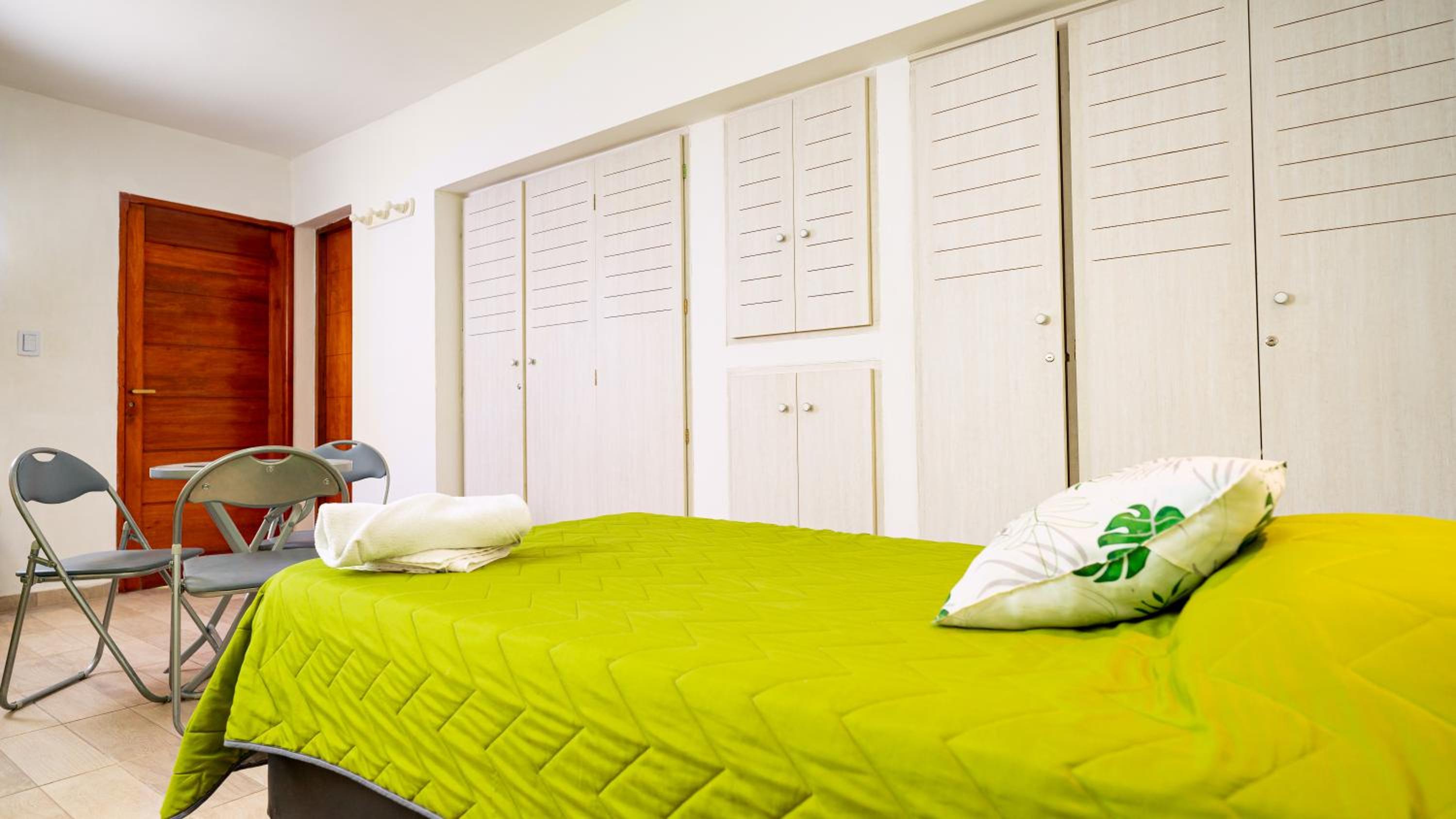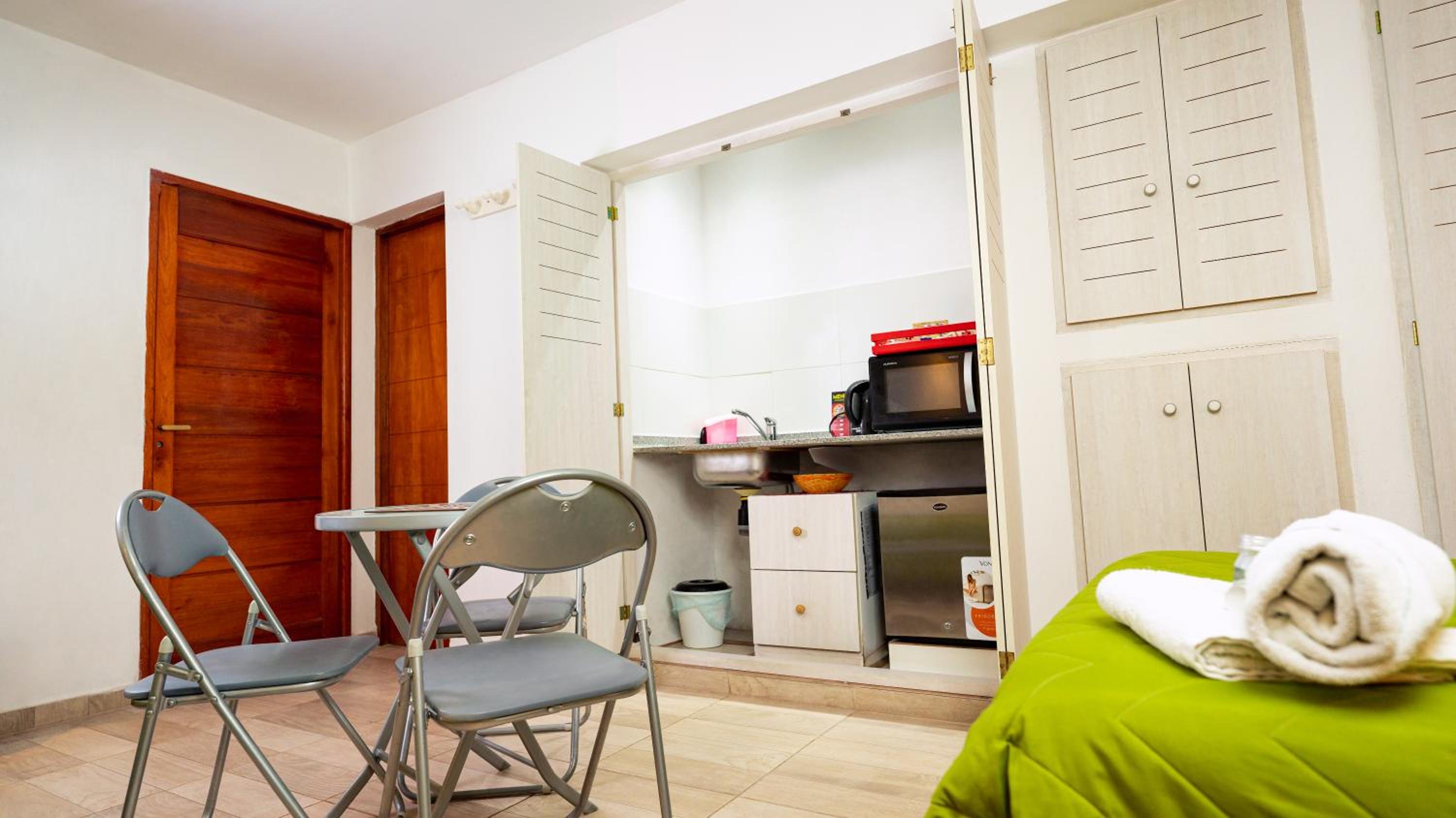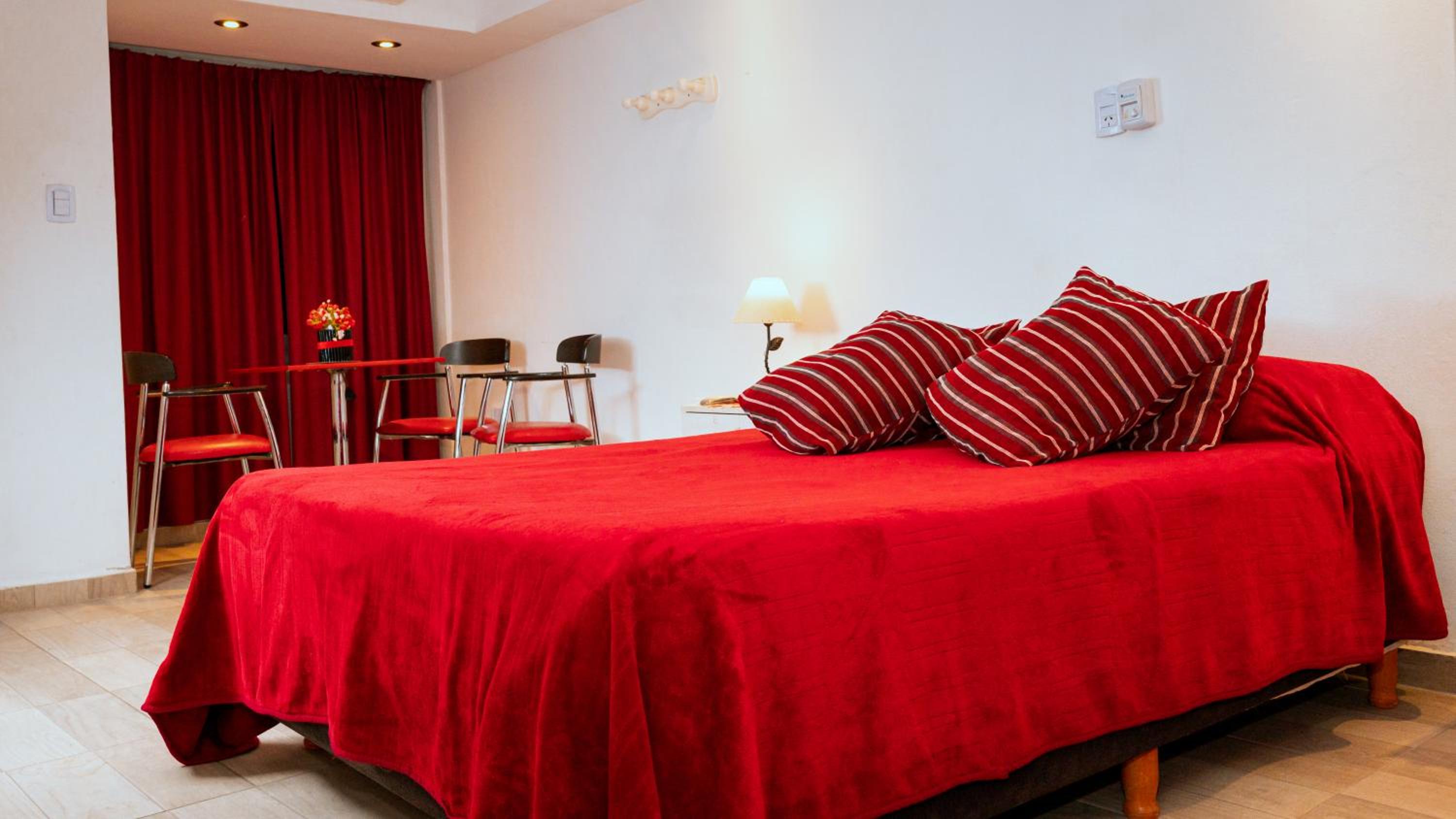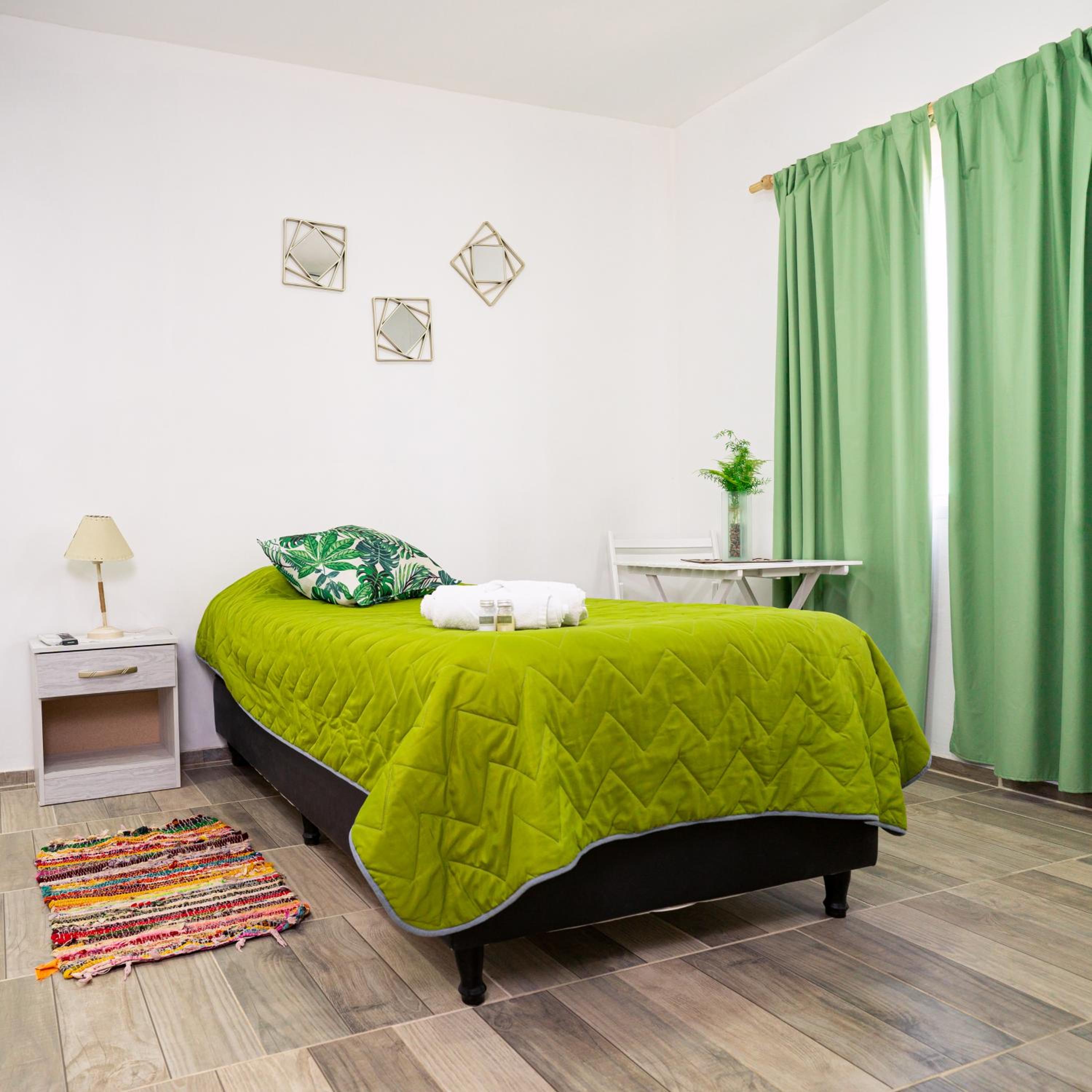 The lady at the reception was very nice! Location is excellent, you can walk everywhere. There is a cerveceria about 4 blocks away behind a gasstation, live music and great food. It totally gives you the small town vibe:-). The room is a good size, did not expect a red interior as all in blue and green on the outside. Colourful sheets, a corner with microwave, kettle and fridge.