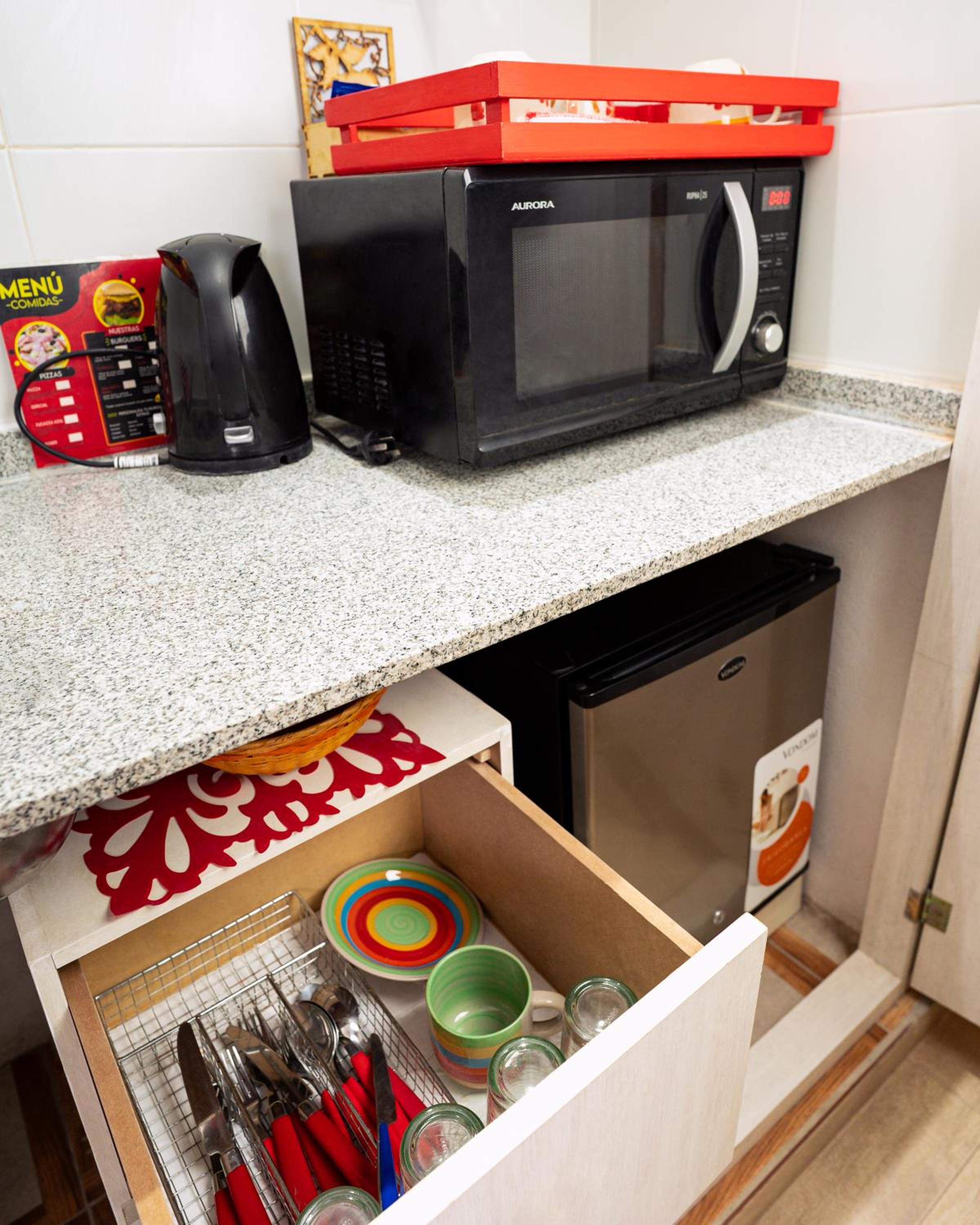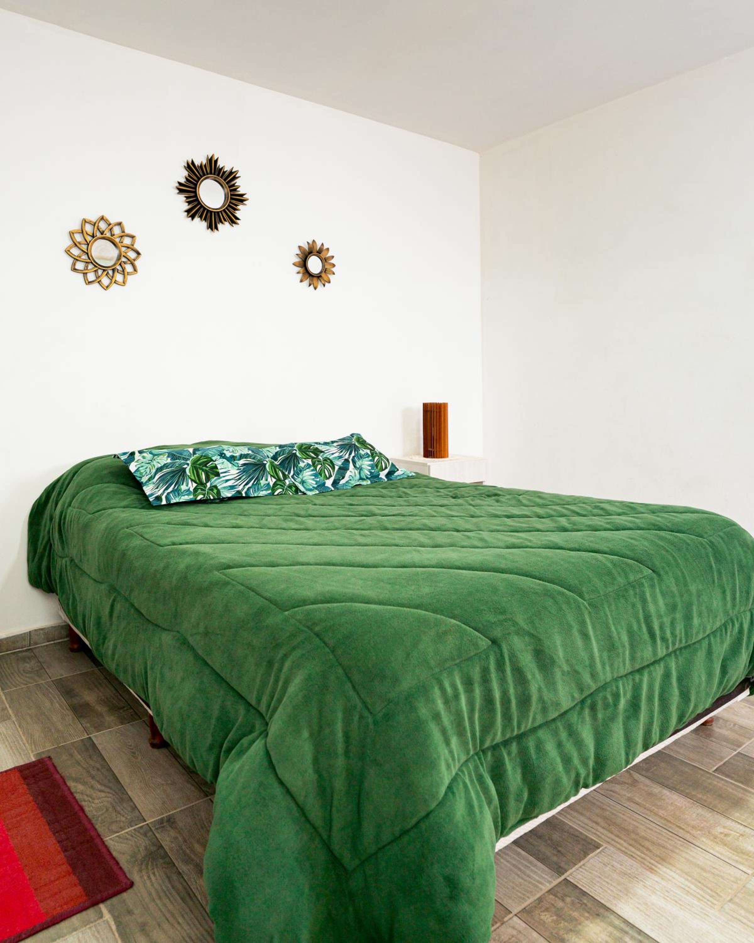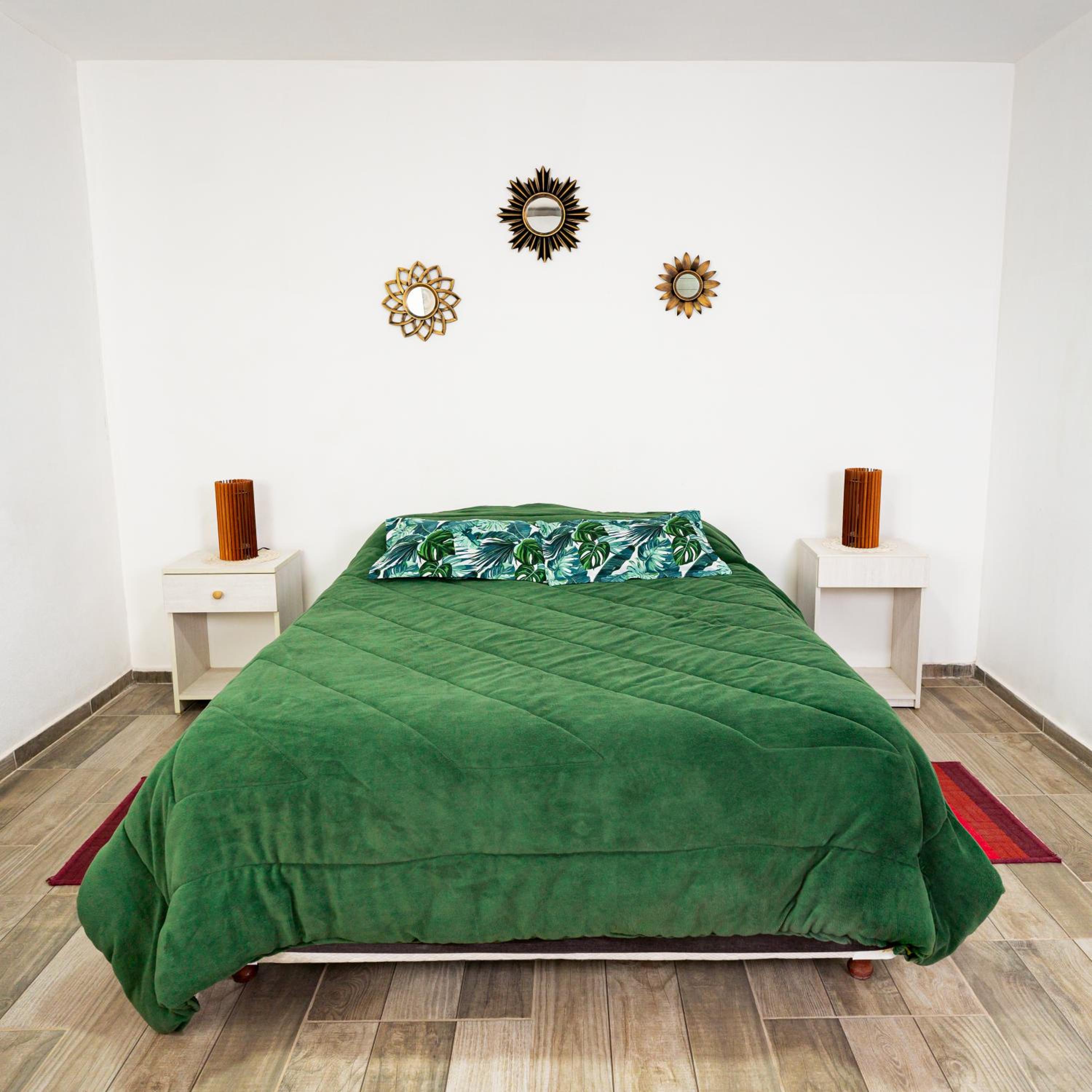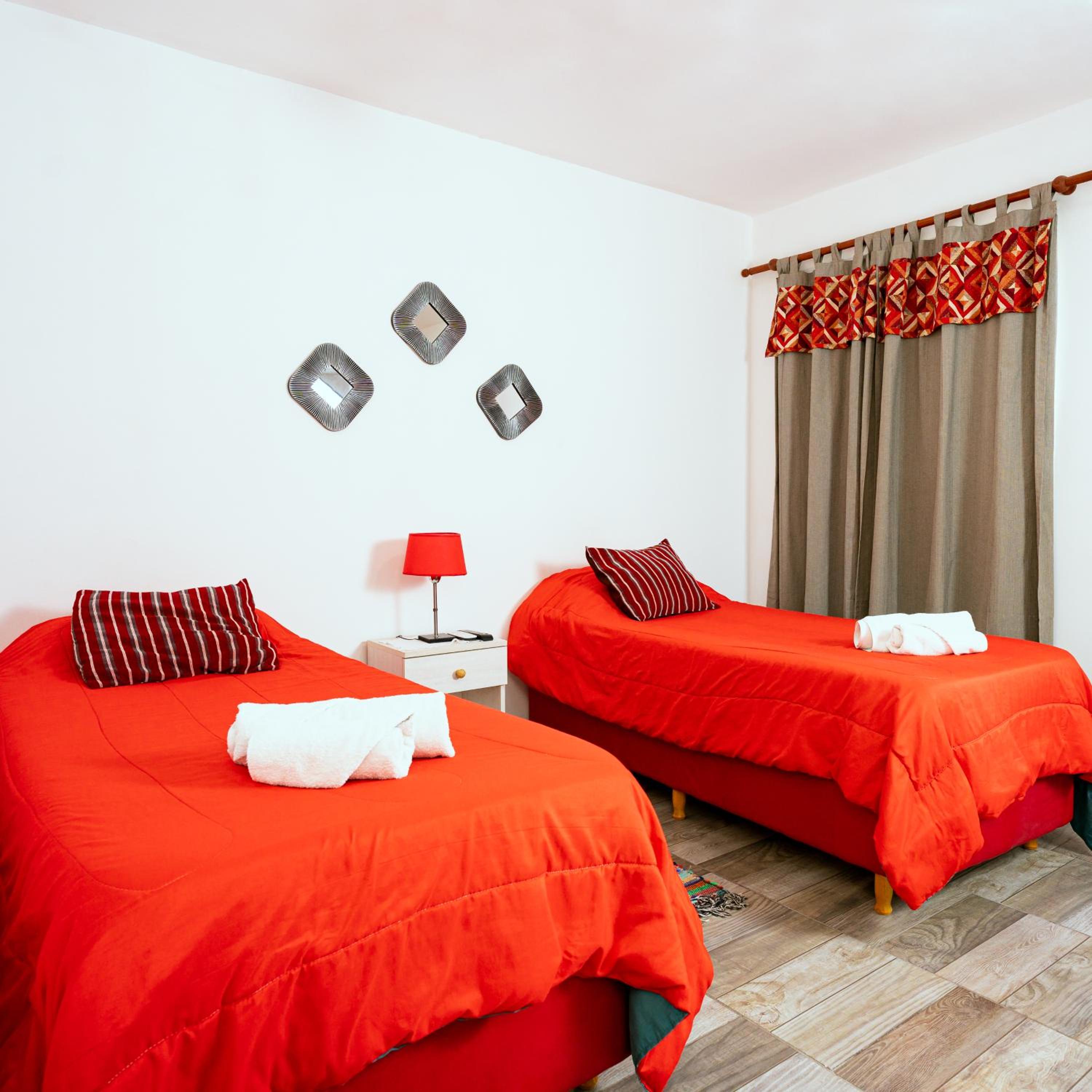 The lady at the reception was very nice! Location is excellent, you can walk everywhere. There is a cerveceria about 4 blocks away behind a gasstation, live music and great food. It totally gives you the small town vibe:-). The room is a good size, did not expect a red interior as all in blue and green on the outside. Colourful sheets, a corner with microwave, kettle and fridge.