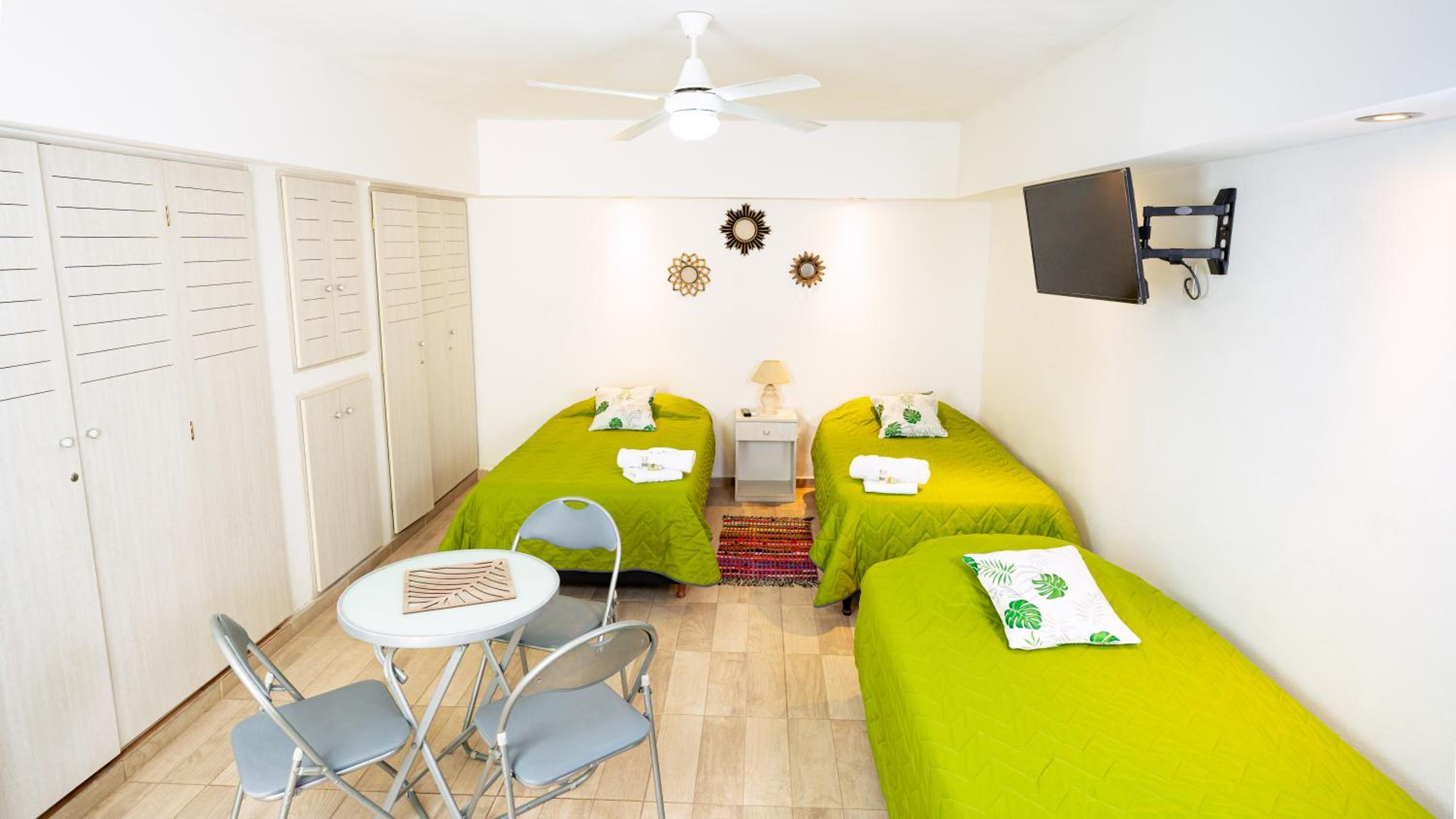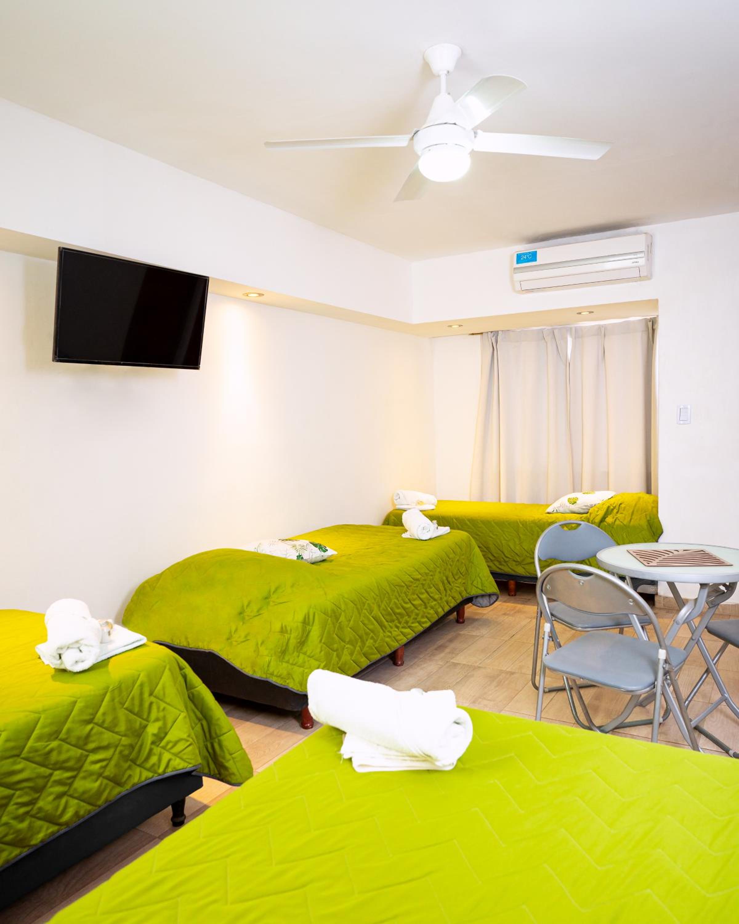 Experience comfort and convenience in our air-conditioned rooms with free WiFi, private bathrooms, flat-screen TVs, and more at Bambú Hotel.