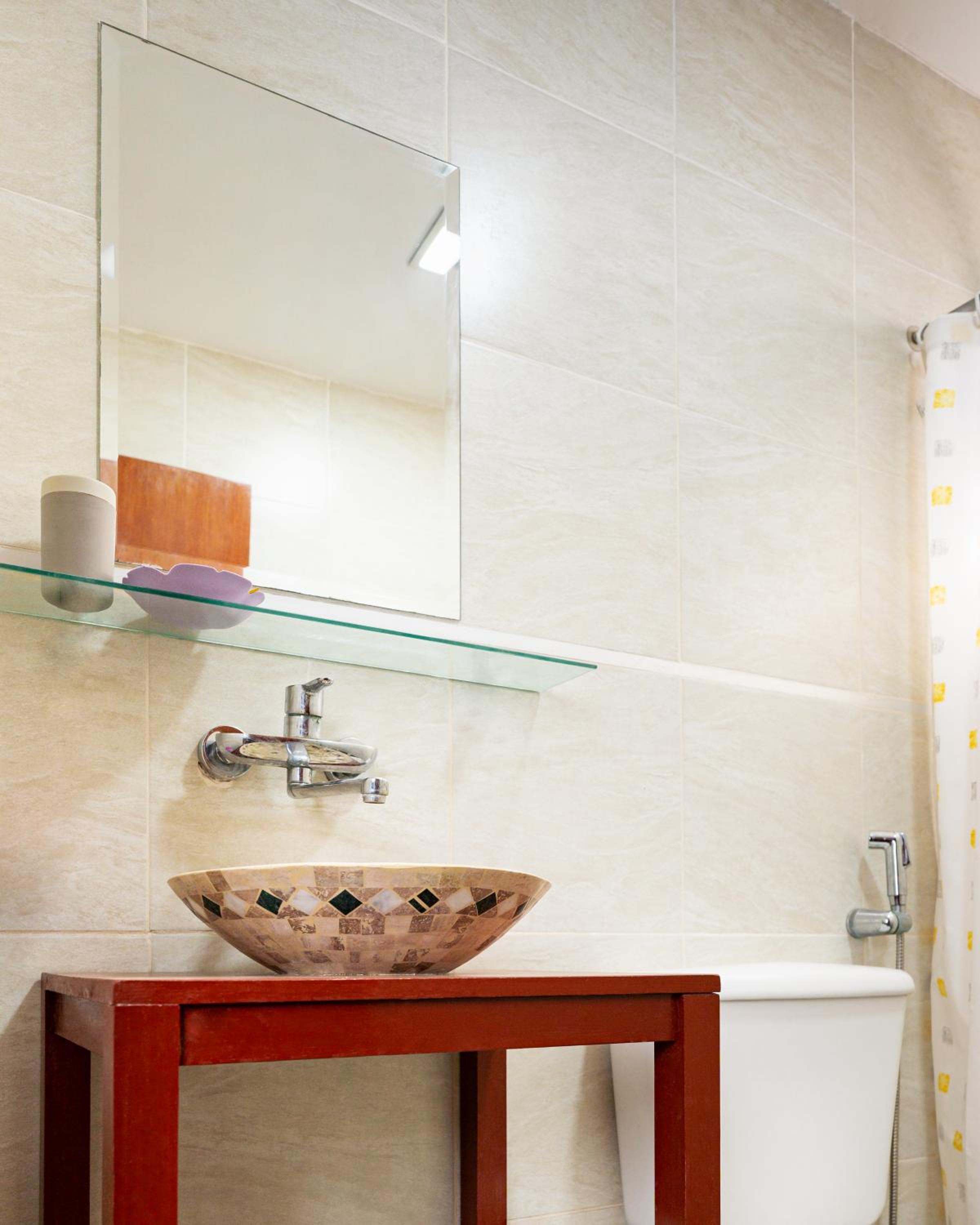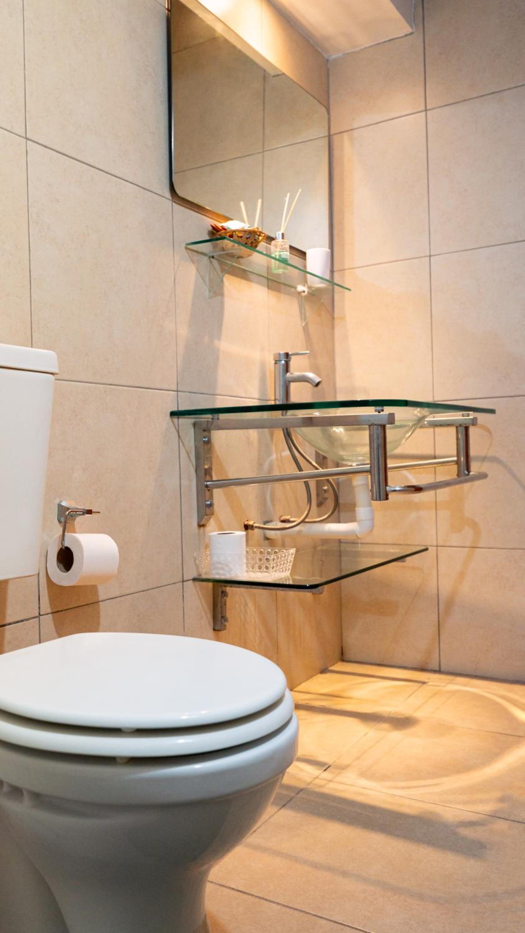 May have forgotten to clean our bathroom? - toilet bin had last occupants waste and basin not clean.