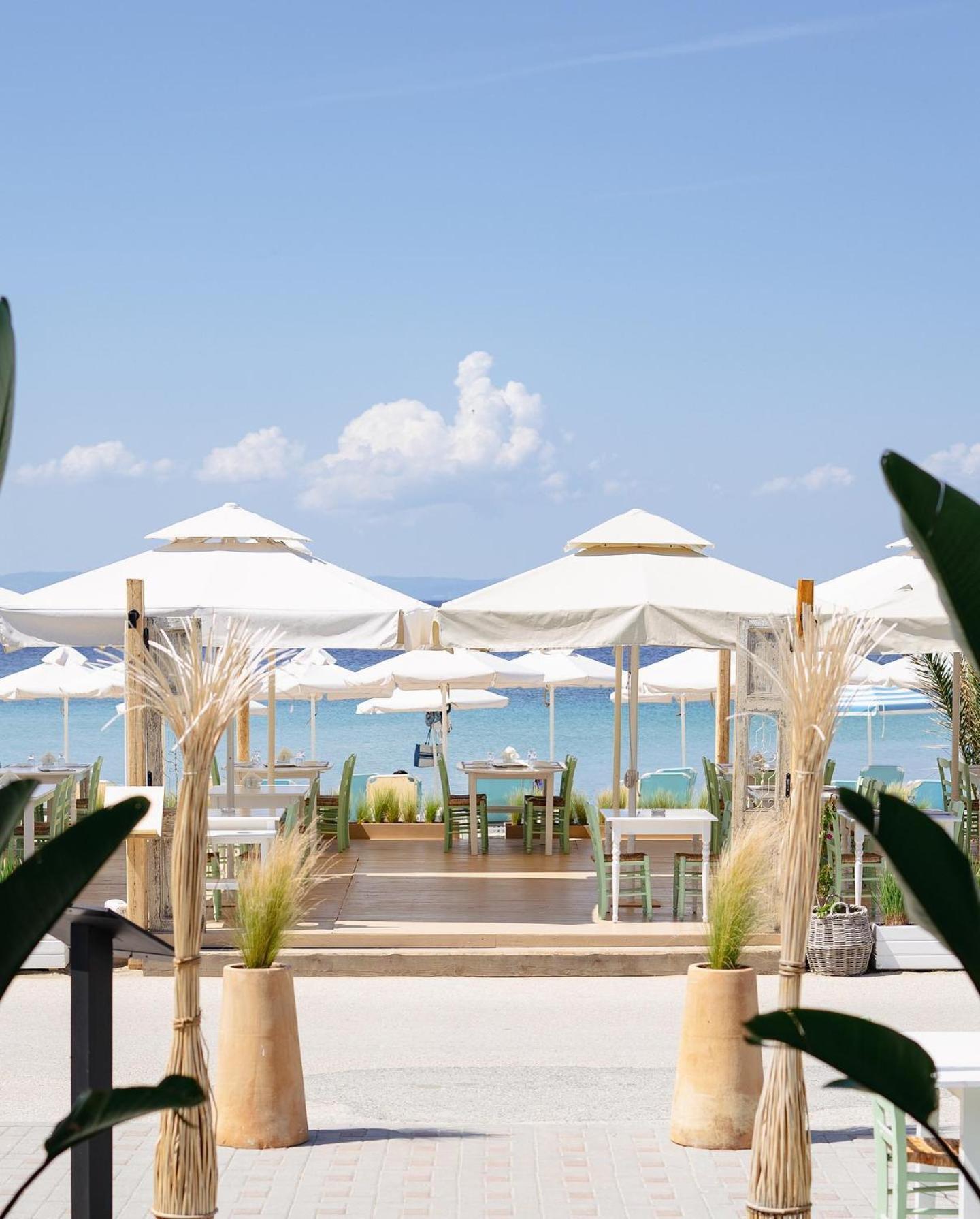 Chambre spacieuse et confortable, a la déco soignée juste sur le front de mer de Nikiti, super! Petit déjeuner buffet copieux et varié avec vue sur mer 🤩