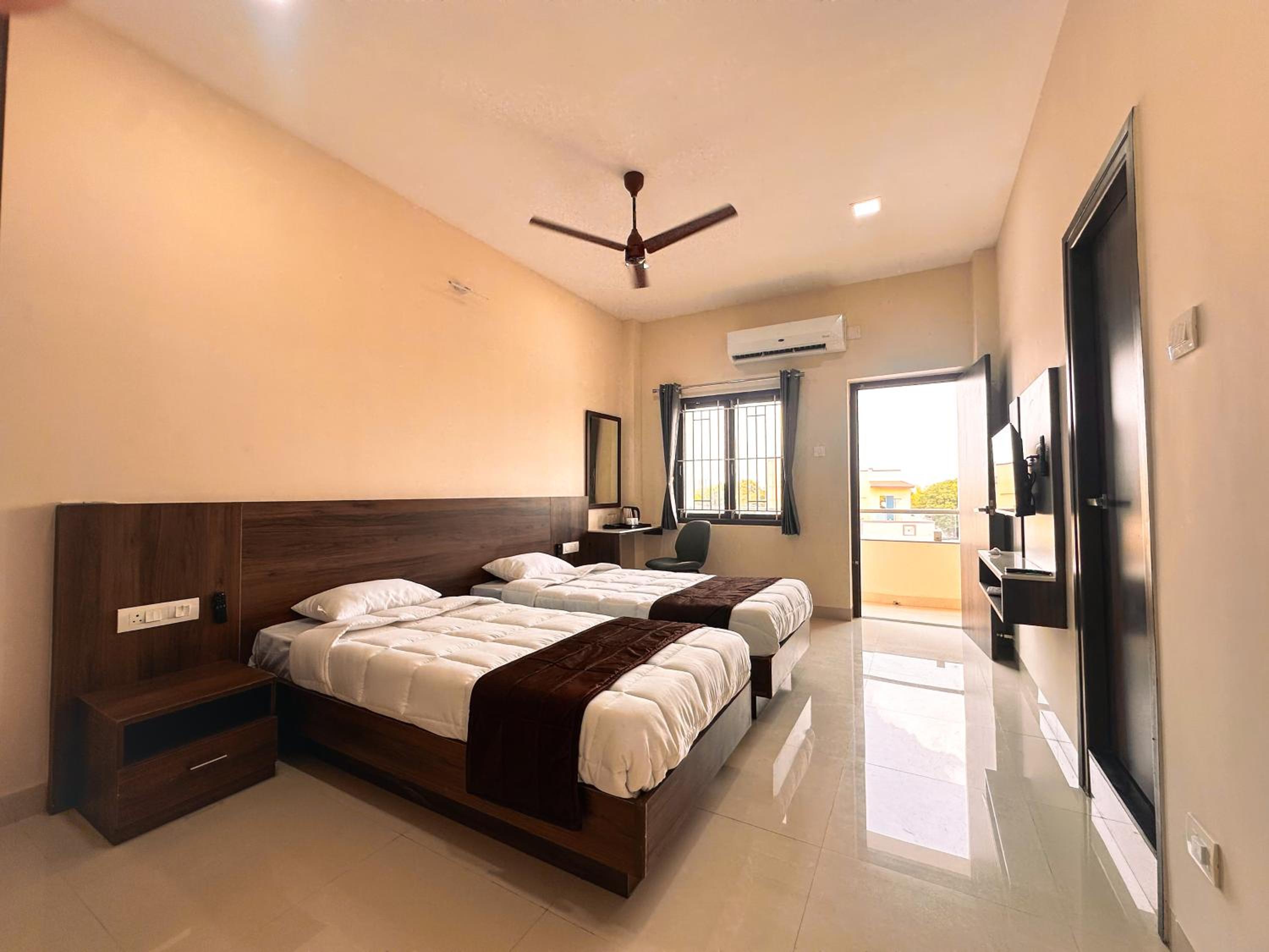 Enjoy a comfortable stay in our air-conditioned rooms equipped with modern amenities like a flat-screen TV, private bathroom, and a city-view balcony. Relax in style with our cozy bed linen and soft towels during your stay.