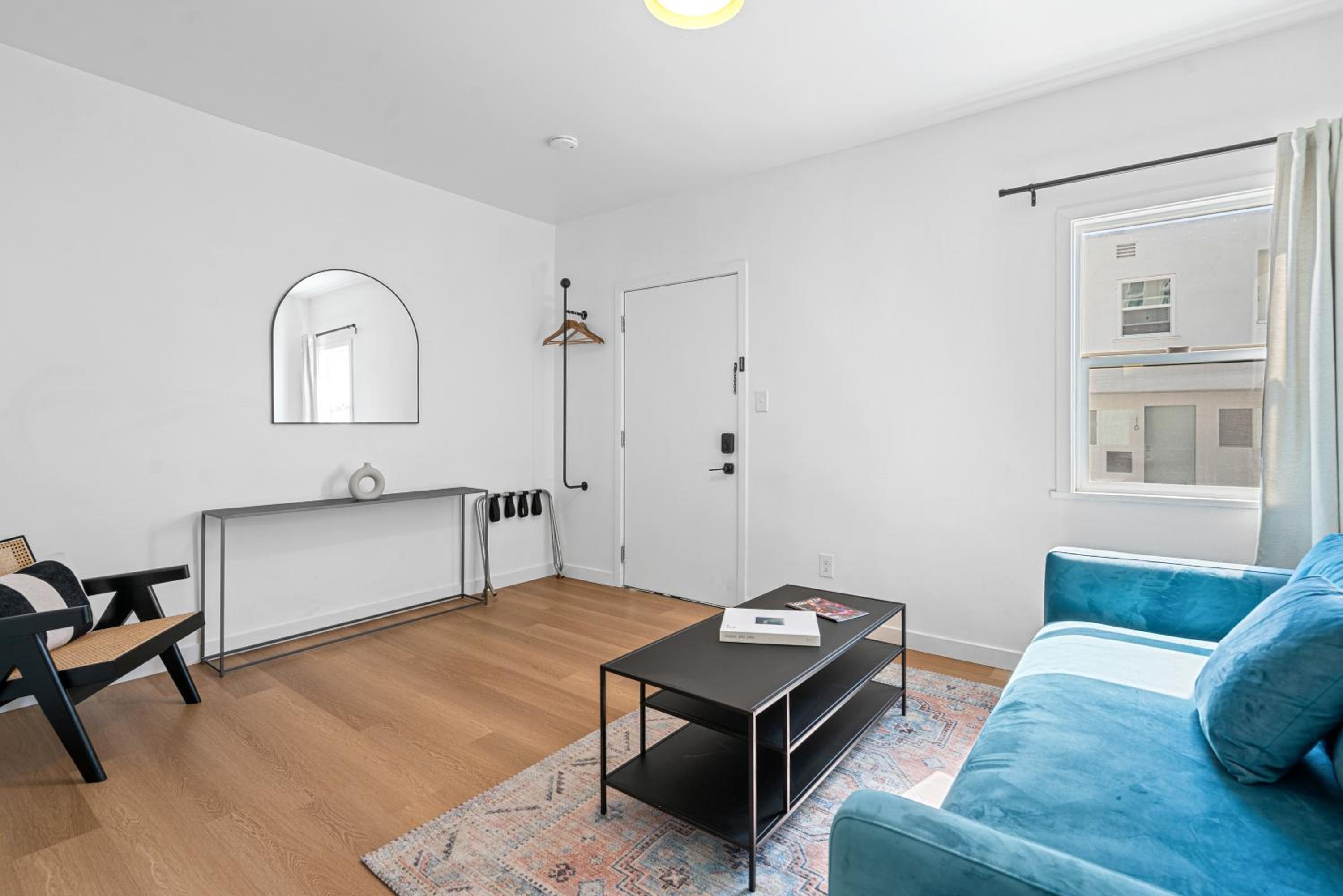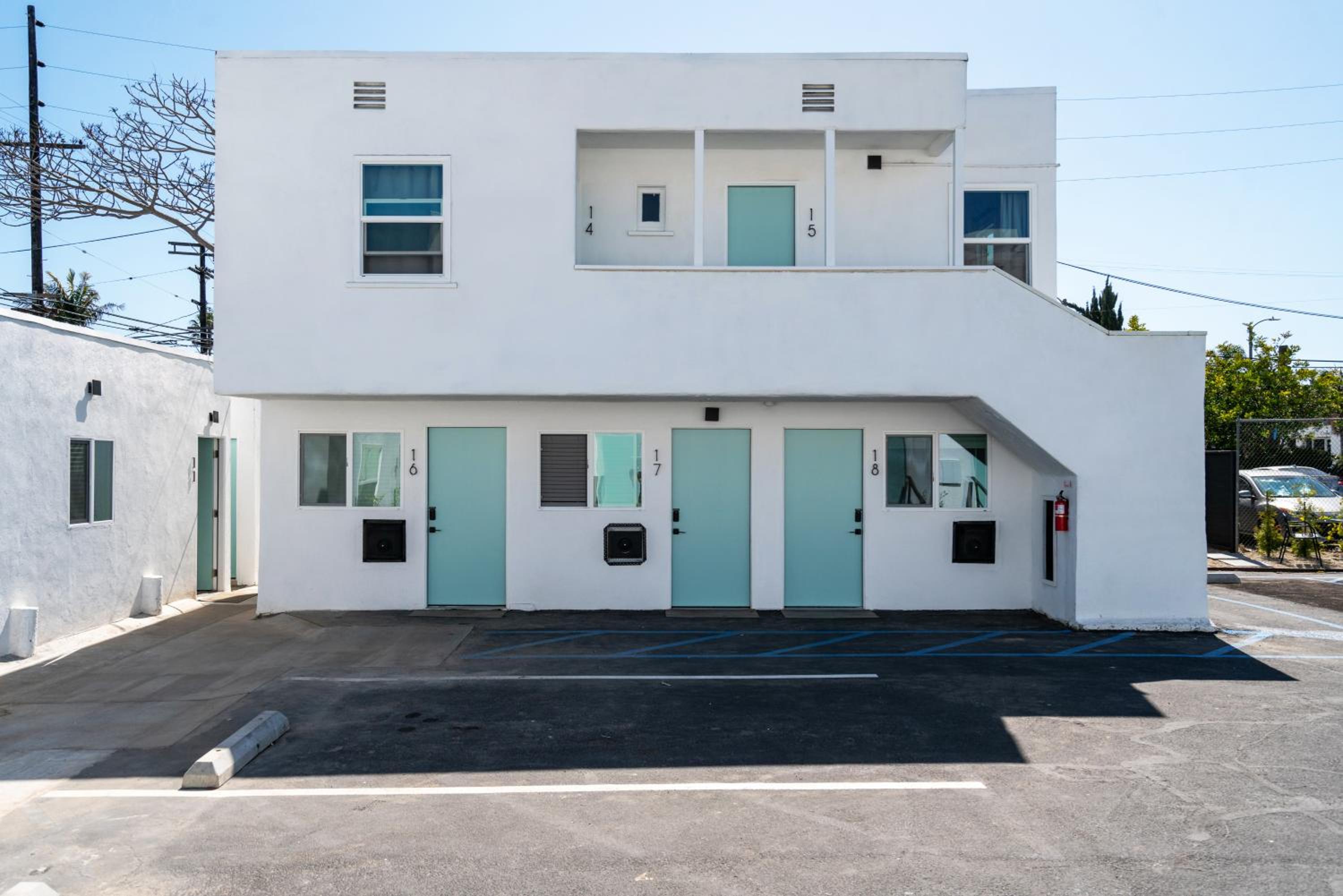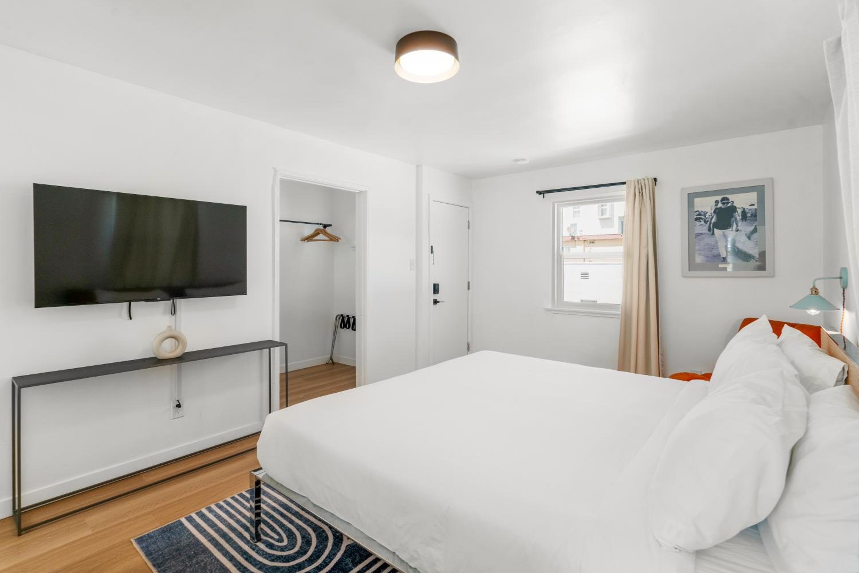 Если зарегистрироваться заранее за день до заселения присылают номер комнаты и код доступа, нет никакой коммуникации с персоналом, выселение такое же простое. Номер большой просторный, отличный душ, тоже просторный, большая кровать. Есть бесплатная парковка на территории. Есть персонал в отдельном здании, там же есть кофе, чай, вода, настольные игры и зона отдыха. До пляжа Санта Моника пешком 15 минут, через дорогу супермаркет с продуктами.