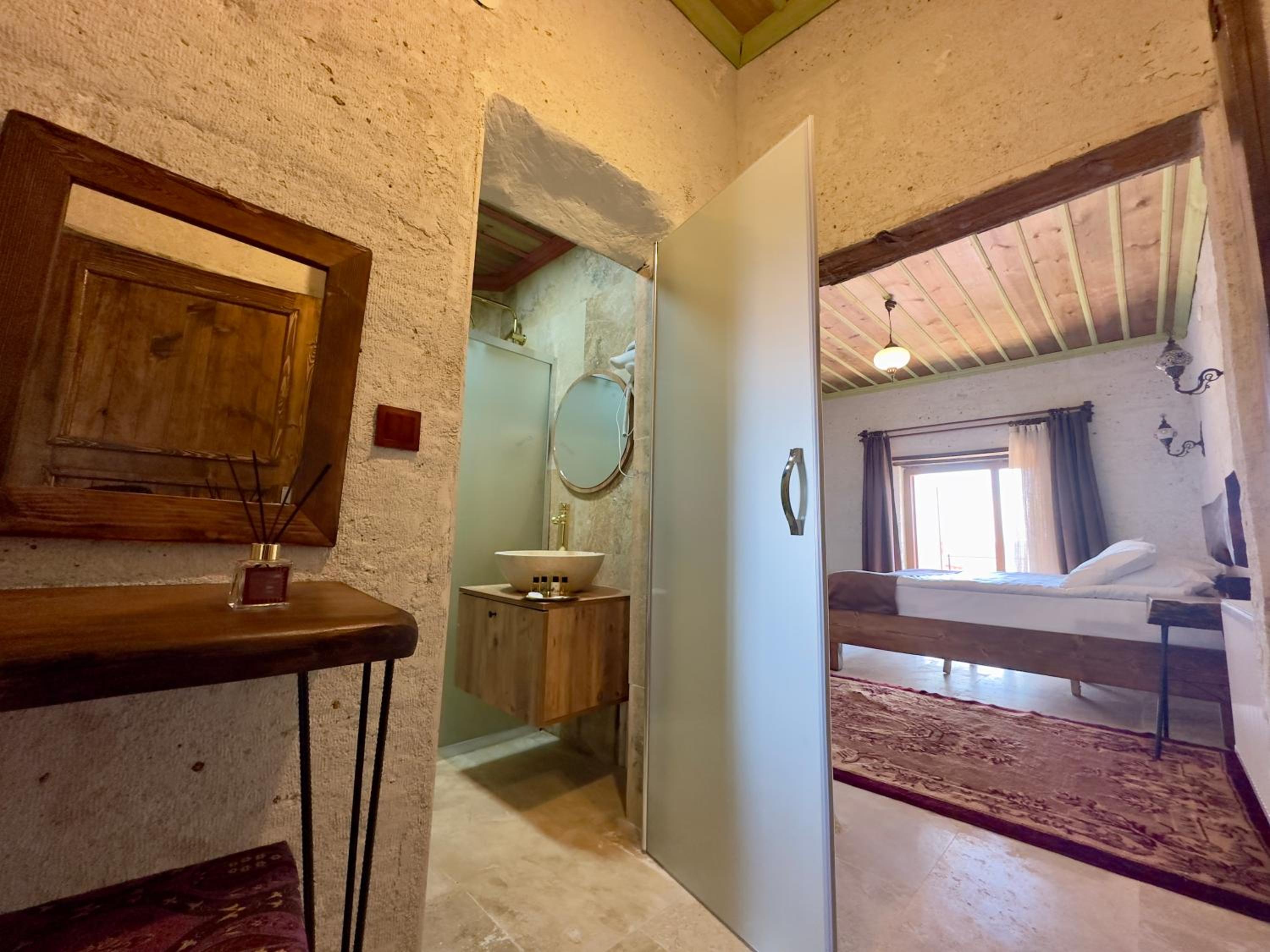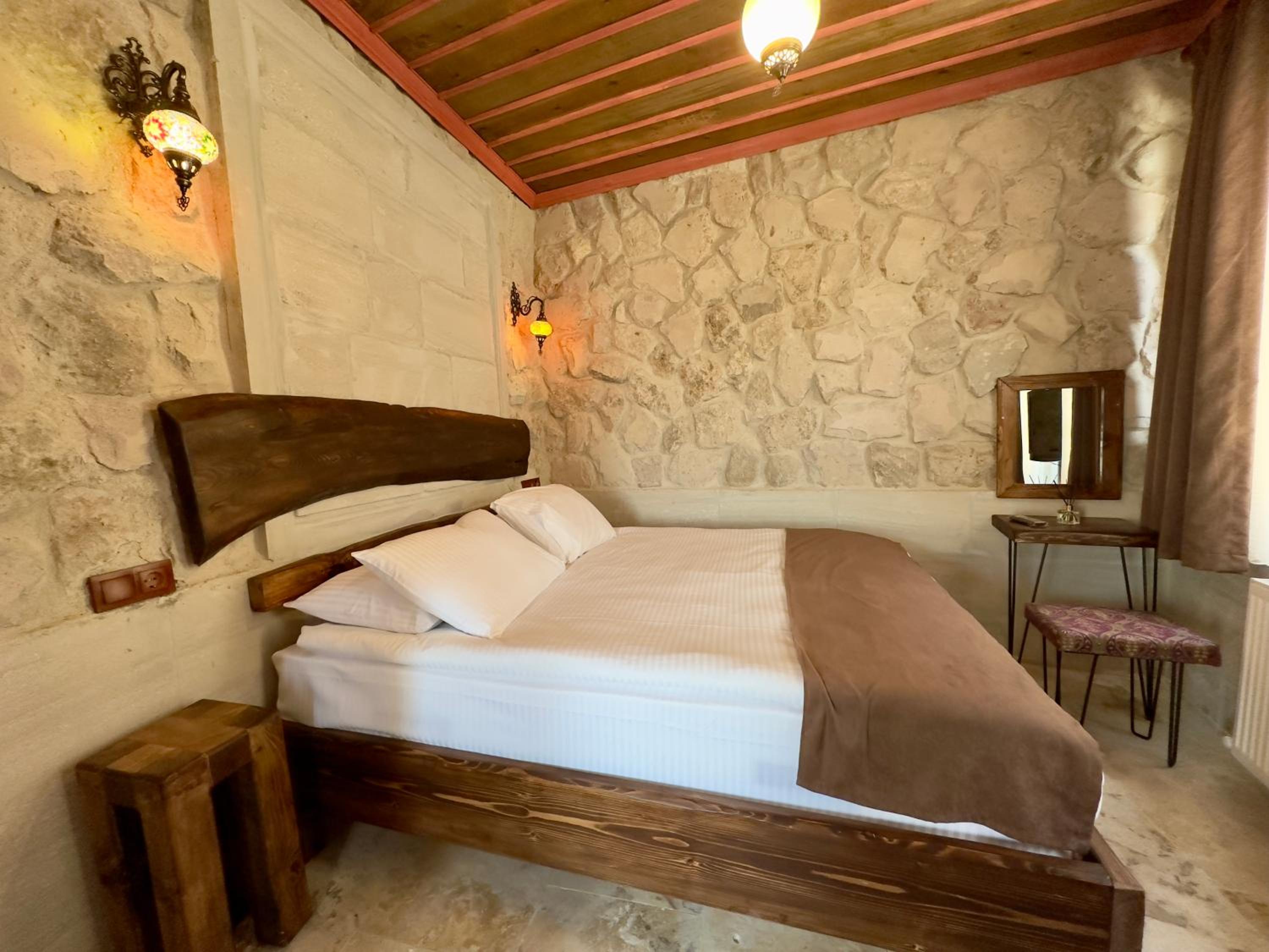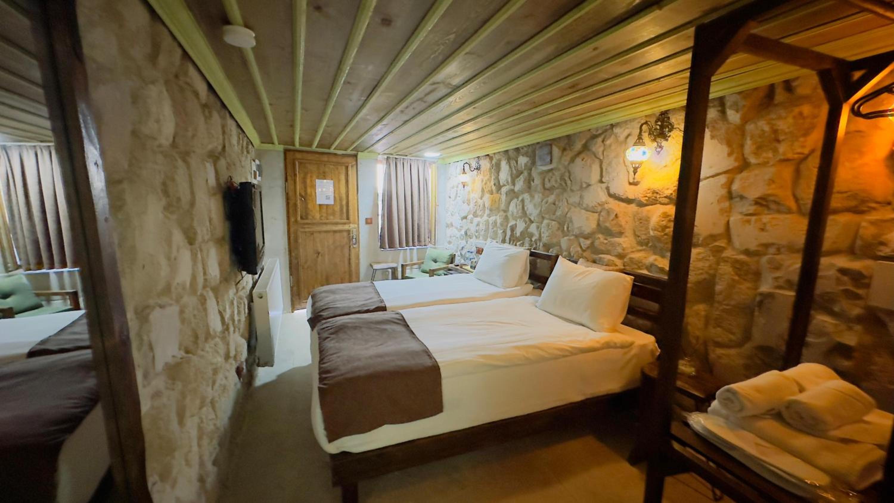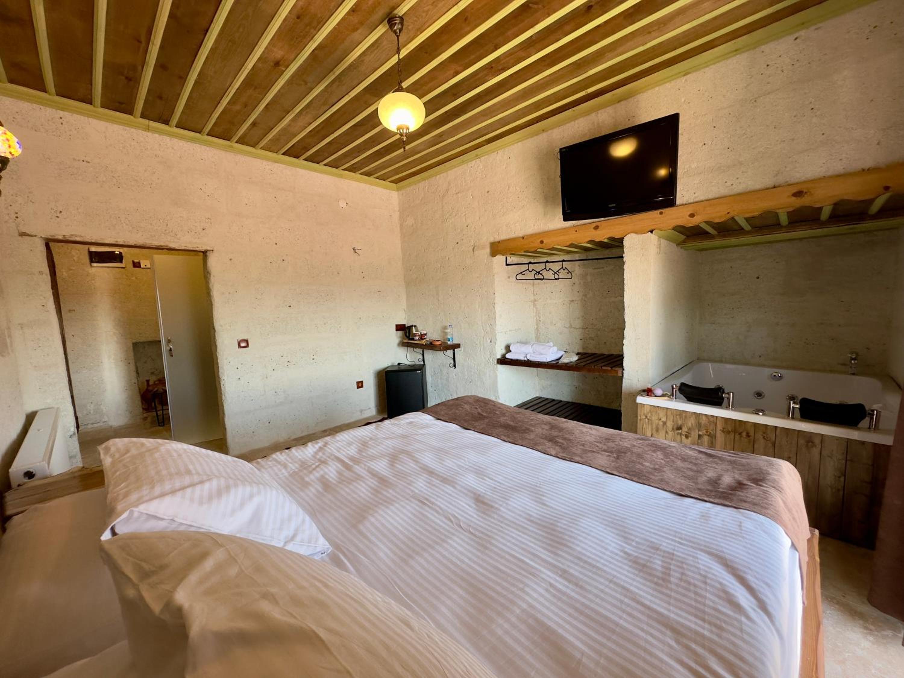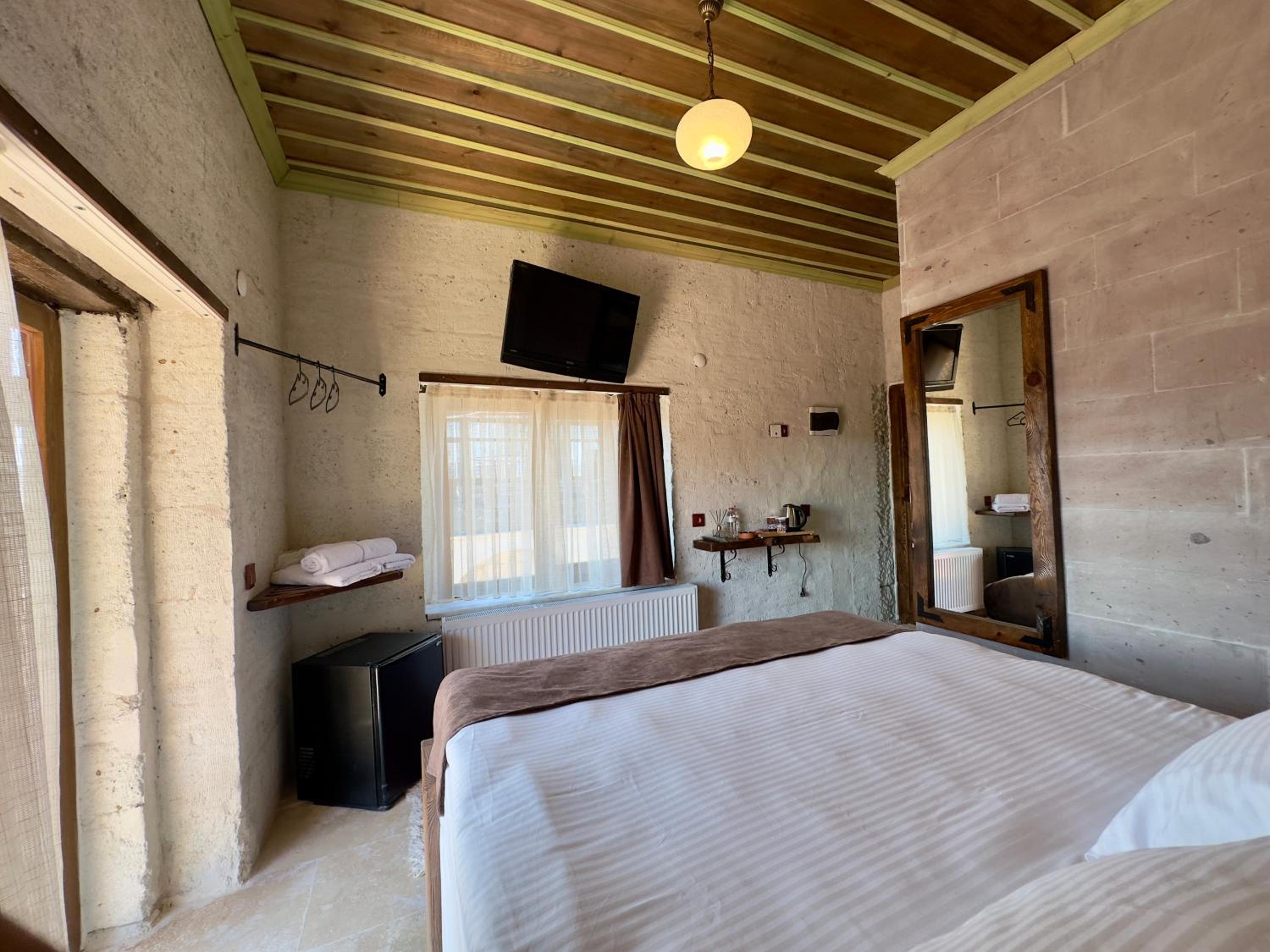 The hotel staff is extremely helpful and supportive, always with a big smile and welcoming attitude. They provide very good Turkish breakfast with a large variety of choices. The hotel and the room is exceptionally clean despite daily rains. Warm water and room heating is available round the clock. The main market is barely 5 minutes walk from the facility with several good places to enjoy different Turkish delicacies as well as to buy ceramic pottery and other souvenirs. The place is away from a main road so no traffic noise, very peaceful area. Attractions like pigeon valley, balloon valley and love valley are within 7-10 km from the hotel.