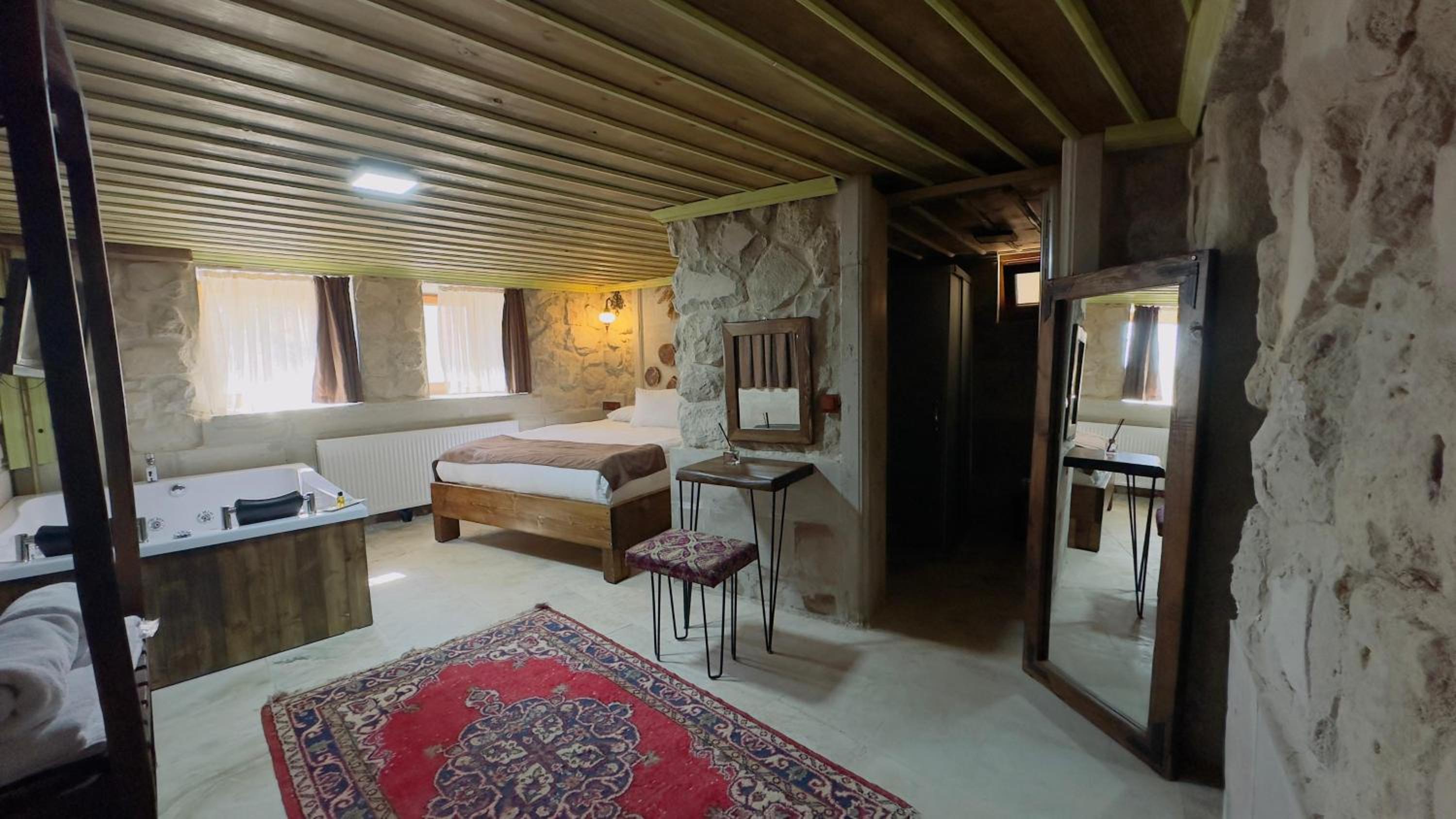 I went with my partner a couple days to Kapadokya and the hotel was amazing and perfect for what we needed, a great value for money, we got the room with the spa which was super nice to enjoy, turkish breakfast was very nice, and staff was super helpful with everything we needed, location was also very good and easy to move around walking by
