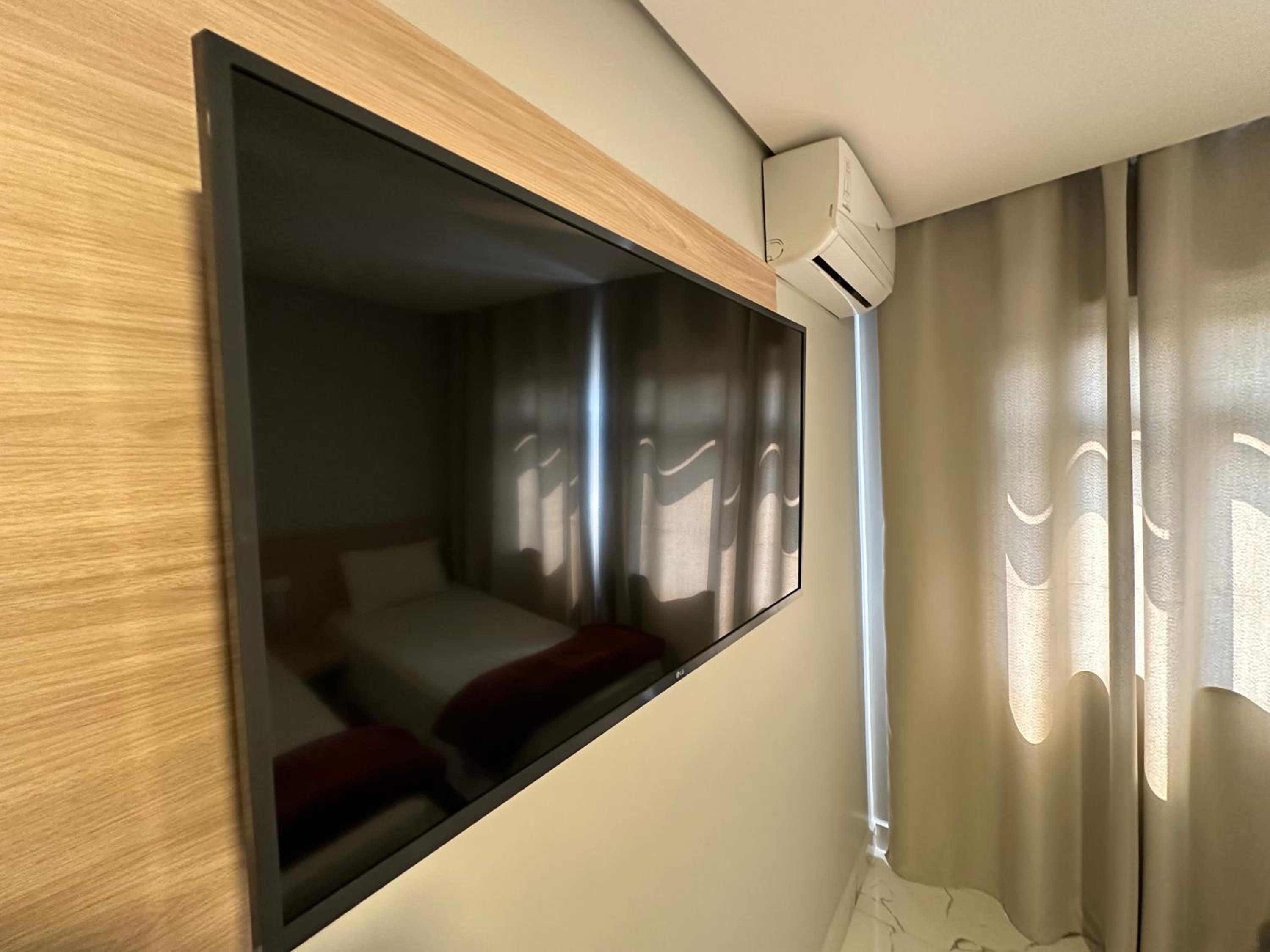 Um diferencial que a Tv é smart, o ar condicionado estava gelando super e a cama muito confortável.