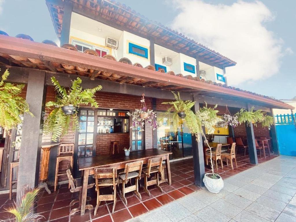 Pousada simples mas c um bom astral, música tocando, piscina limpa. Tem opção d petisco.
