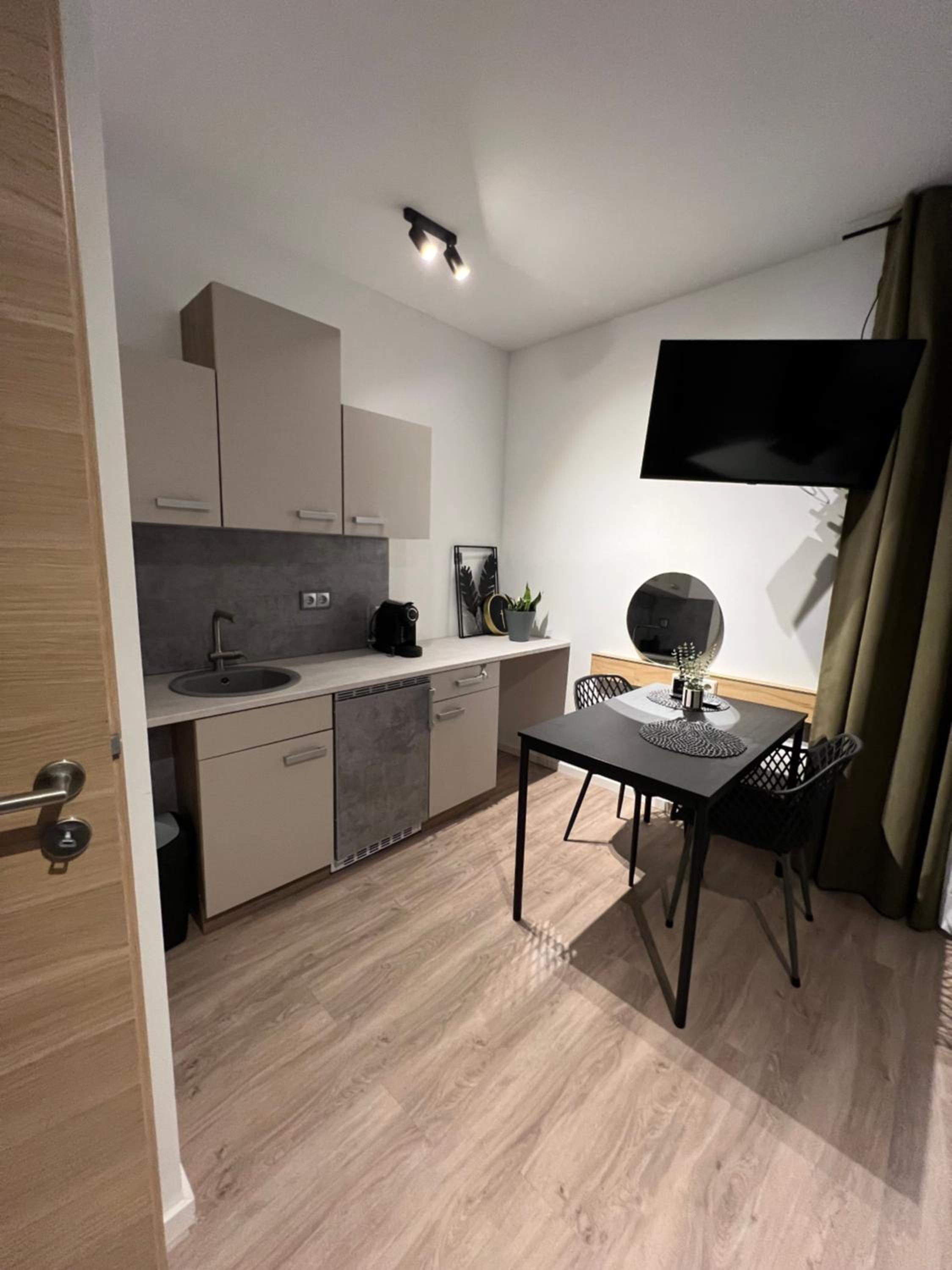 Herzlicher und freundlicher Empfang, küchenzeike im Zimmer mit Wasseroberfläche und Kaffee Pad Maschine. Alles neu renoviert.